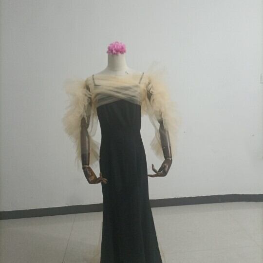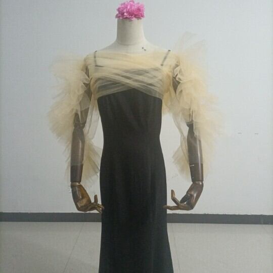 美品! ソフトチュール フェミニンなフレームレースの袖 オフショルダー トップス+黒 イタリアサテン キャミソール