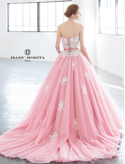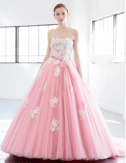 人気上昇!ピンクカラードレス ビスチェドレ プリンセスライン パーティドレス 結婚式/前撮り/二次会/ステージ/演奏ドレス