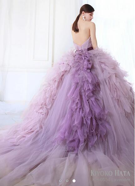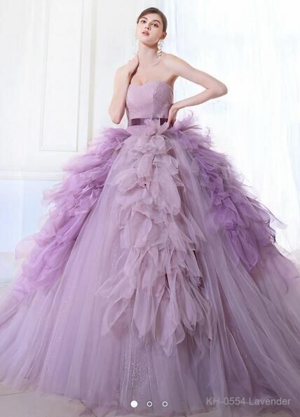 上品!パープルカラードレス ビスチェドレス ラベンダー色 もふもふドレス プリンセスライン パーティドレス 前撮り/二次会/演奏ドレス