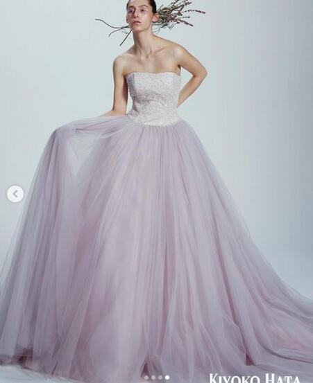 送料無料!カラードレス ラベンダー色 取り外し可能オフショルダー ビスチェドレス オシャレ パープル/紫 柔らかく重ねたチュール オーダードレス 結婚式/前撮り パーティドレス 披露宴/ステージ/演奏ドレス