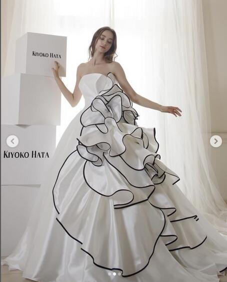 高品質!ウエディングドレス ビスチェドレス オシャレ オフホワイト オーダードレス 結婚式/前撮り パーティドレス 高級サテン 披露宴/ステージ/演奏ドレス | David1021k Dress(ダヴィドレス)