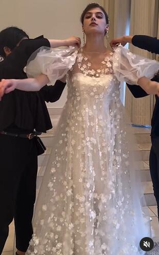 高品質!ウエディングドレス オーバードレス オシャレ 立体的な花レース オーダードレス パフスリーブ 結婚式/前撮り 披露宴/ステージ/演奏ドレス ソフトチュール | David1021k Dress(ダヴィドレス)