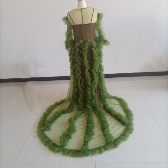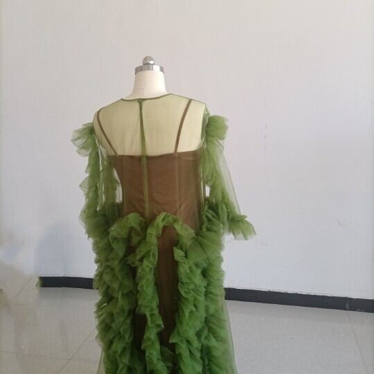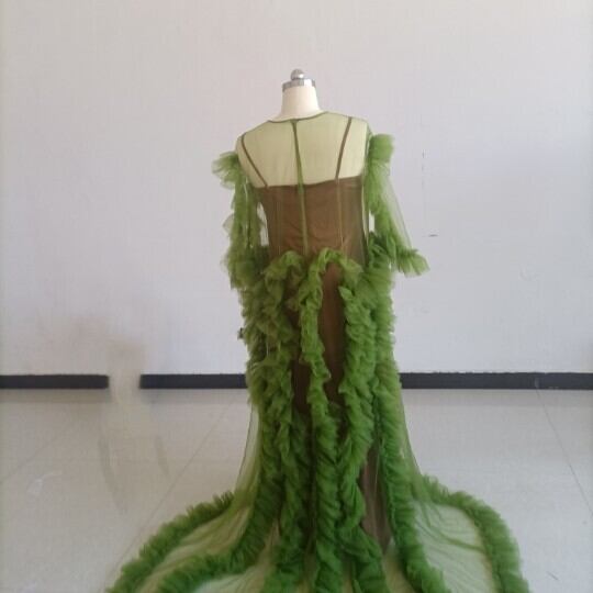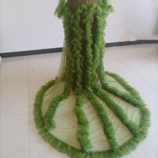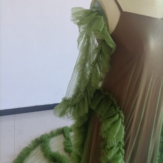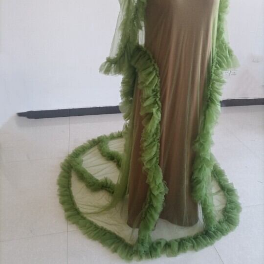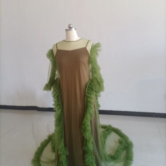 送料無料!グリーン オンショルダードレス+ ケープ風もこもこドレス 抜群のおしゃれ見え 前撮り結婚式