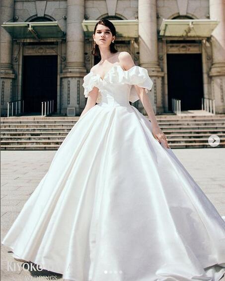 高品質!ウエディングドレス 取り外しオフショルダー オシャレ ハートカット ビスチェドレス オーダードレス プリンセスライン 結婚式/前撮り 披露宴 | David1021k Dress(ダヴィドレス)