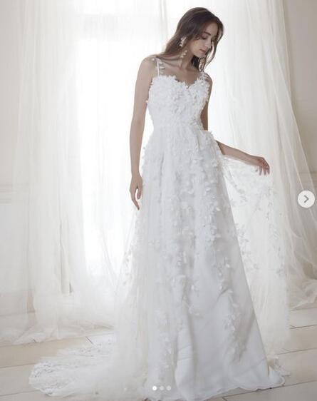 送料無料!ウエディングドレス キャミソール オシャレ ソフトハートカット ハンドメイド オーダードレス 結婚式/前撮り/二次会/2次会/披露宴/演奏会/音楽会 トレーン 上品花レース ガーデンウェディング | David1021k Dress(ダヴィドレス)