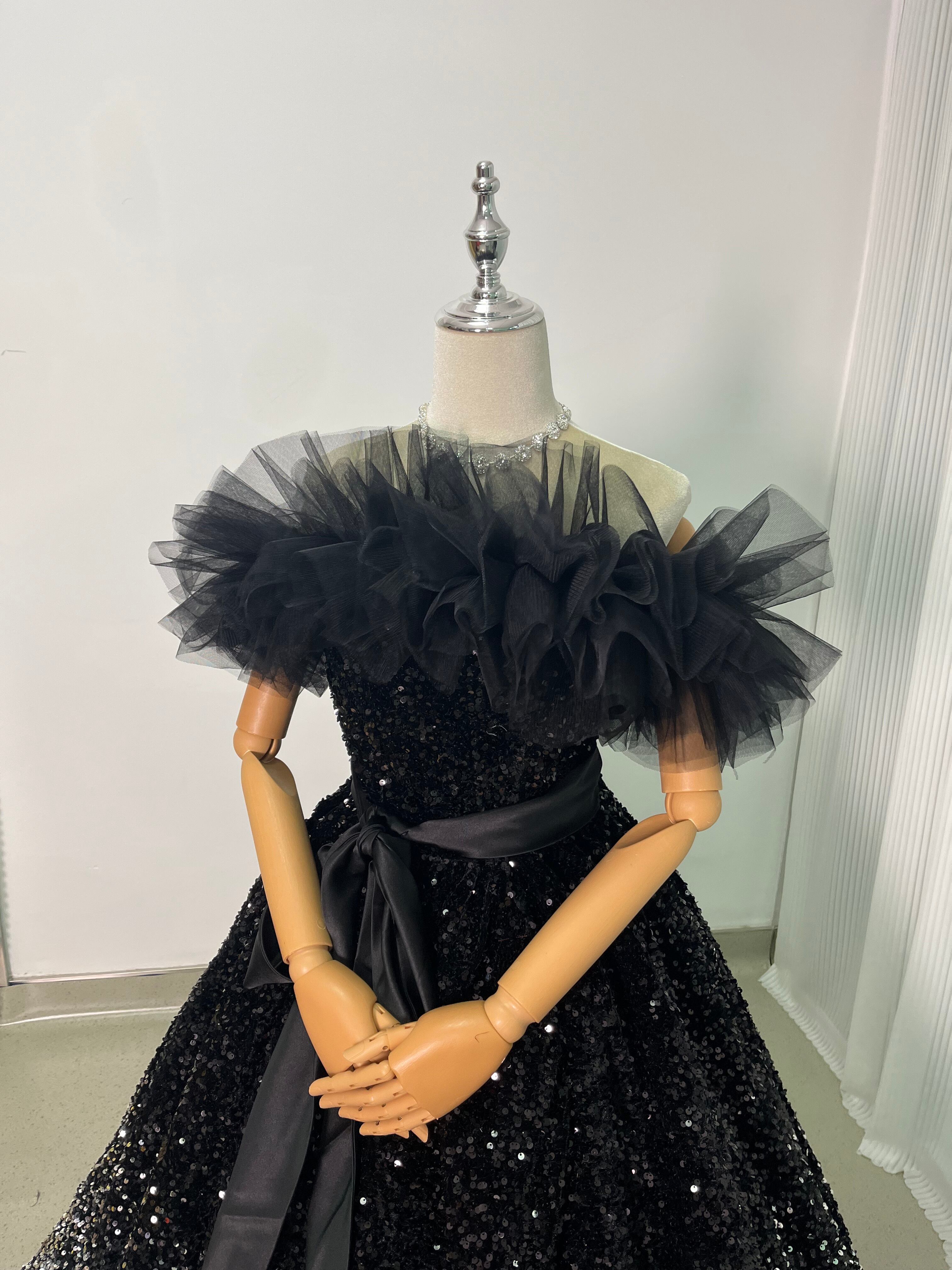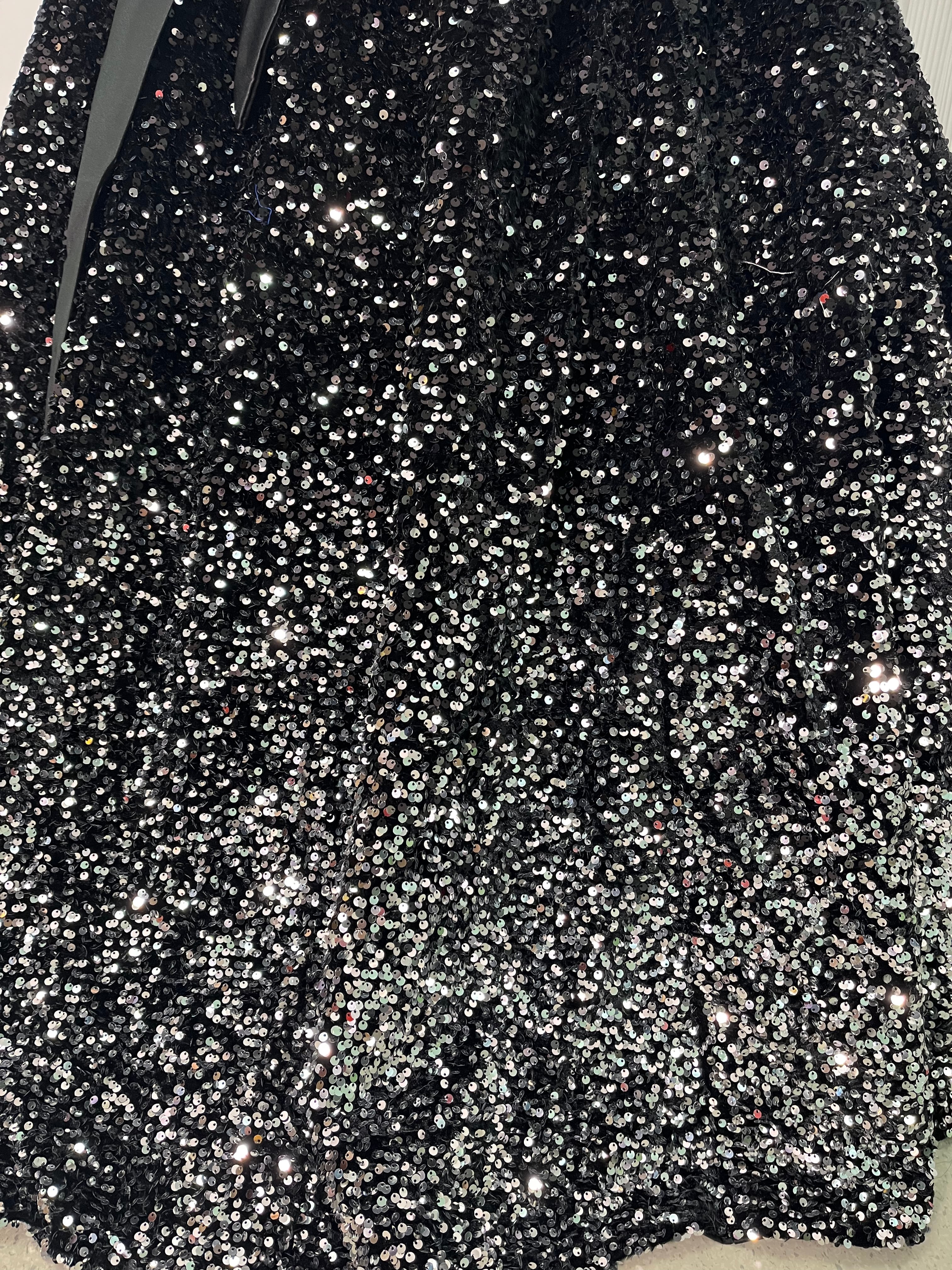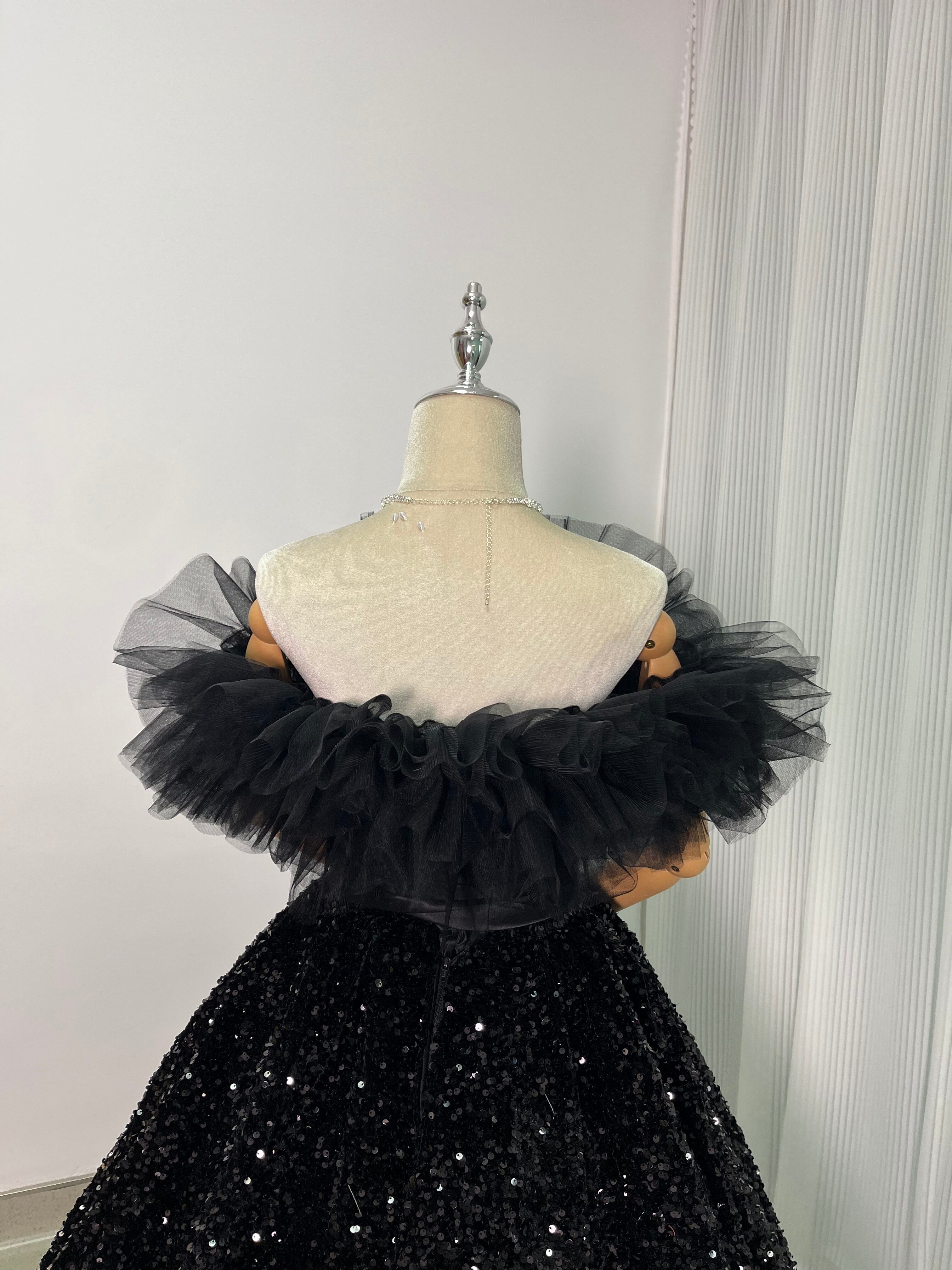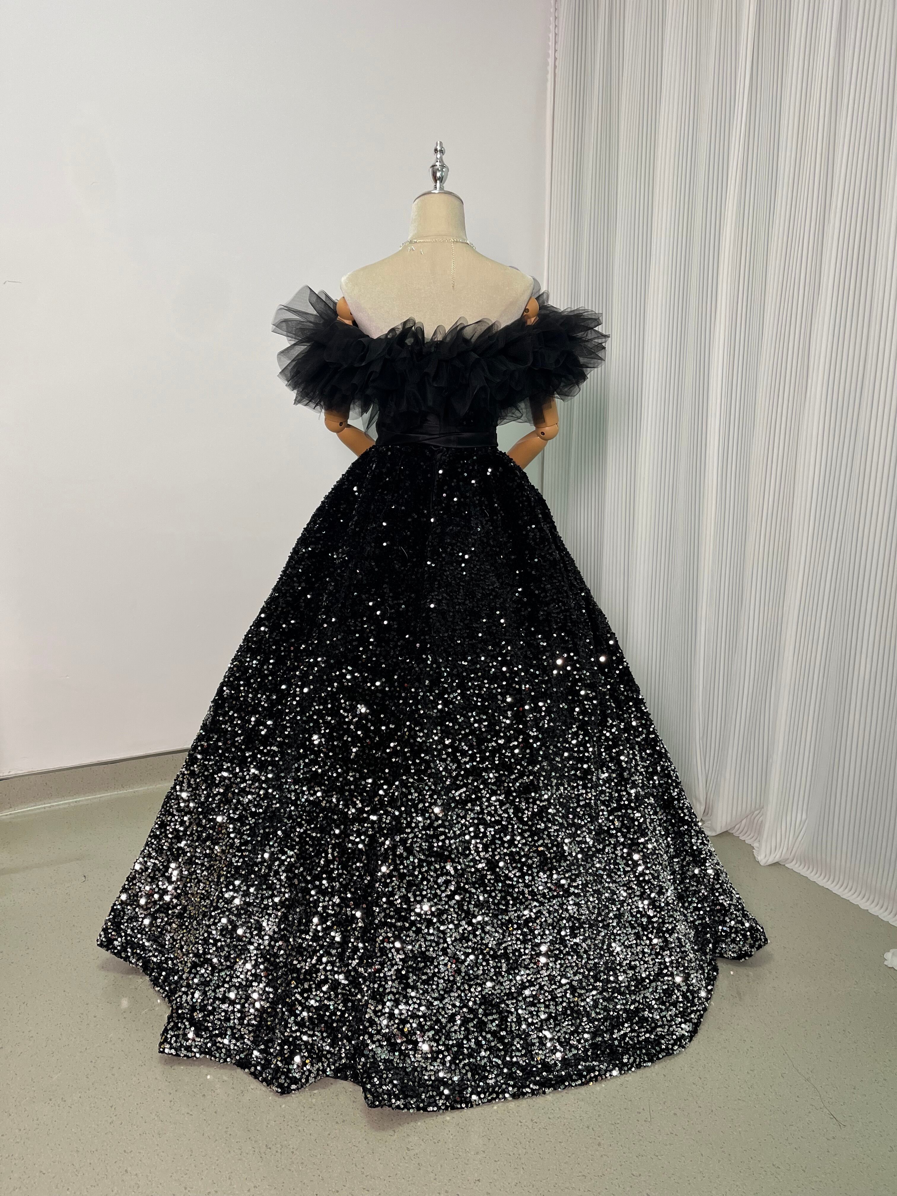 輝きな光彩を放つ 取り外しオフショルダー 黒 のグラデーション ベアトップ キラキラグリッターチュール カラードレス /花嫁