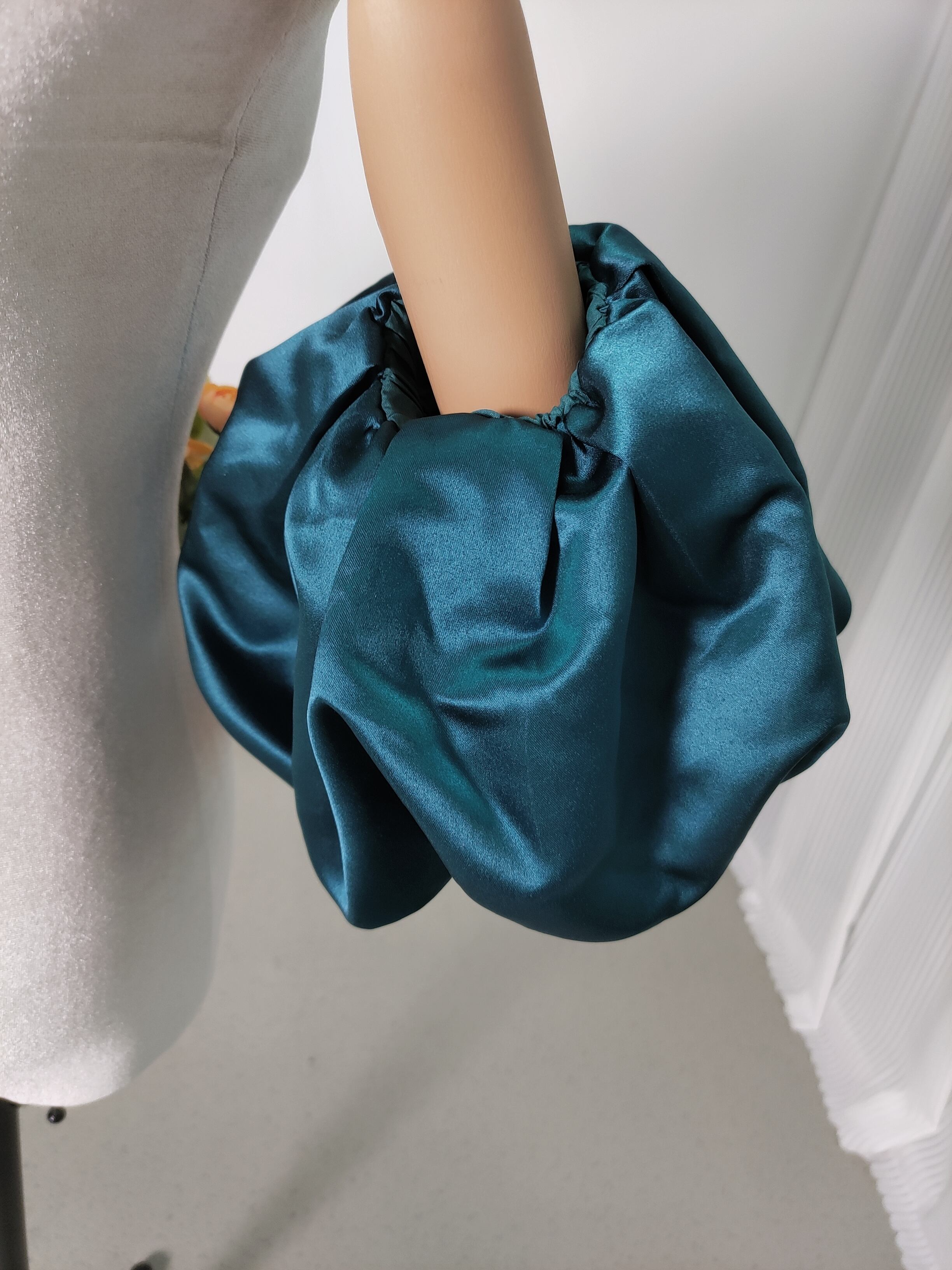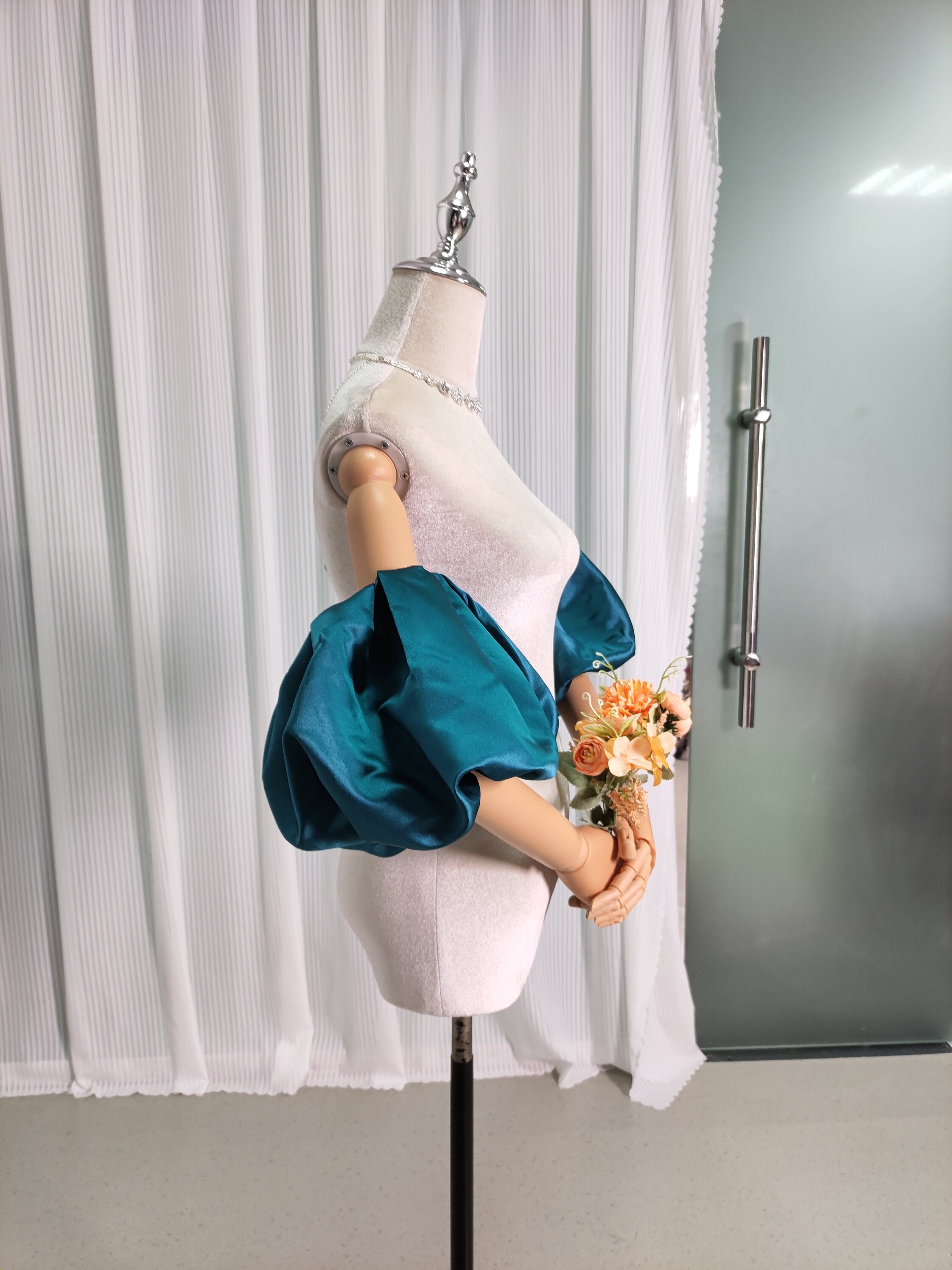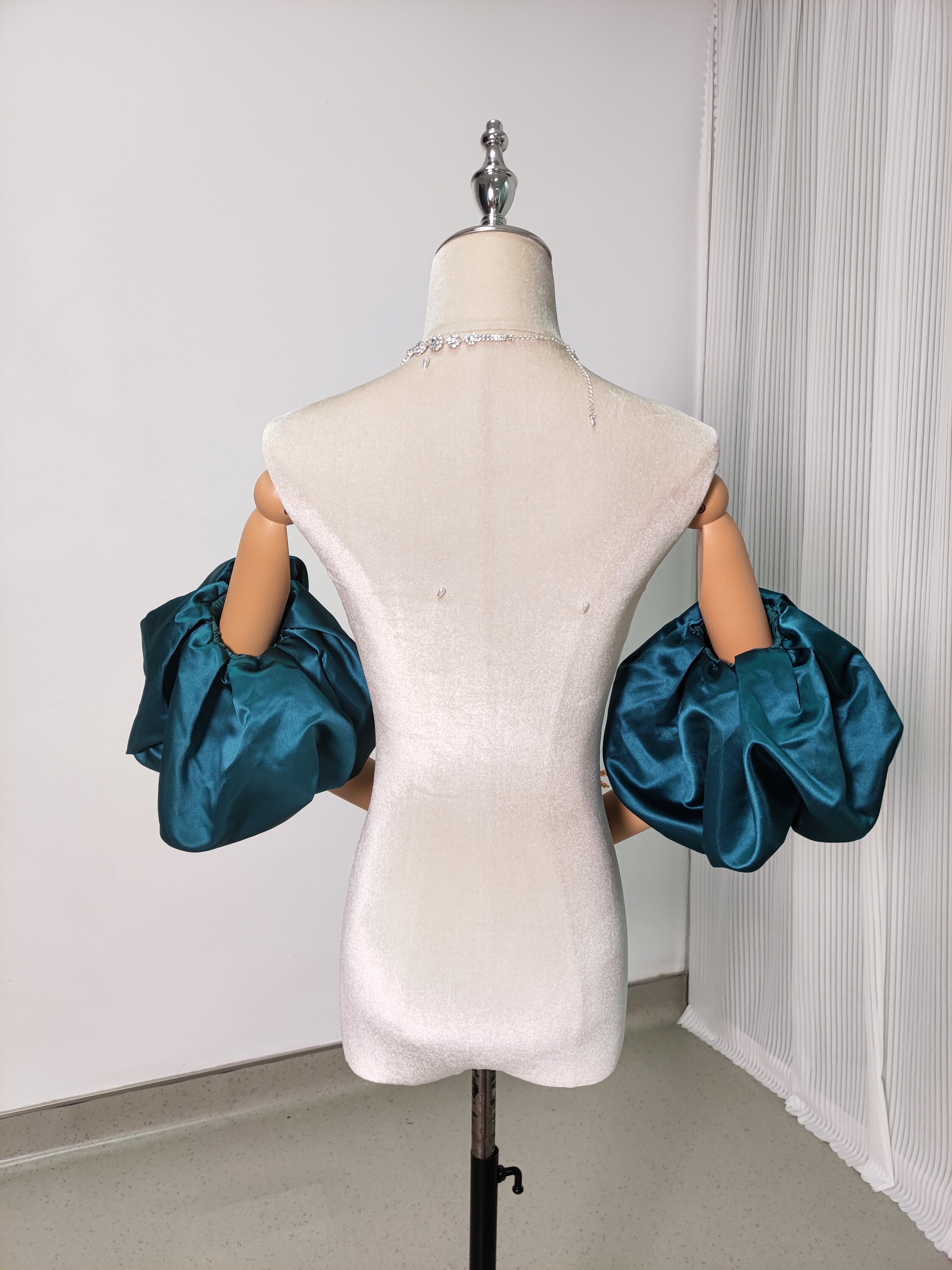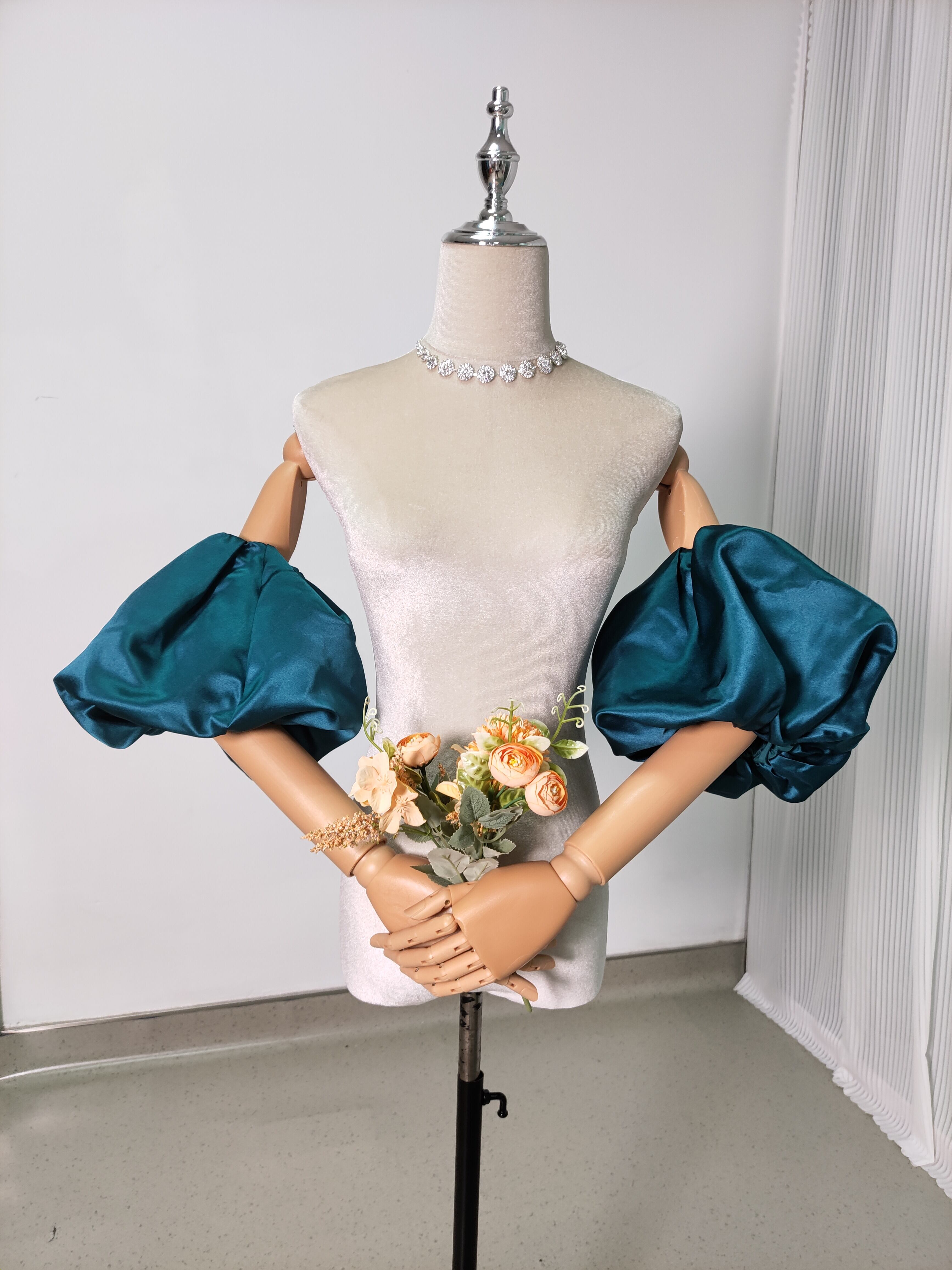 取り外し袖 グリーン ショルダーの付け袖 三角形パフスリーブ ドレスアレンジ ウエディング お色直し クレープ生地