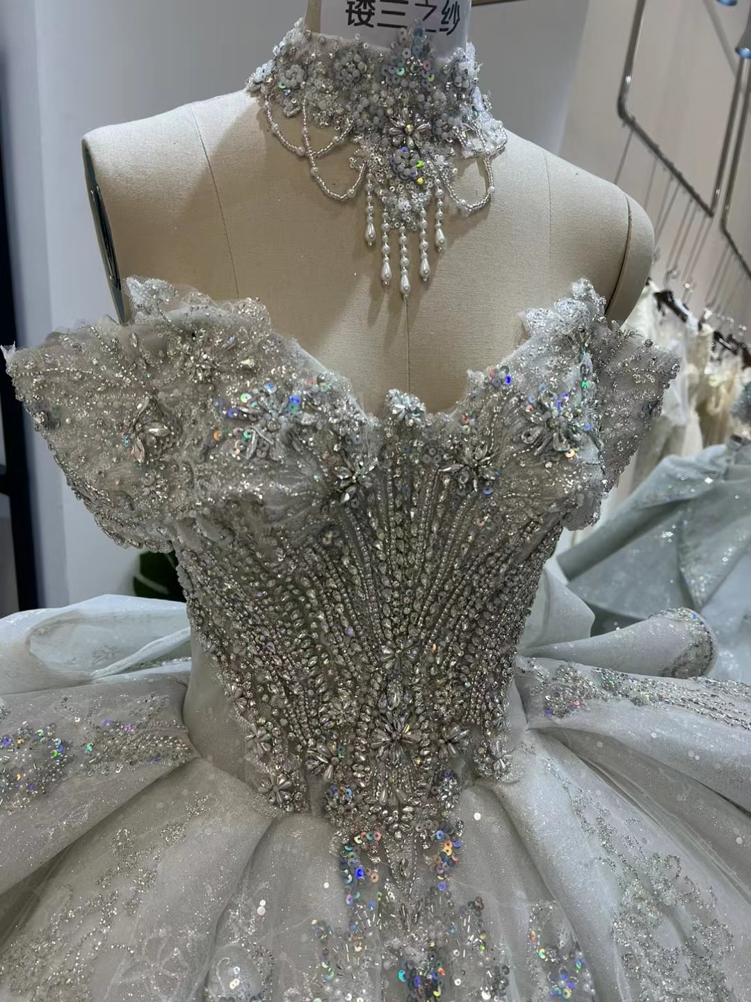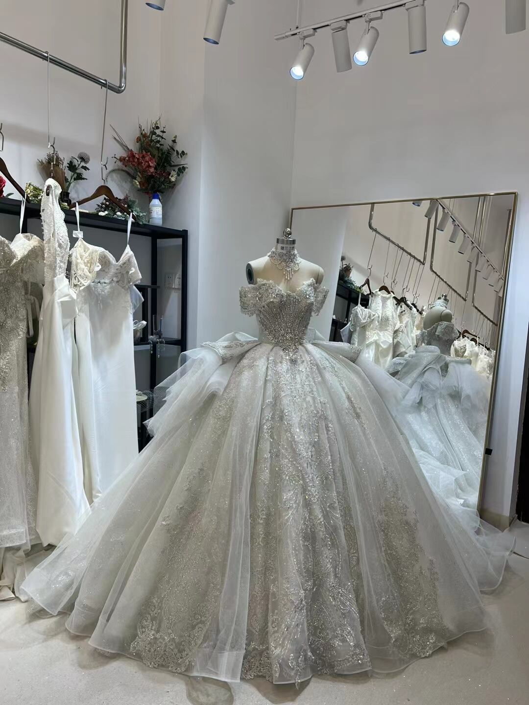 送料無料!人気上昇!ウエディングドレス 豪華なビジュードレス キラキラ エレガント 3D立体レース刺繍 ふっくら柔らかなバックリボン プリンセスライン ハンドメイド オーダードレス 結婚式/前撮り/披露宴