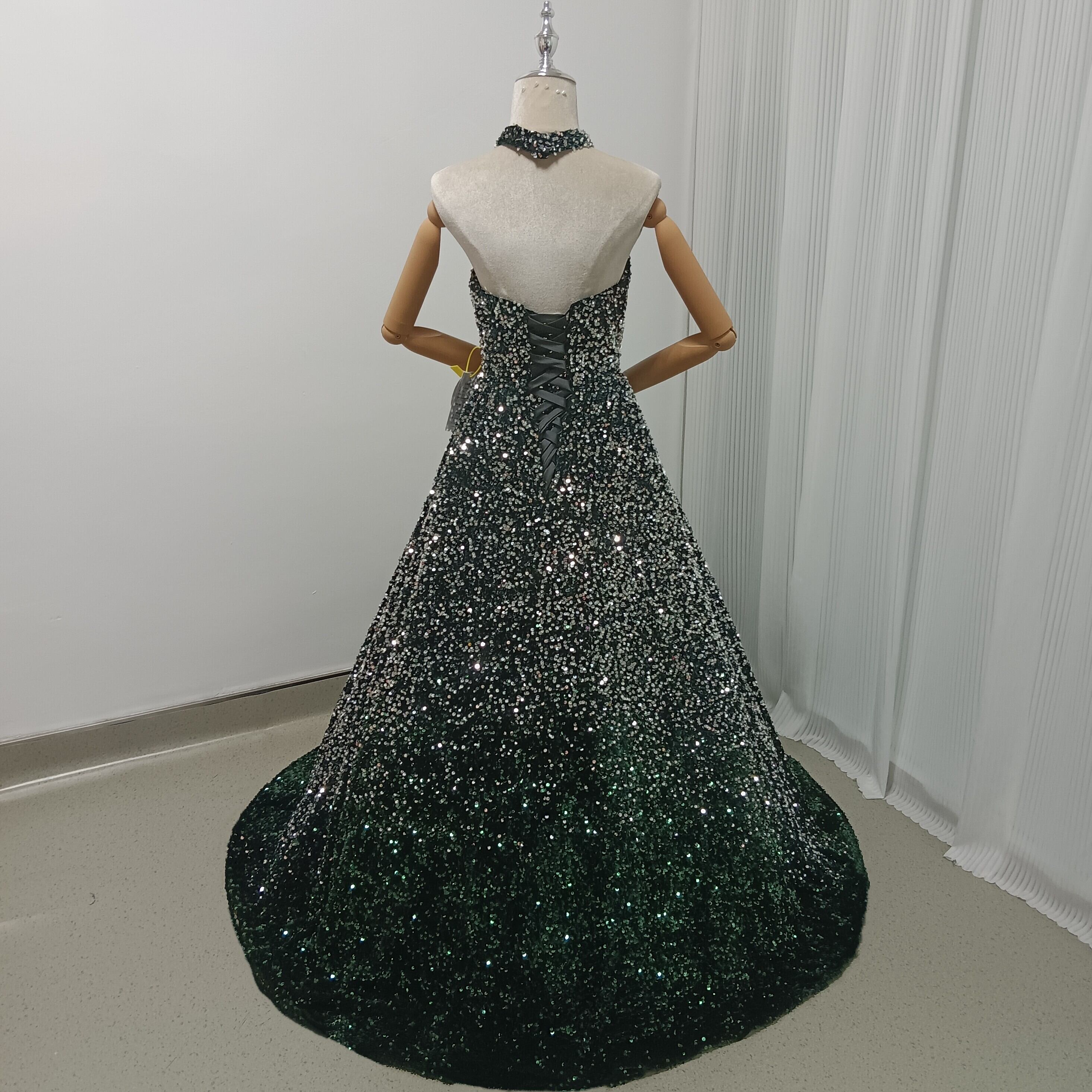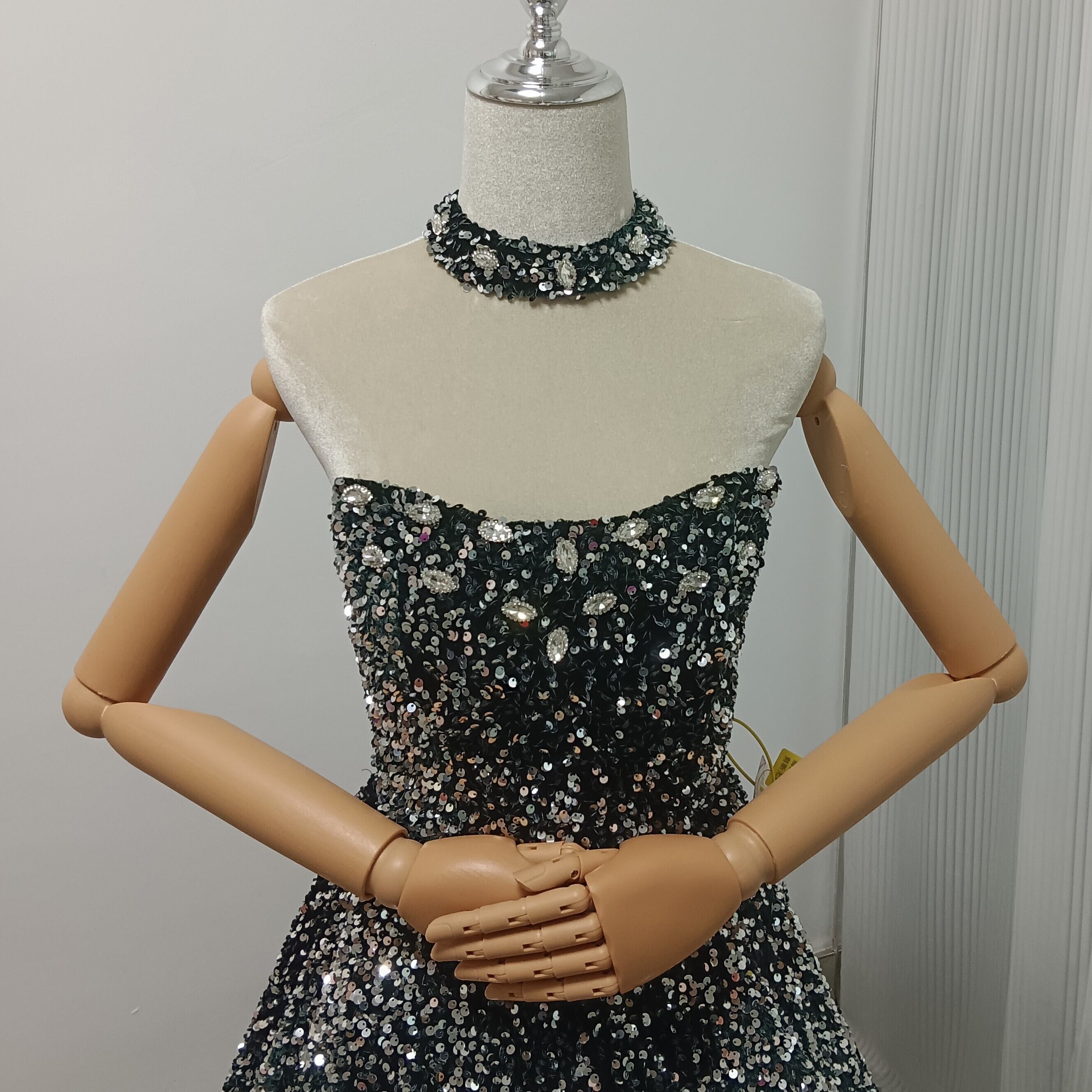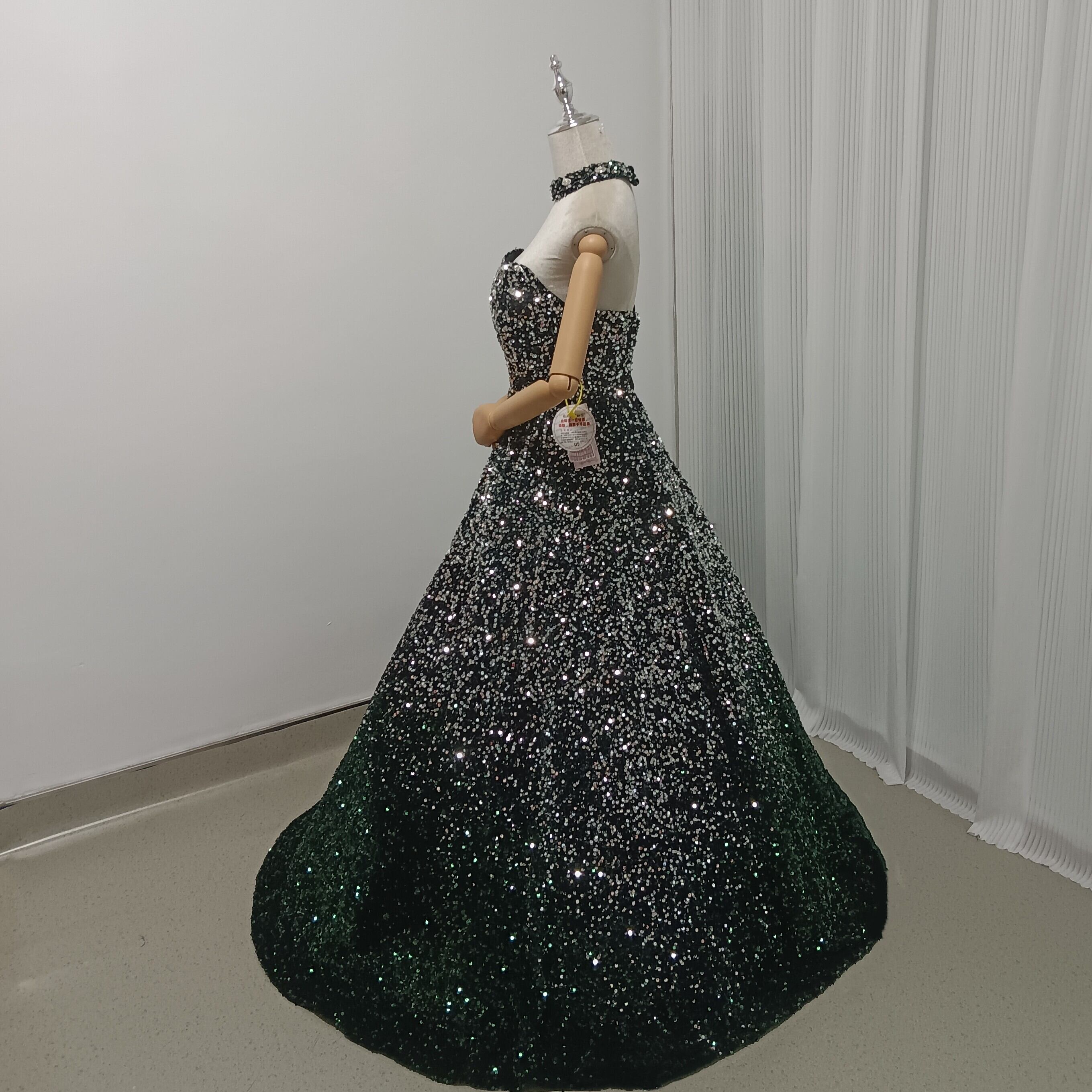輝きな光彩を放つ グリーン のグラデーション ベアトップ キラキラグリッターチュール カラードレス /花嫁