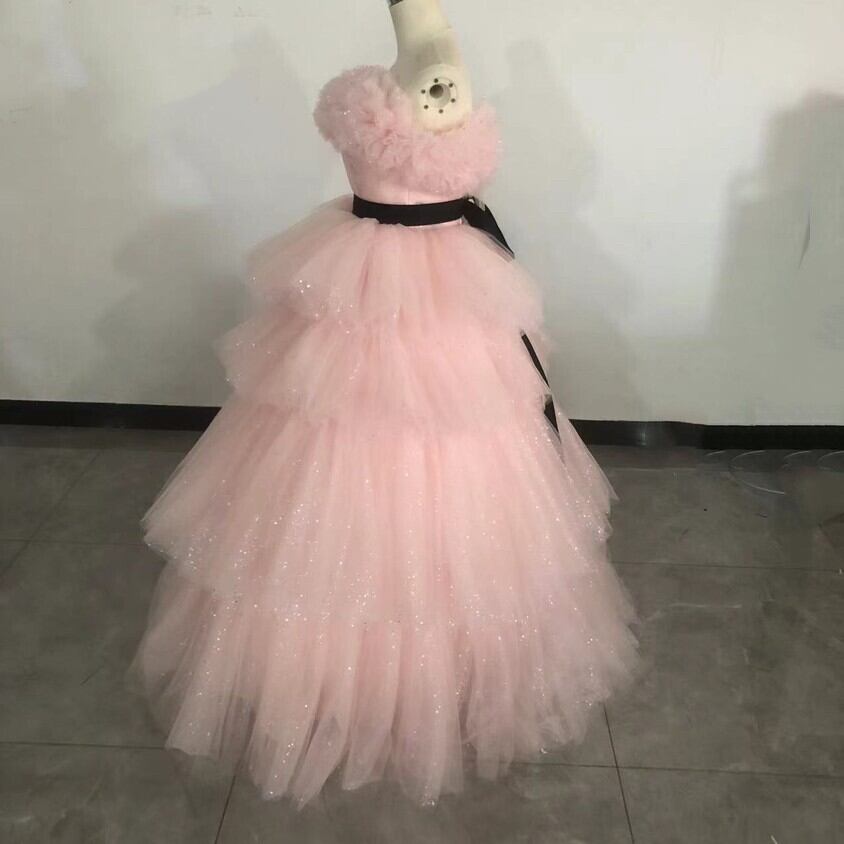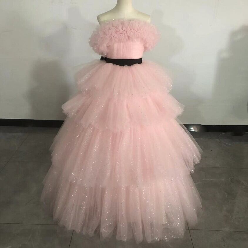 送料無料!美品!オフショルダー ピンク キラキラチュール カラードレス ソフトチュール 重ねたチュールスカート結婚式