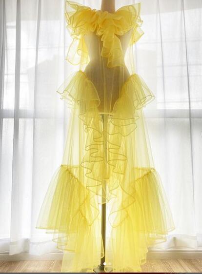 送料無料!オーバードレス カラードレス イエロー/黄色い オシャレ フリル オーダードレス 前撮り ノースリーブ パーティドレス 披露宴/ステージ/演奏ドレス 合コン パーティドレス ハンドメイド オーダードレス | David1021k Dress(ダヴィドレス)