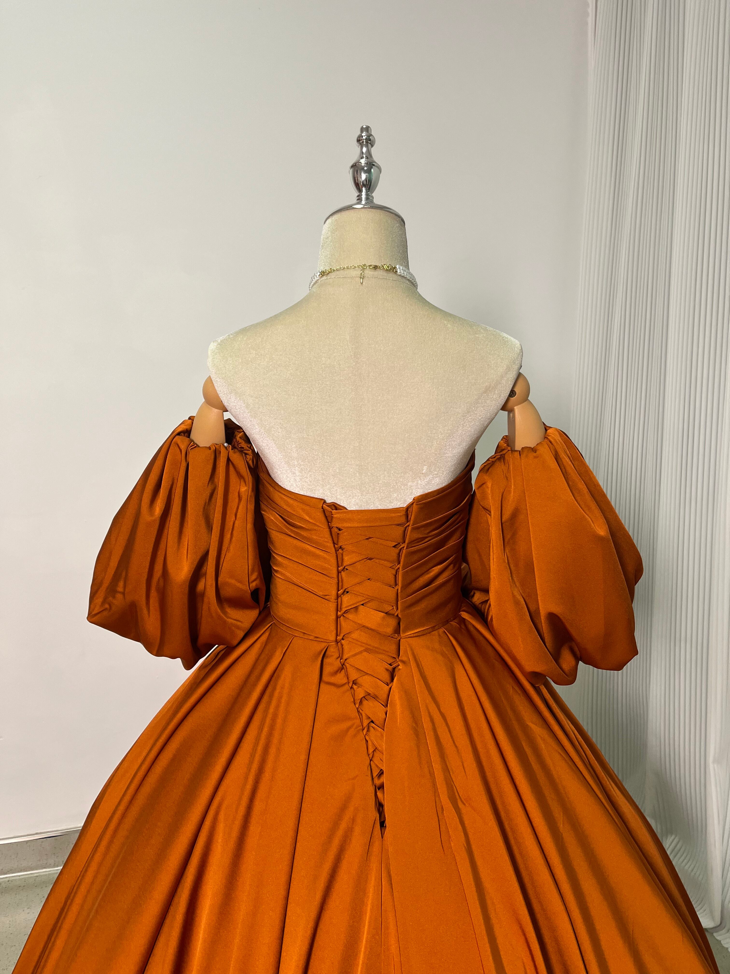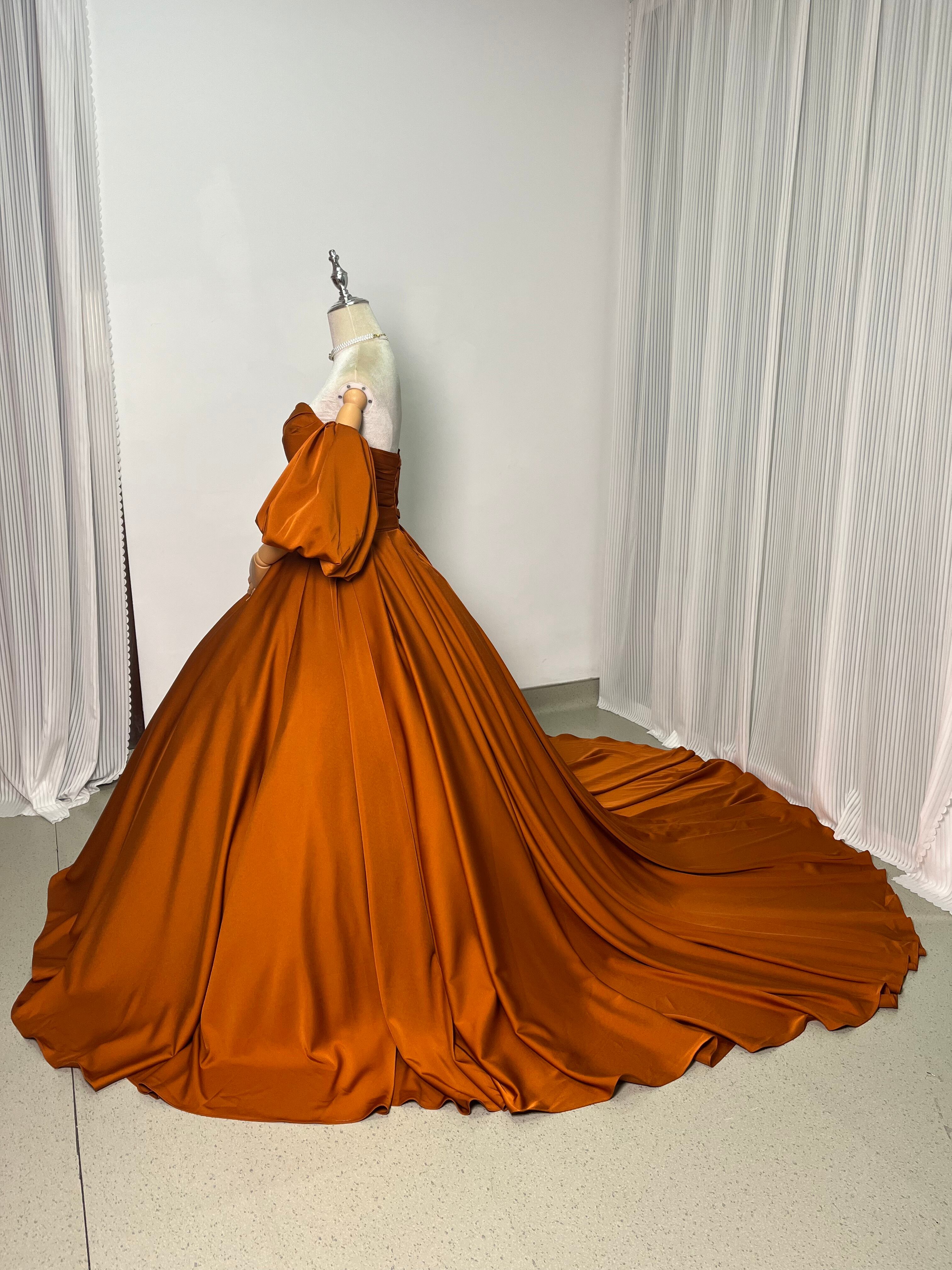 高級イタリアサテン ベアトップ テラコッタ色 取り外し袖 カラードレス 二次会/前撮り結婚式/披露宴/
