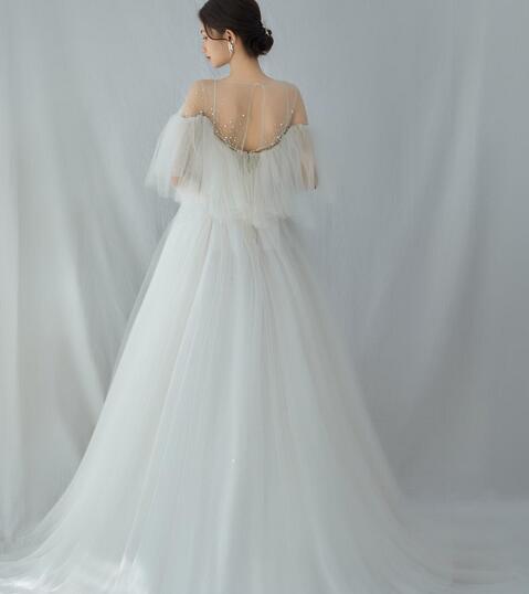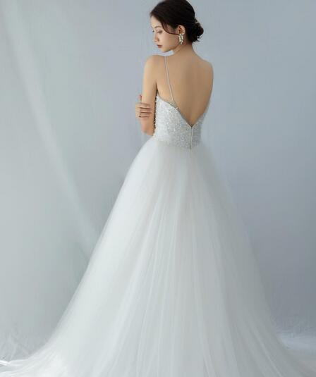 高品質!2WAY セット ウエディングドレス ソフトチュール キャミソール チュールトップス オーダードレス スパンコール ハンドメイド 花嫁 前撮り ロングトレーン ソフトチュール パーティドレス 披露宴 Aライン シンプルなデザインプレゼント 結婚式/前撮り/二次会 | David1021k Dress(ダヴィドレス)