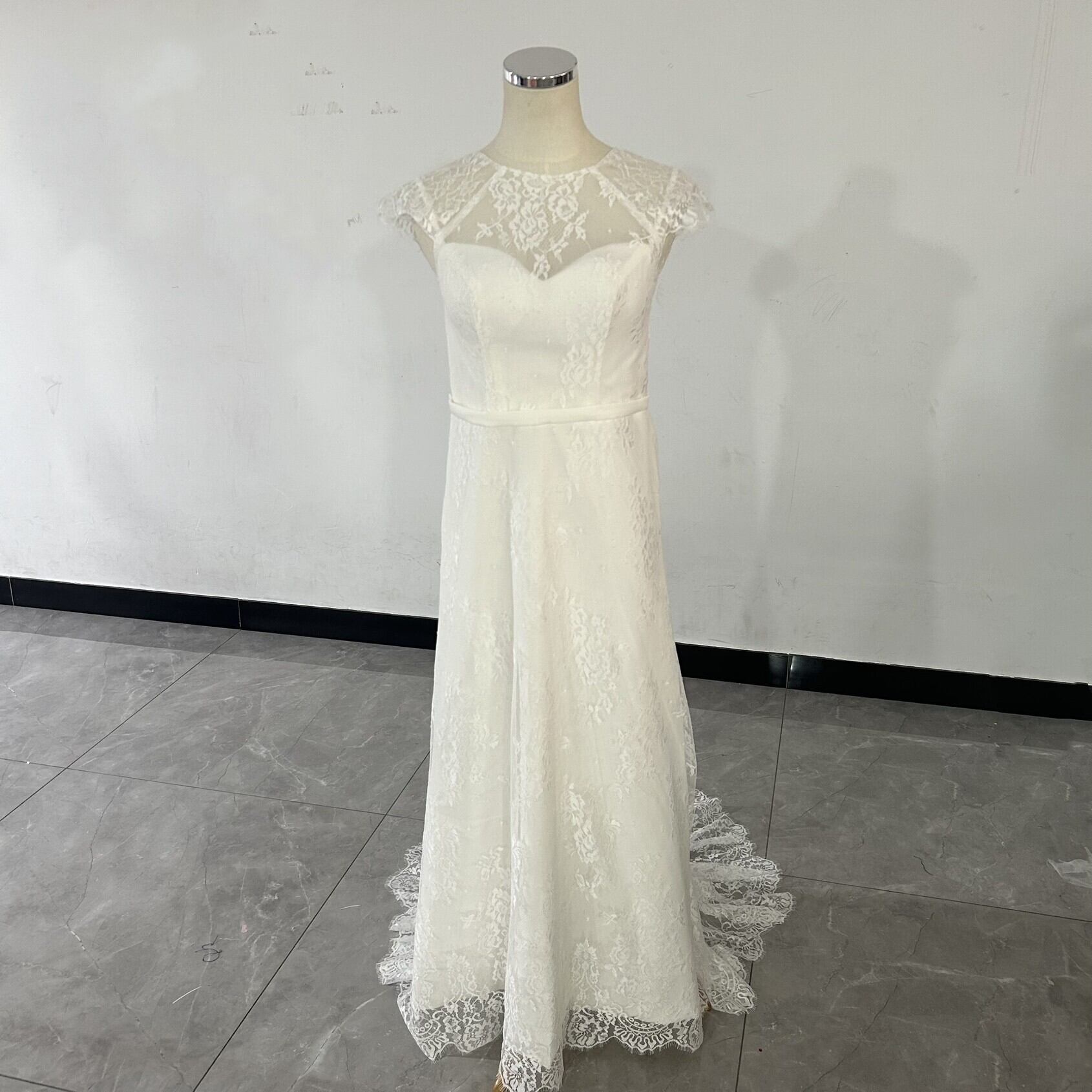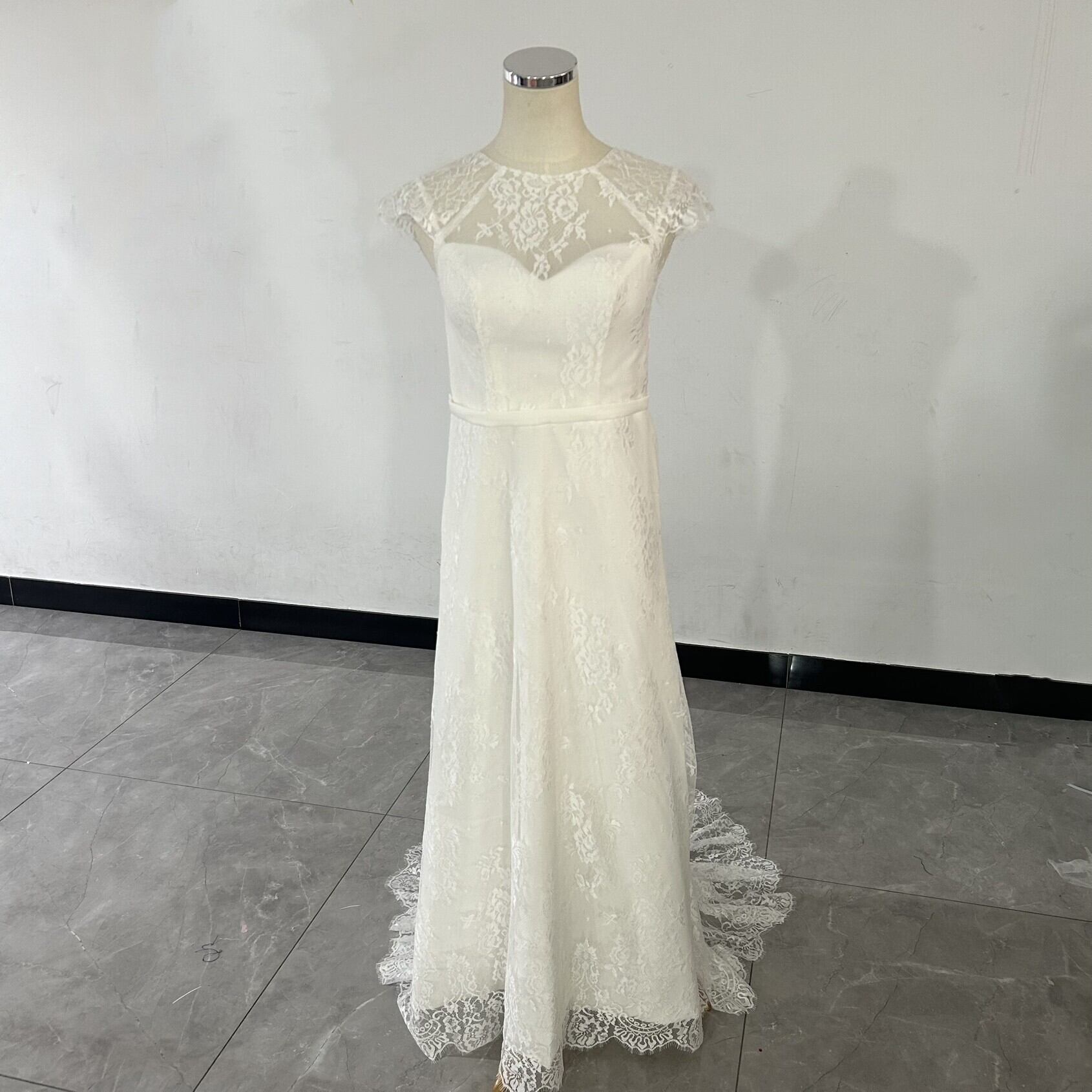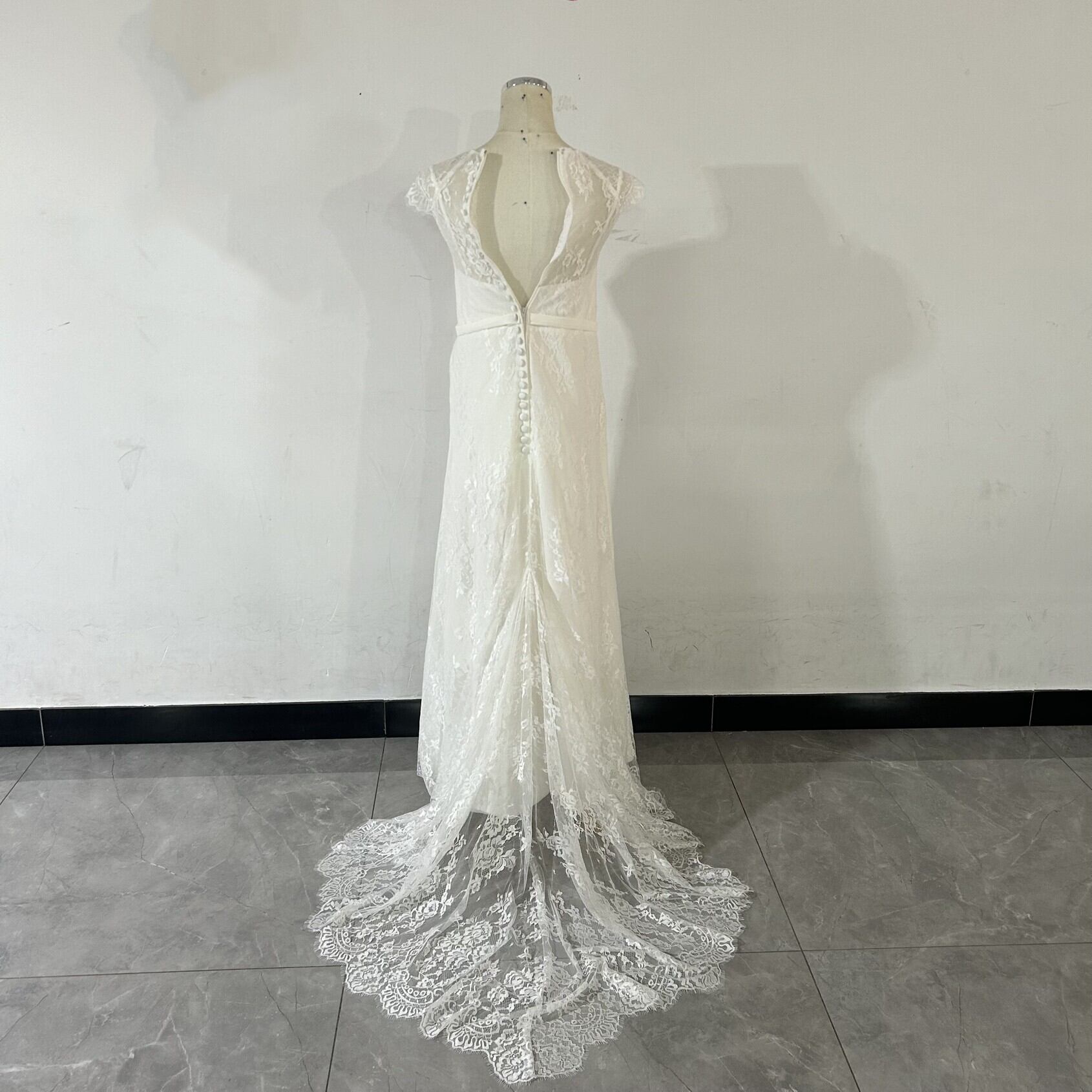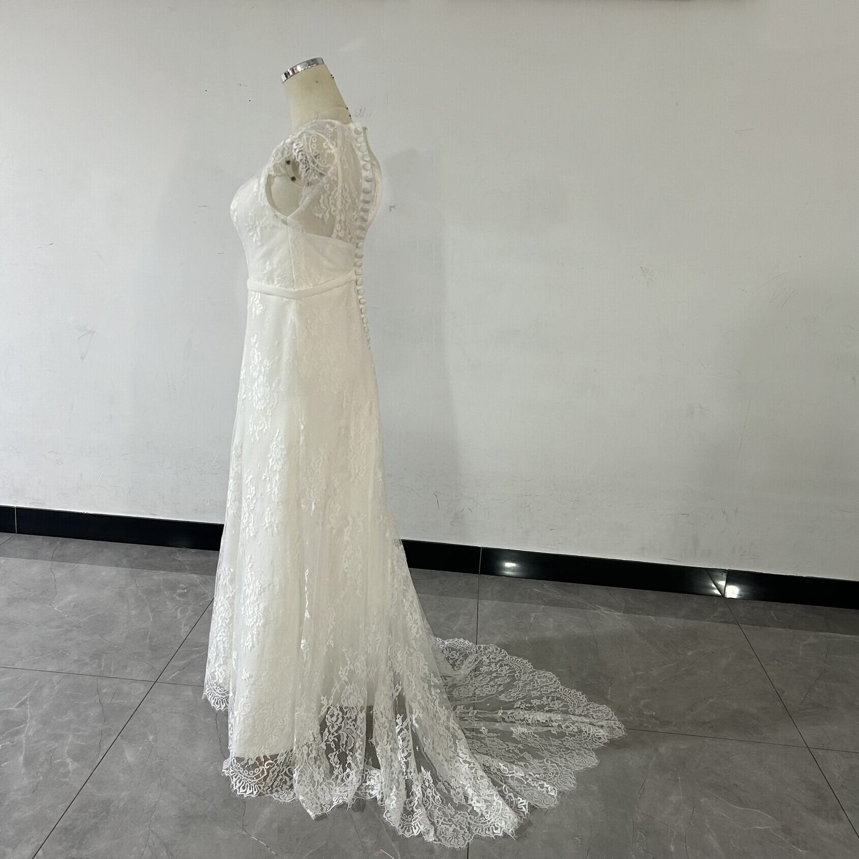 高品質!上品レース ウエディングド エンパイアライン くるみボタン /花嫁結婚式/披露宴
