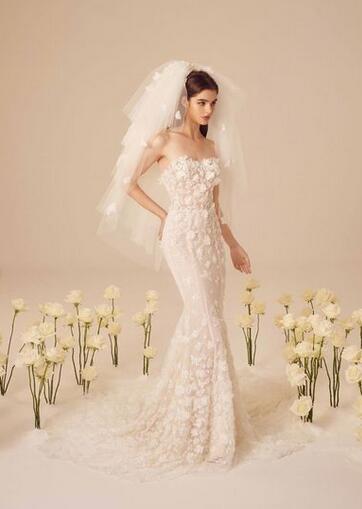 送料無料!ウエディングドレス 上品花レース ベアトップ 総レース マーメイドライン オーダードレス ハンドメイド 優雅なシルエット 花嫁 トレーン 披露宴 結婚式/前撮り/二次会 | David1021k Dress(ダヴィドレス)