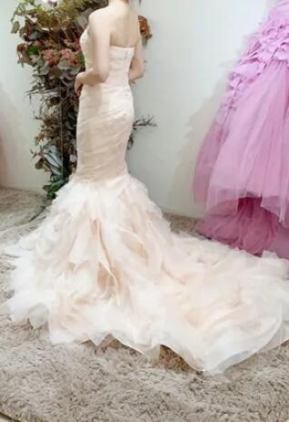 送料無料!ウエディングドレス ベアトップ オーダードレス マーメイドライン 柔らかく重ねたチュールスカート シャンパン色 ロングトレーン 優雅なシルエット ハンドメイド Aライン 花嫁 前撮り シンプルなデザイン 結婚式/前撮り/二次会 | David1021k Dress(ダヴィドレス)