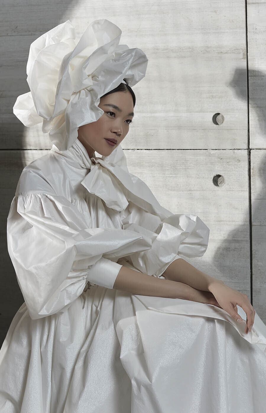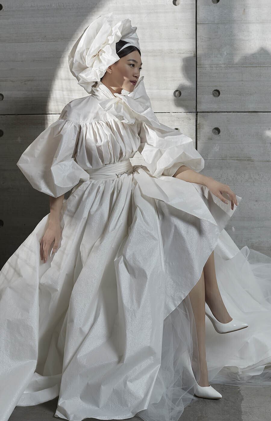 高品質!オーダードレス 色変更可能 パフスリーブ アシンメトリー風 ロングトレーン ウエディングドレス パーティードレス ボリューミー フロントスリット ハイネック ハンドメイド シンプルなデザイン 花嫁 結婚式/前撮り/二次会 イブニングドレス | David1021k Dress(ダヴィドレス)
