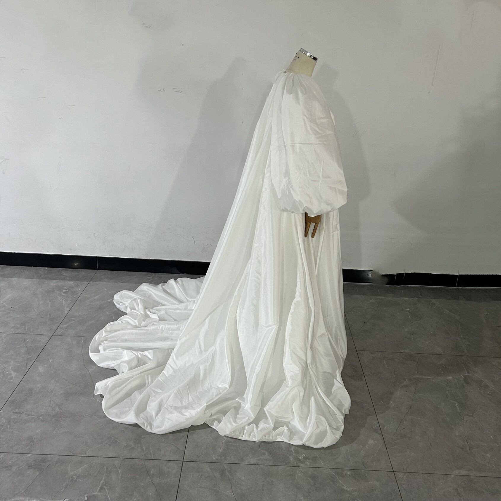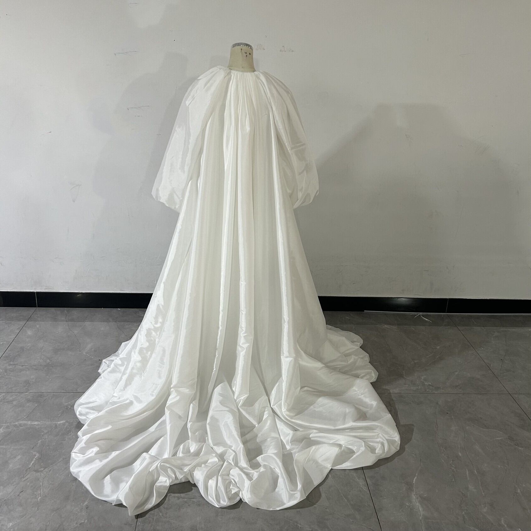 上品 ホワイト シルクタフタ ウエディングド フロントスリット 揺らめく裾 結婚式/披露宴/前撮り
