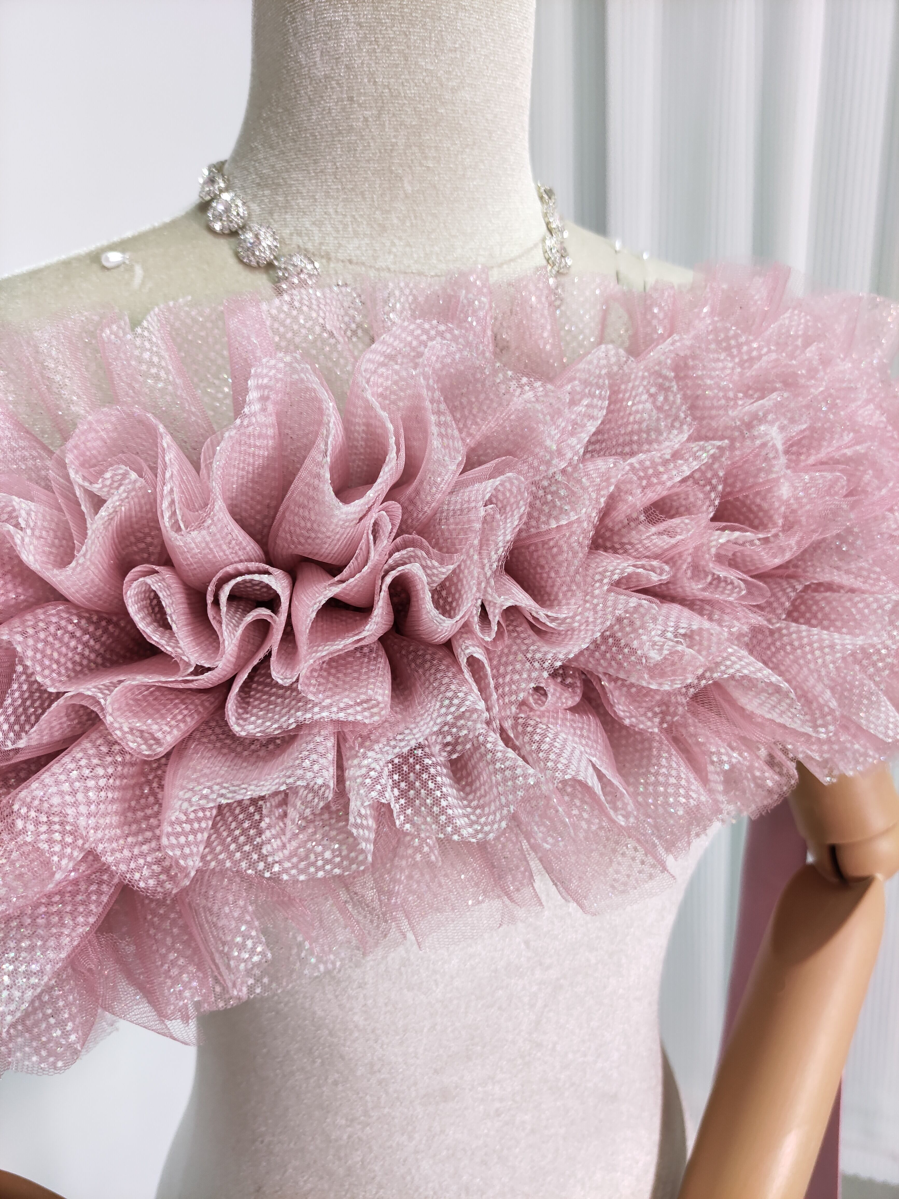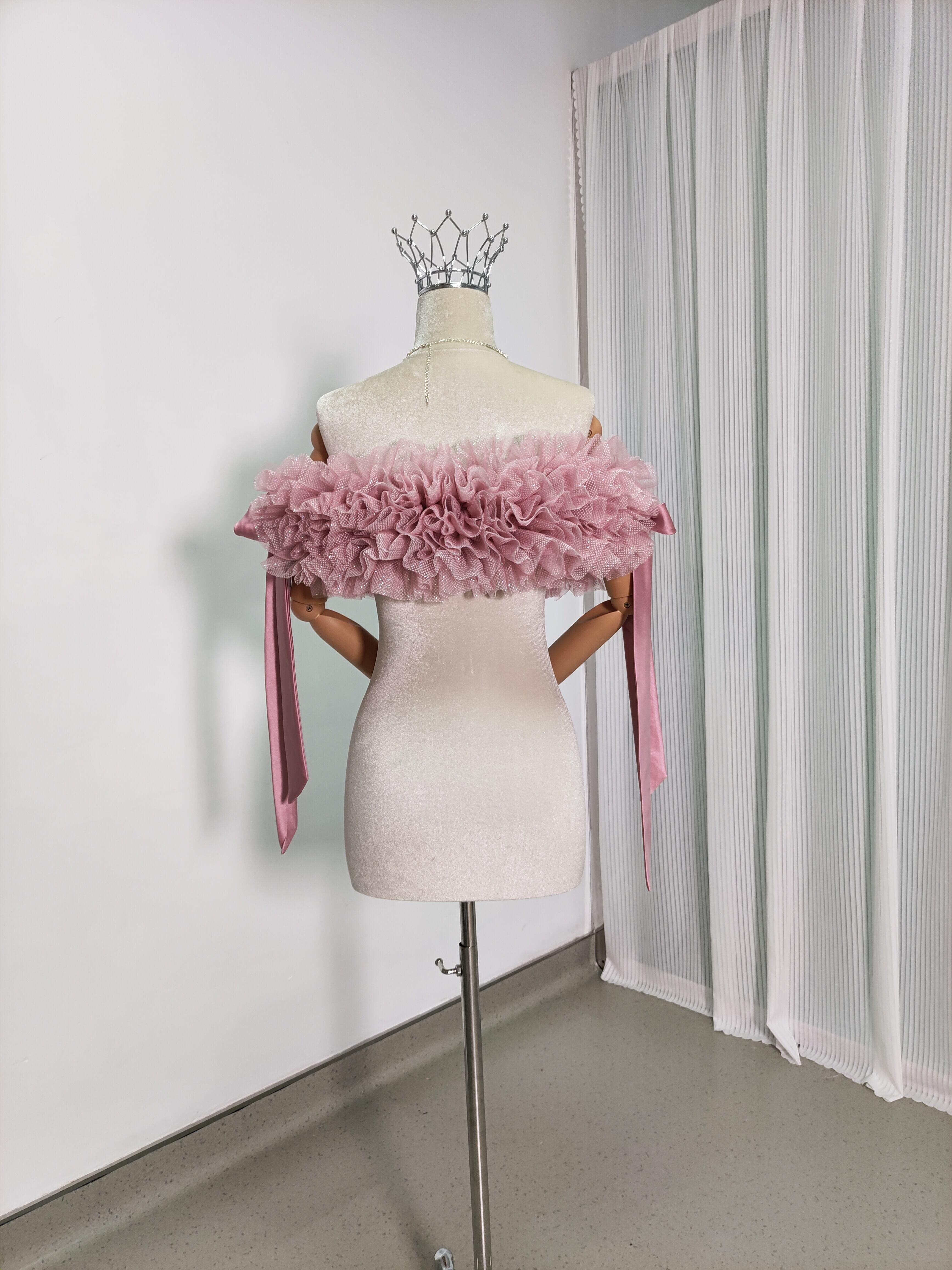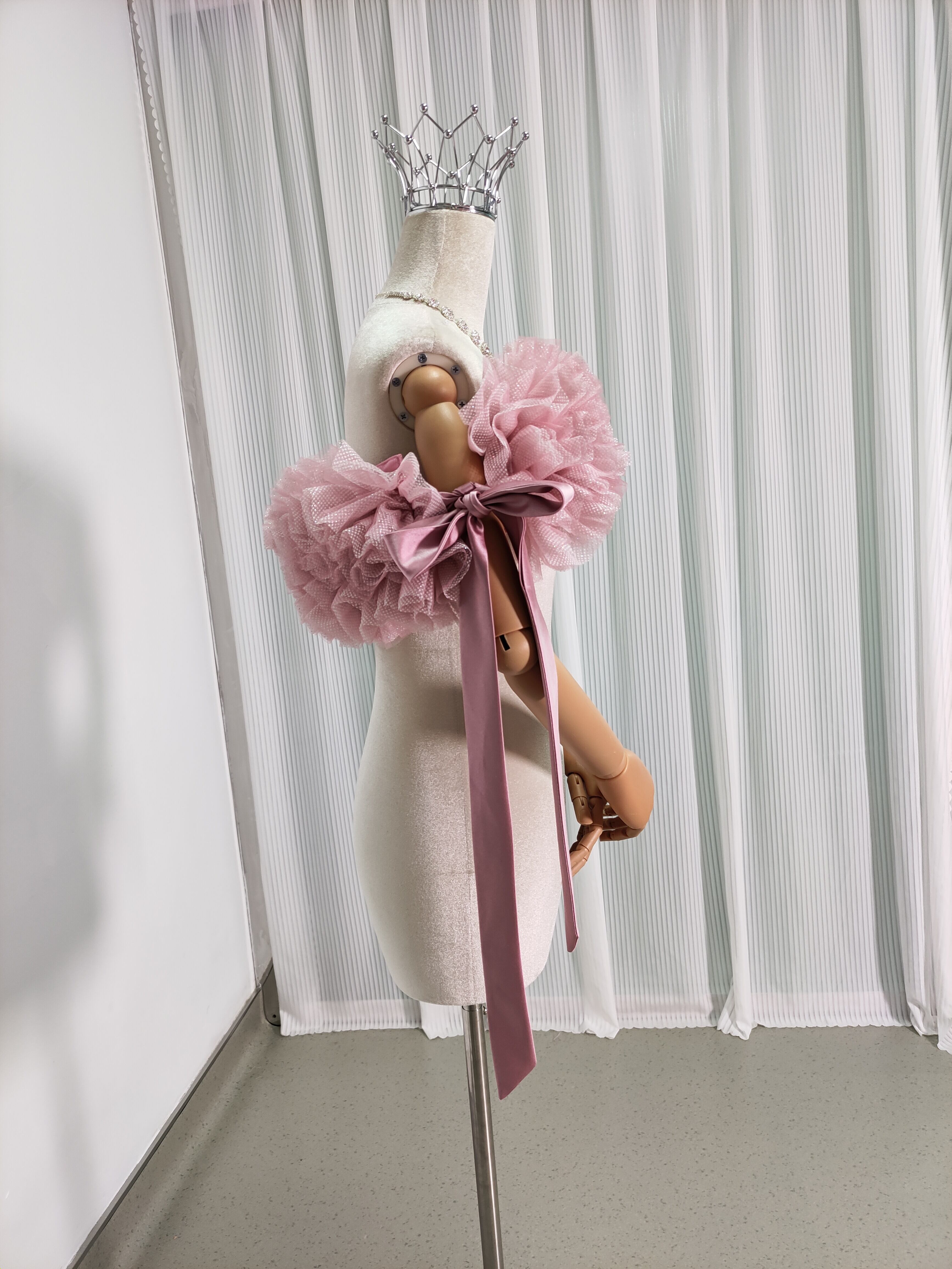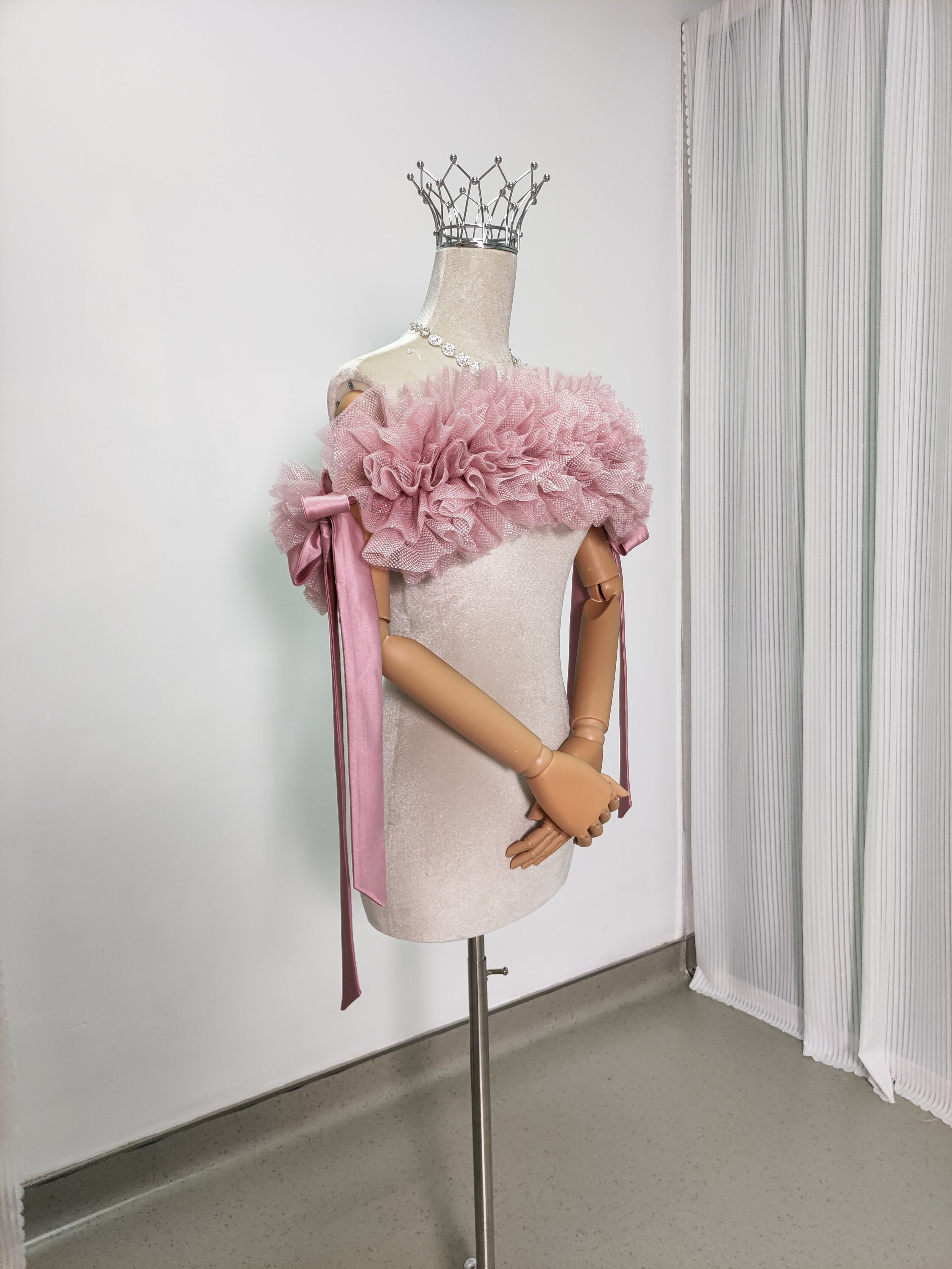ピンク紫 取り外しオフショルダー ポンチョ ソフトチュール ラッフルフリル 花嫁