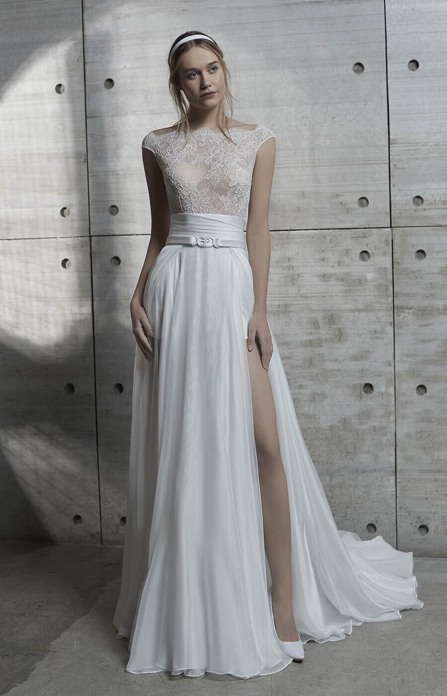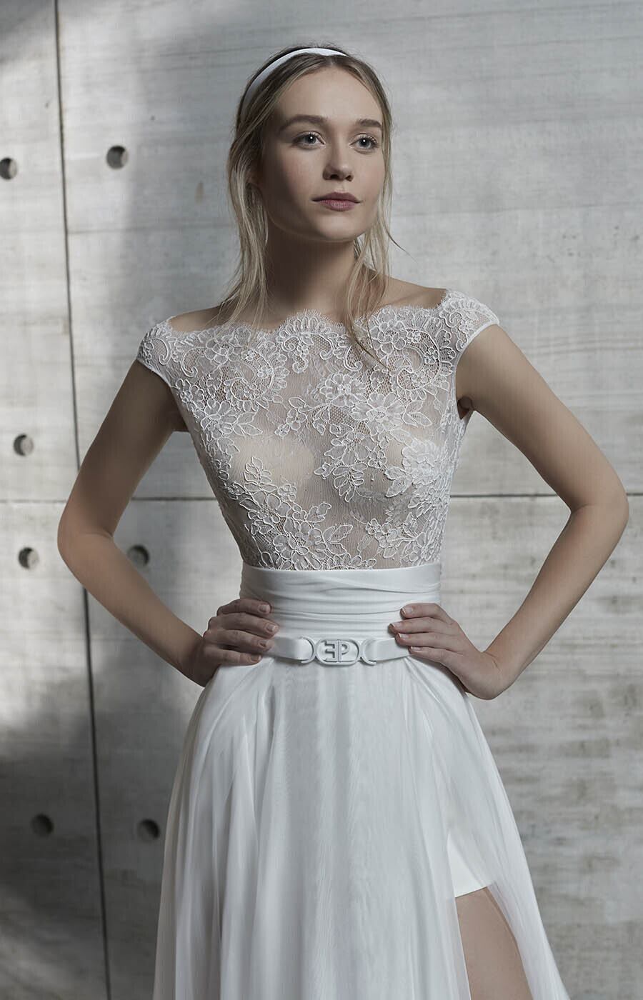 送料無料!ウエディングドレス ノースリーブ オーダードレス パーティードレス 上品レース フロントスリット ズボン 優雅なシルエット ワンピース トレーン ハンドメイド 花嫁 結婚式/前撮り/二次会 イブニングドレス 合コン | David1021k Dress(ダヴィドレス)