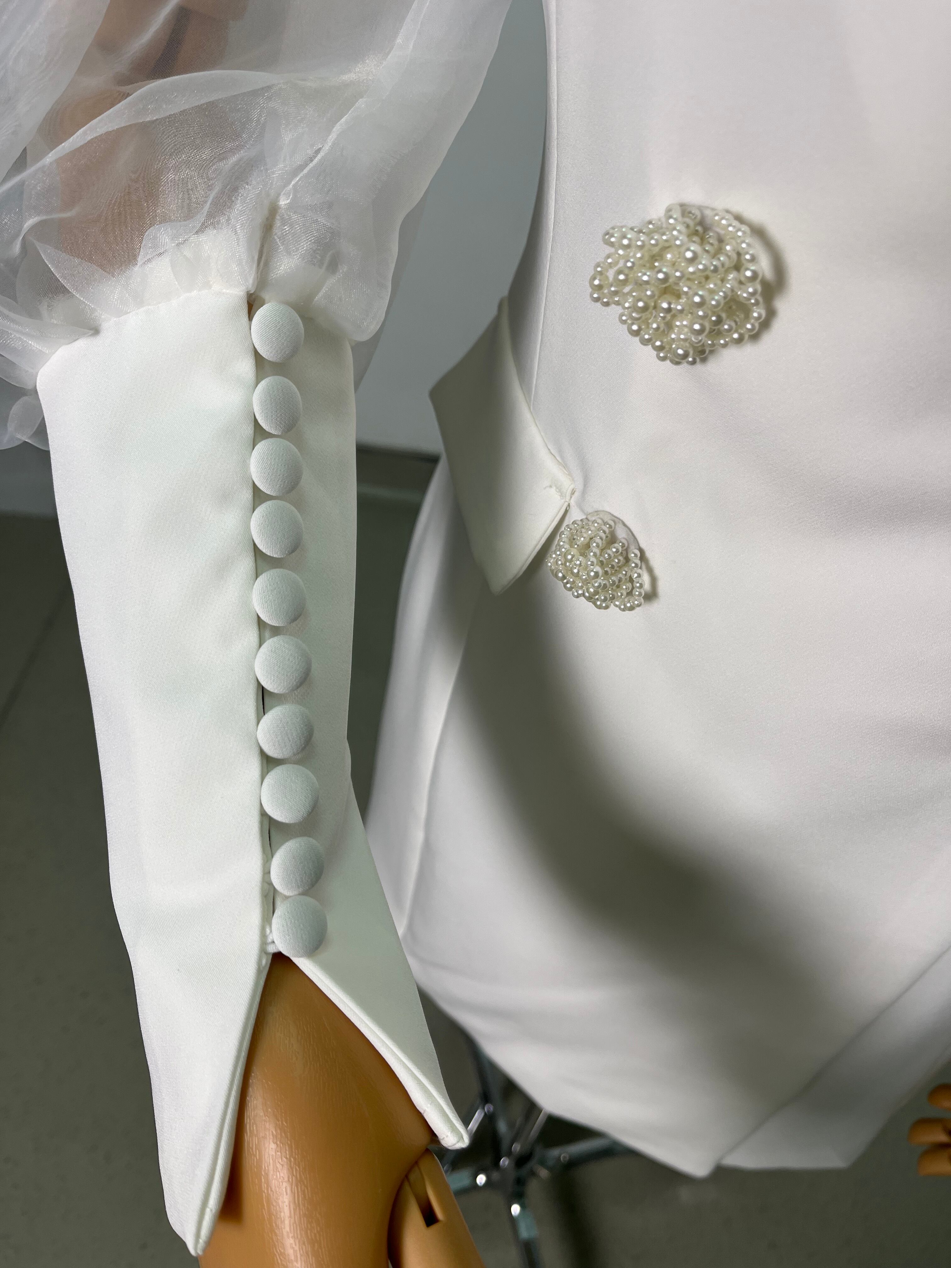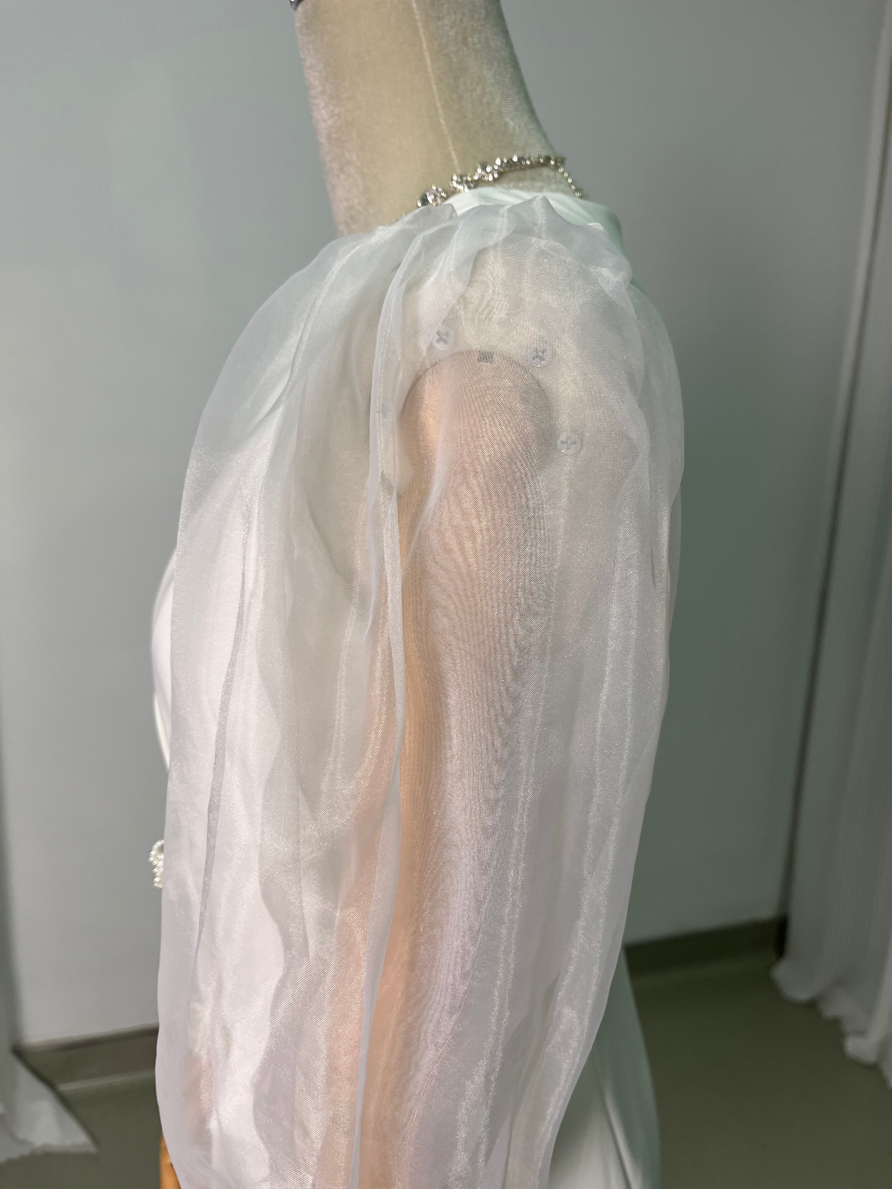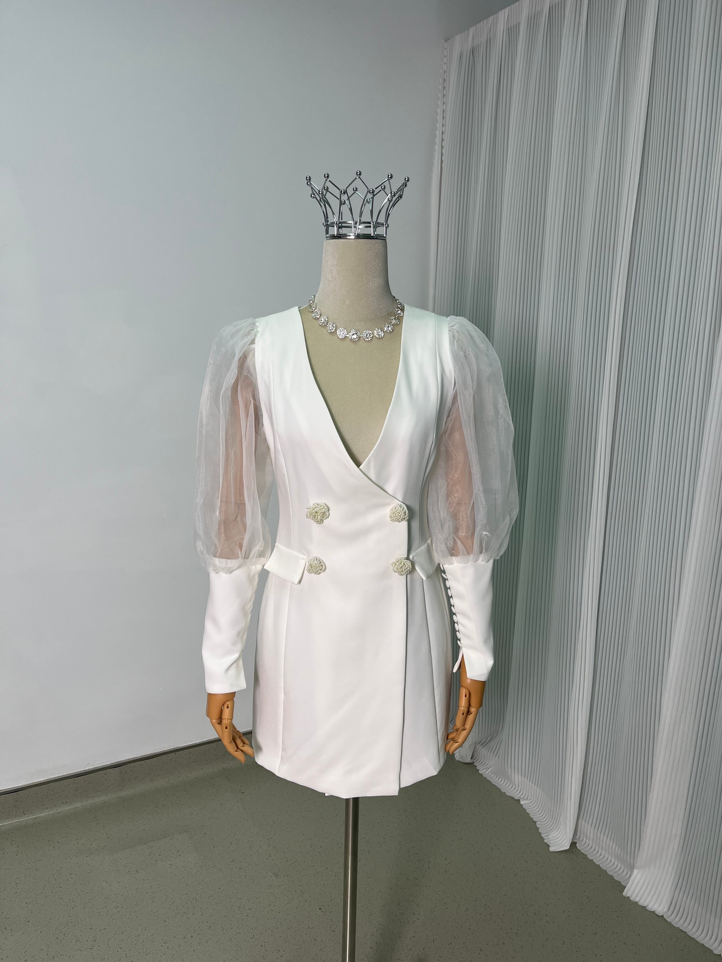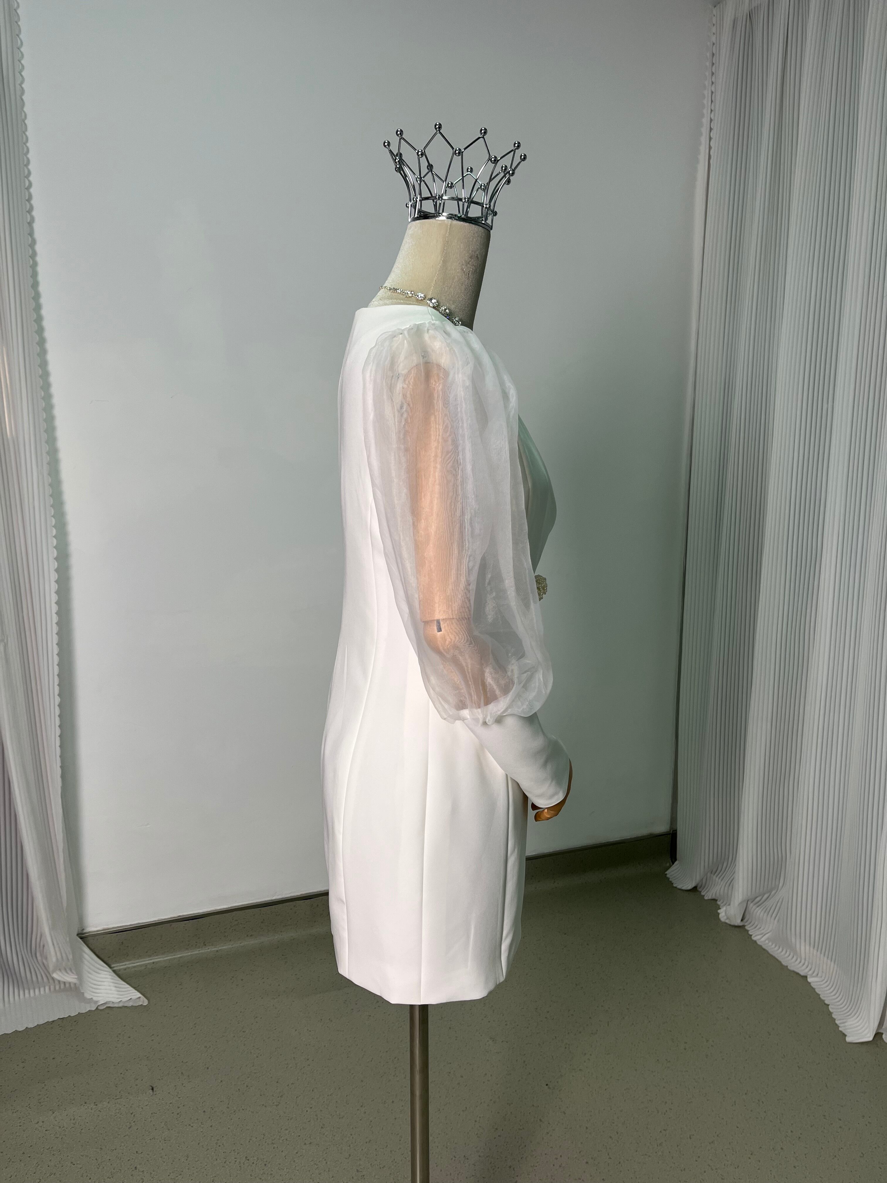 高品質!ホワイト ウエディングドレス 長袖 ミニドレス オーバードレス 花嫁 結婚式/前撮り/二次会