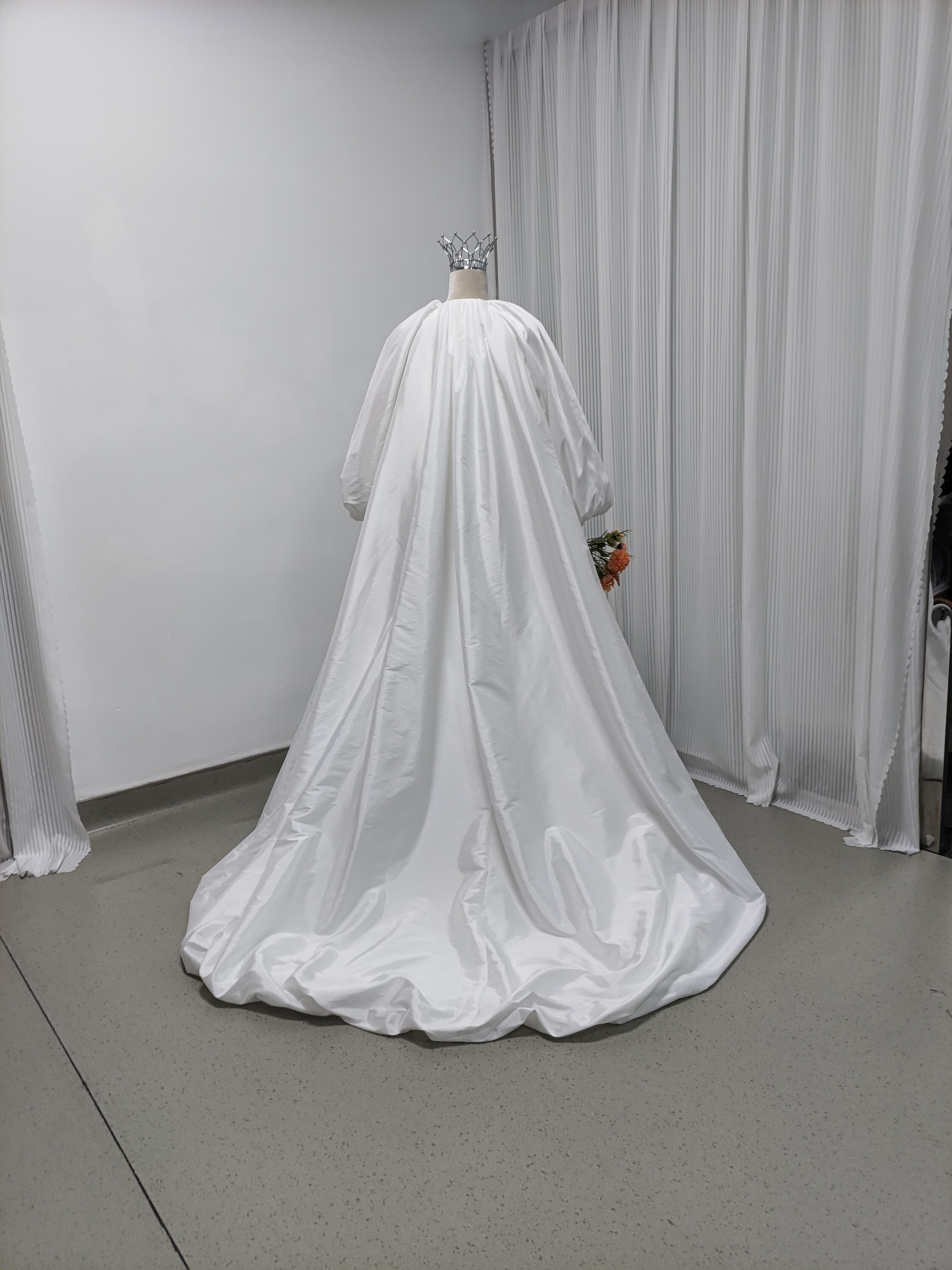 上品 ホワイト シルクタフタ ウエディングド フロントスリット 揺らめく裾 結婚式/披露宴/前撮り
