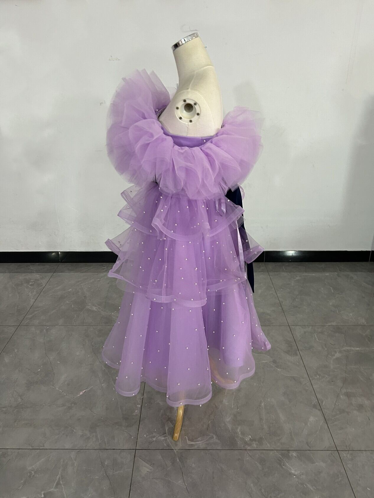 抜群のおしゃれ見え 取り外しオフショルダー カラードレス 柔らかく重ねたチュールスカート/挙式/前撮り/