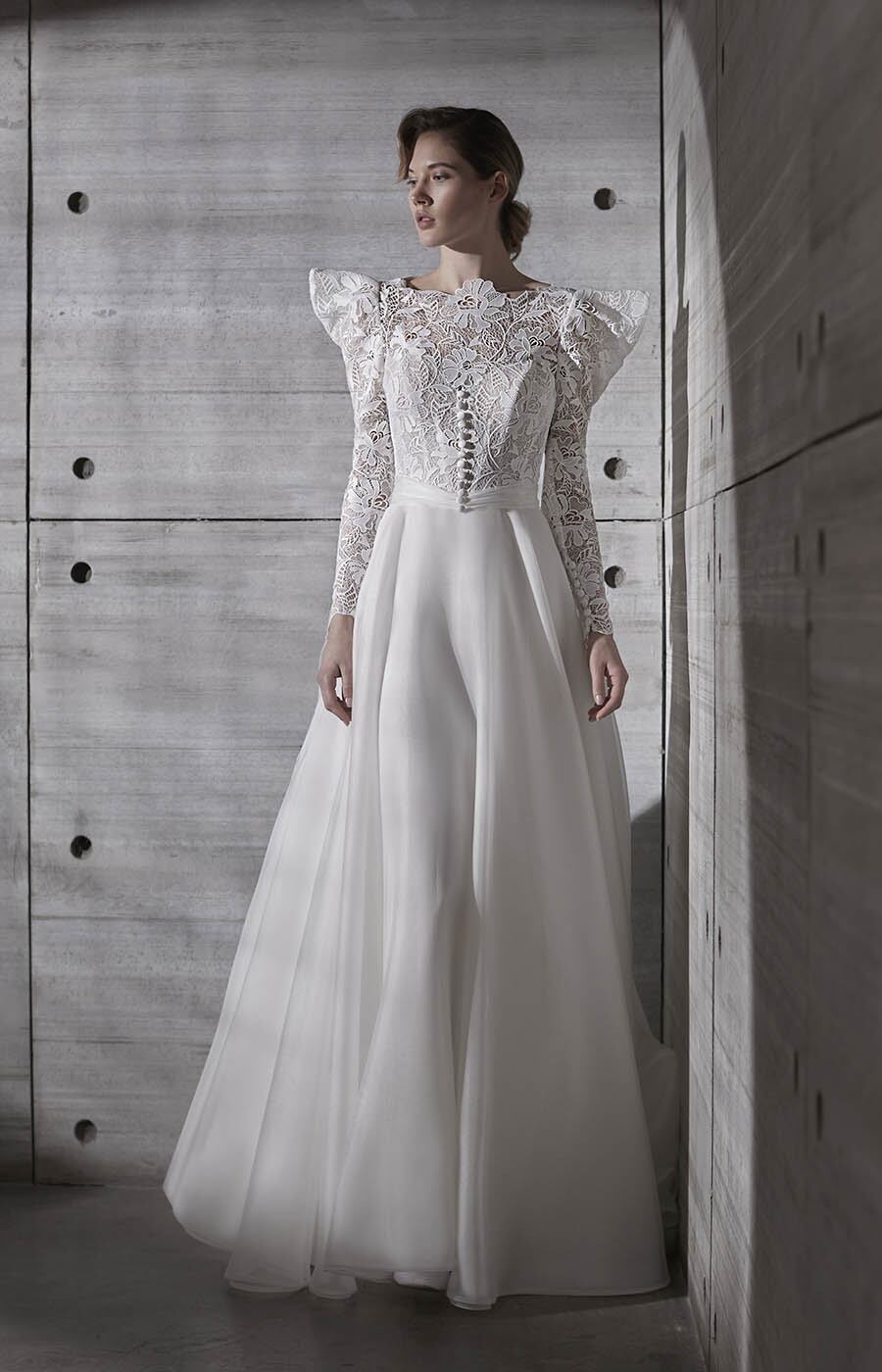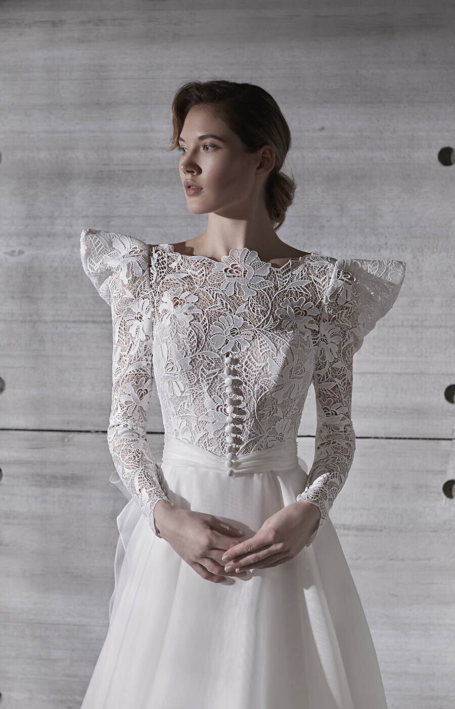 送料無料!ウエディングドレス Aライン 長袖 ロング トレーン レーストップス オーダードレス ふっくら柔らかなバックリボン ハンドメイド 花嫁 結婚式/前撮り/二次会 | David1021k Dress(ダヴィドレス)