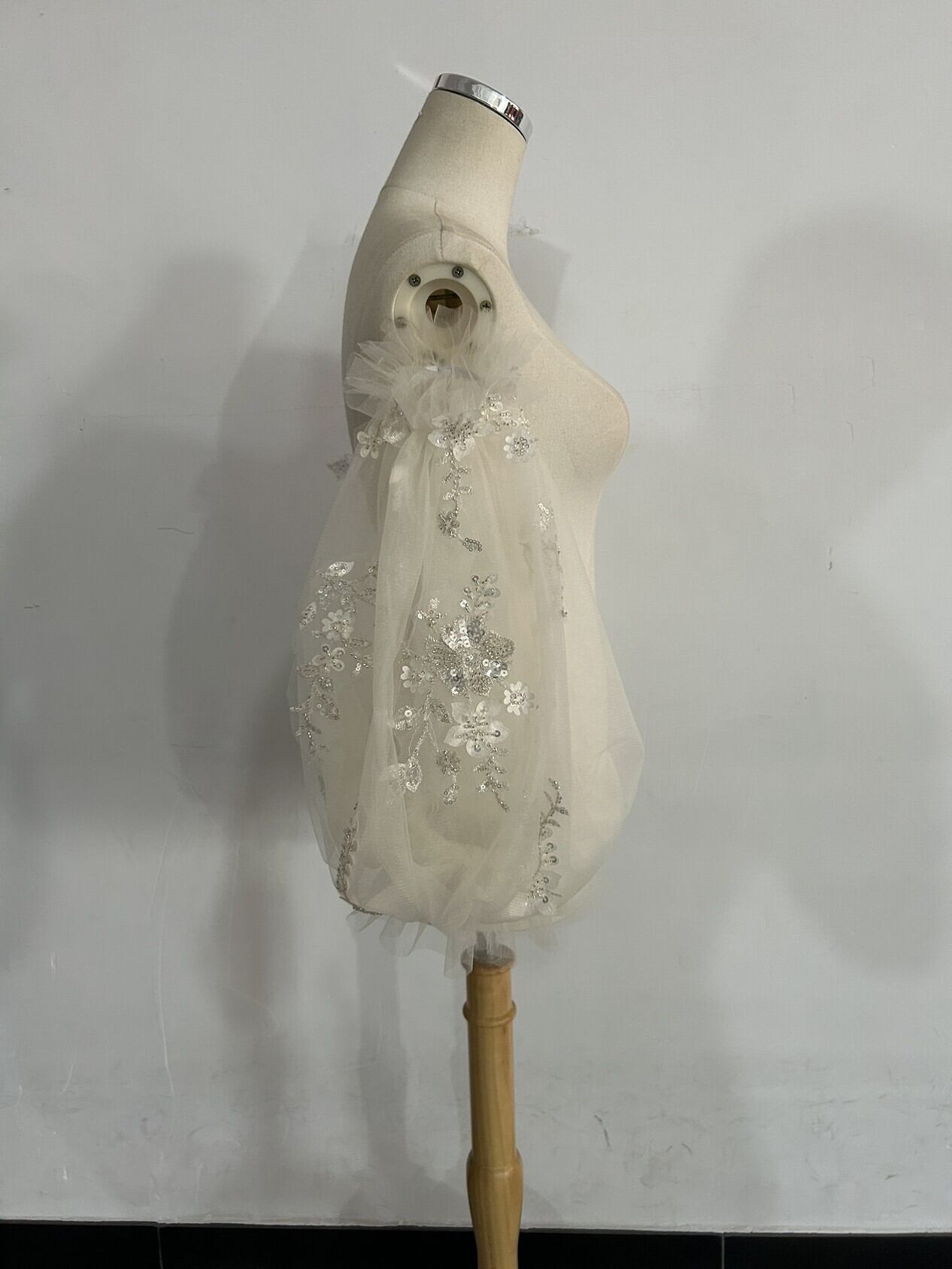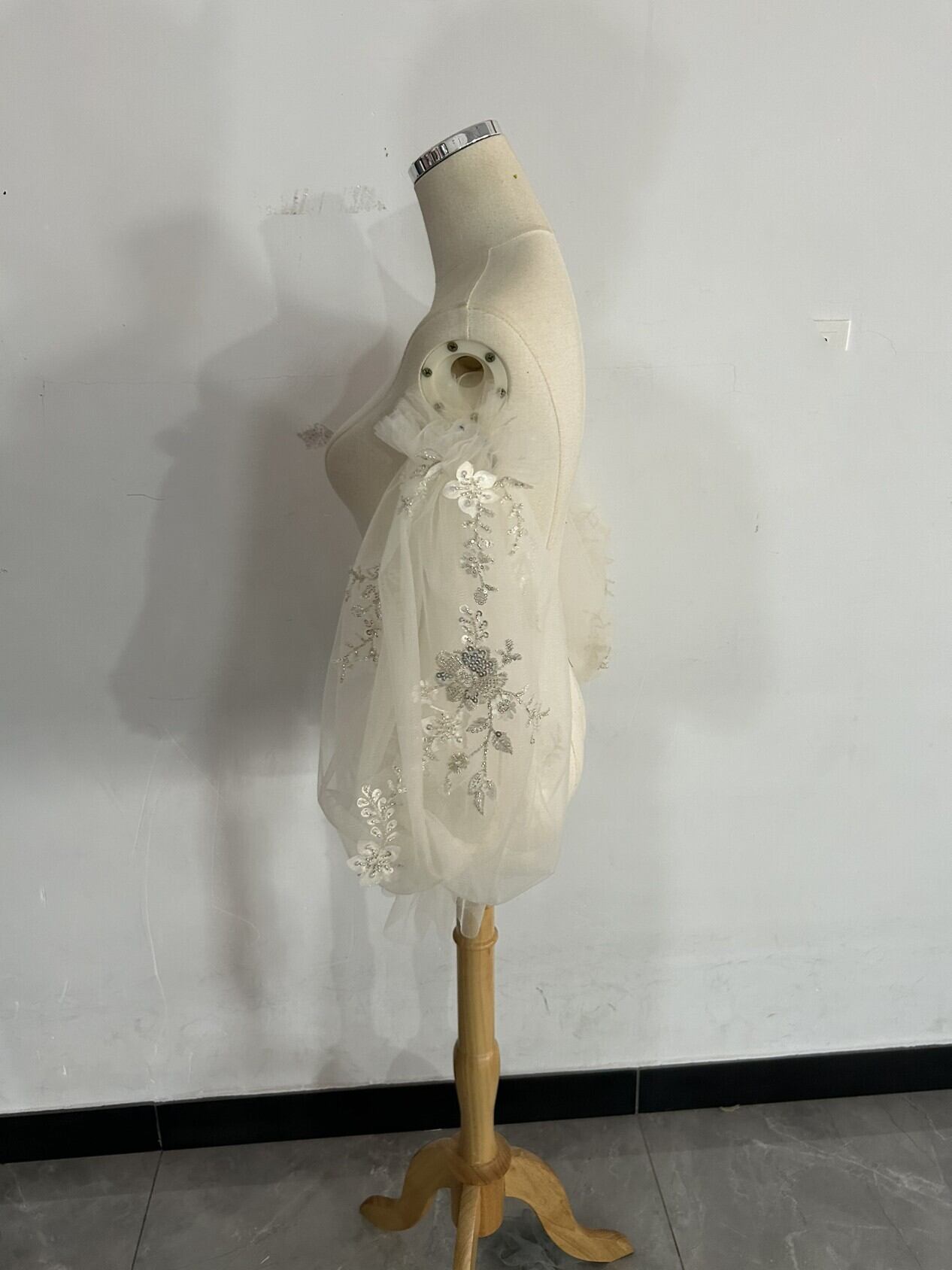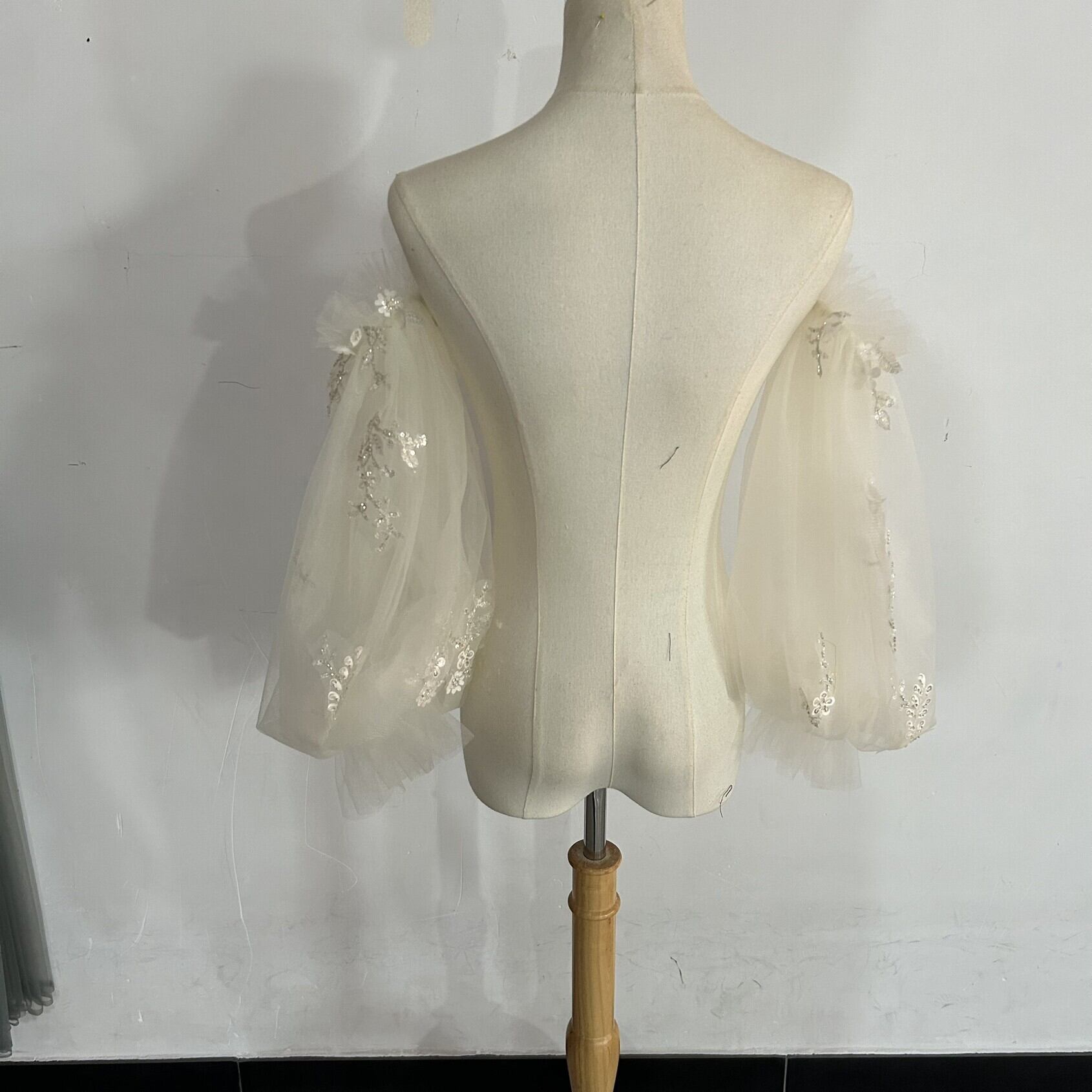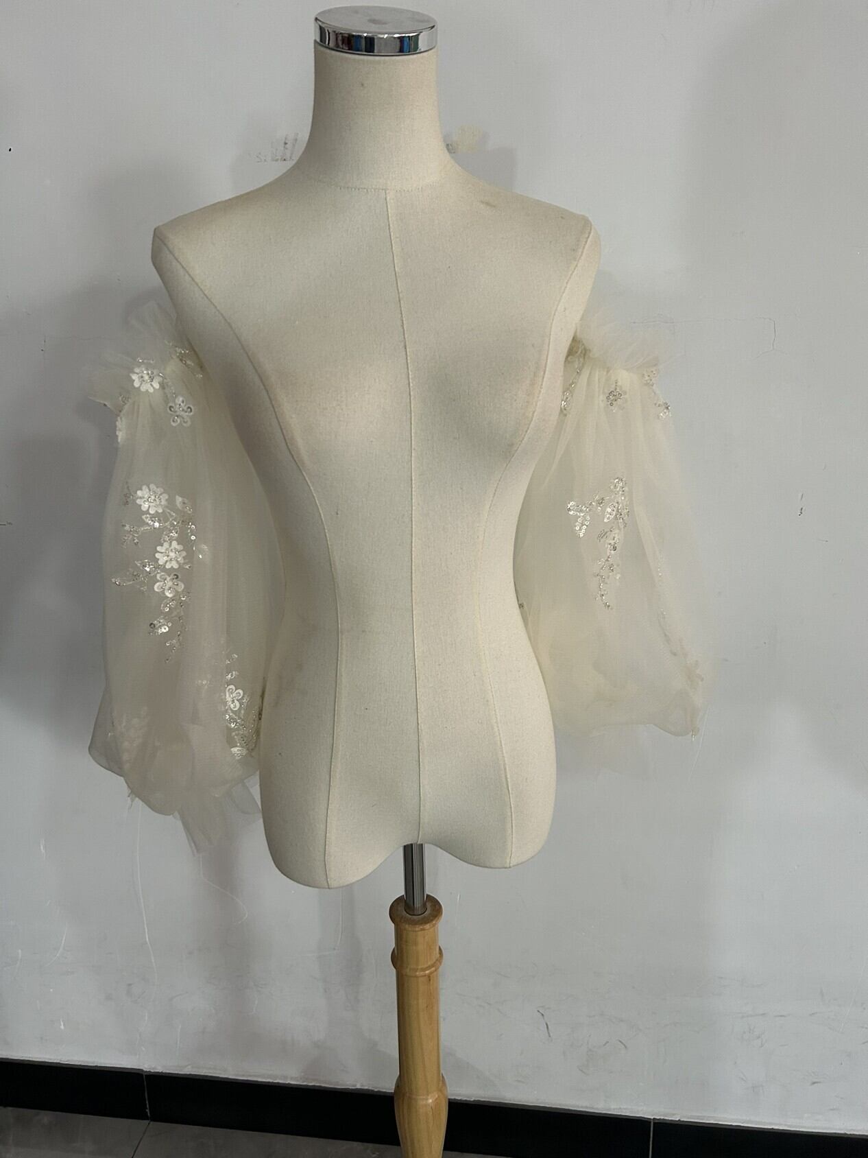 送料無料!高級 3D立体レース刺繍 キラキラスパンコール 取り外し袖 ショルダーの付け袖 キラキラチュール 二の腕を隠せるお袖