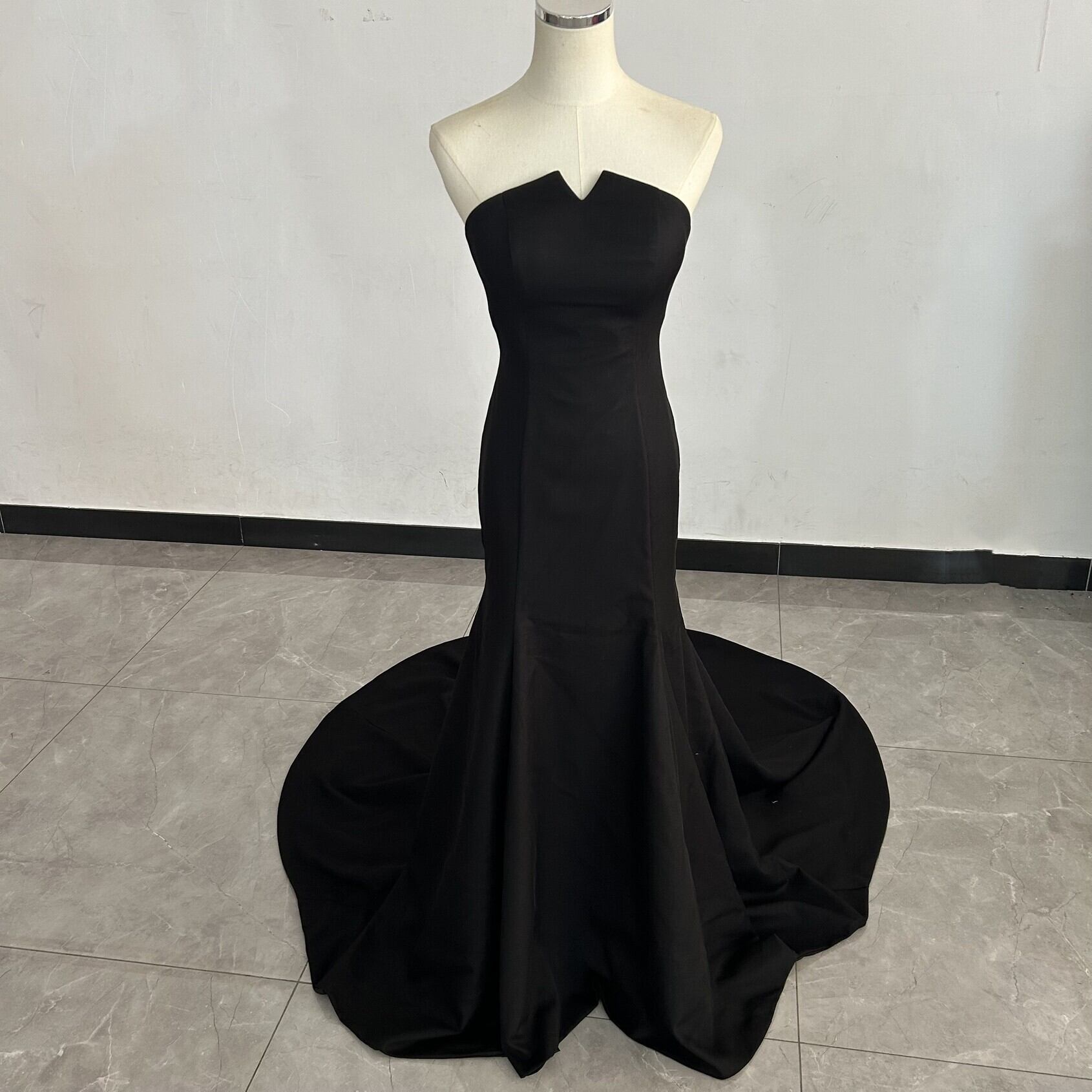 オードリー風!パーティードレス 黒 マーメイドライン シアーな美しさ ロングトレーン前撮り/花嫁/結婚式