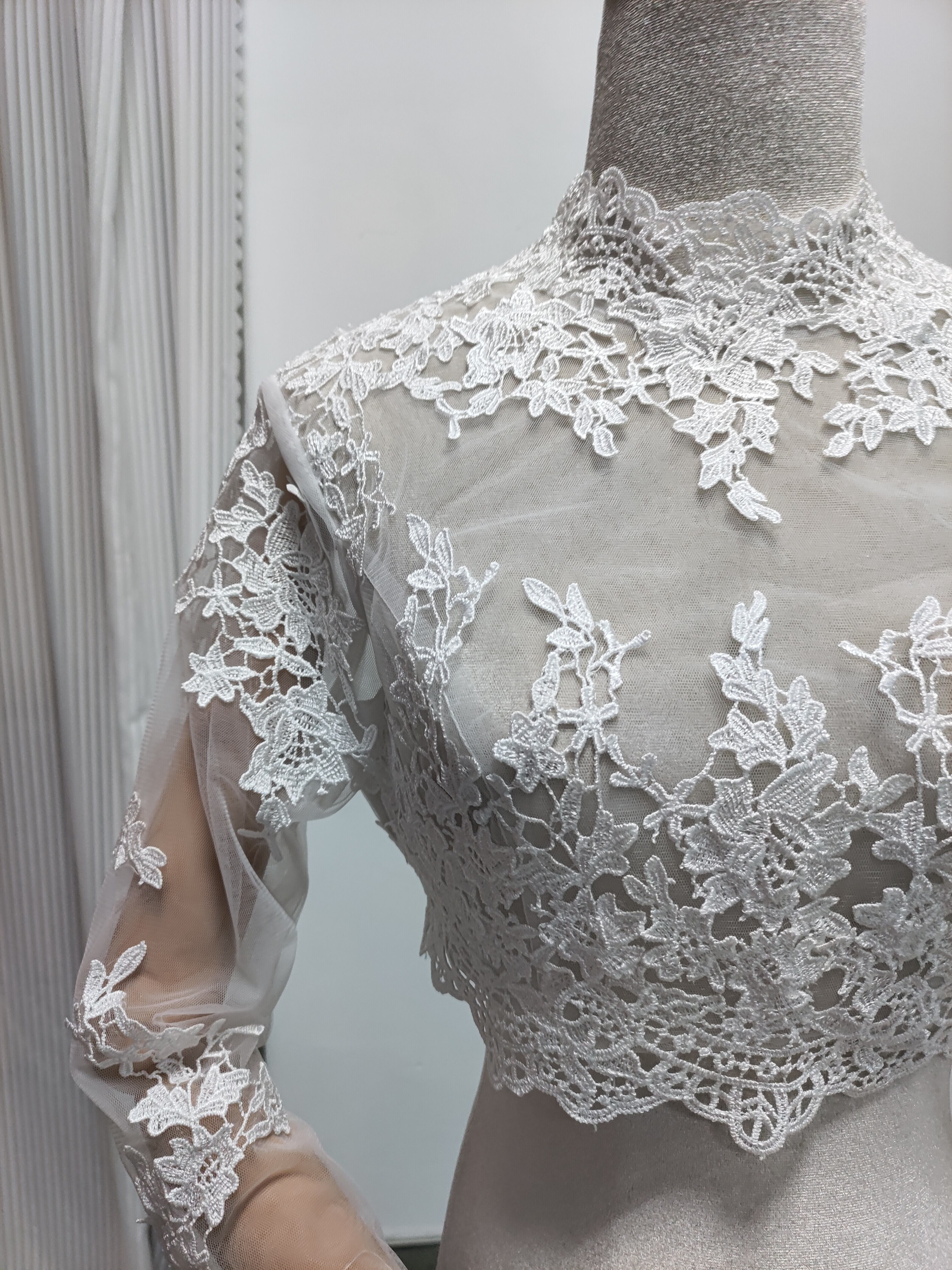 大人気上昇ウエディングドレス 可憐な花刺繍のトップス ボレロ ハイネック 長袖 ブラウス