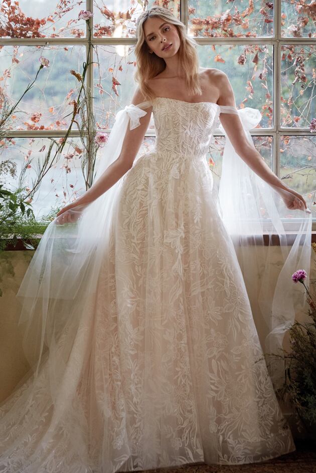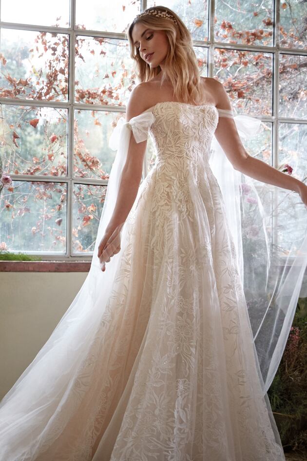 送料無料!ウエディングドレス オフショルダー ベアトップ 上品レース ソフトチュール エレガント 花柄のモチーフ刺繍が美しく トレーン オーダードレス ハンドメイド 花嫁 結婚式/前撮り/二次会 セレモニー イブニングドレス 合コン パーティドレス ミディアムドレス 演奏ドレス 誕生日プレゼント | David1021k Dress(ダヴィドレス)