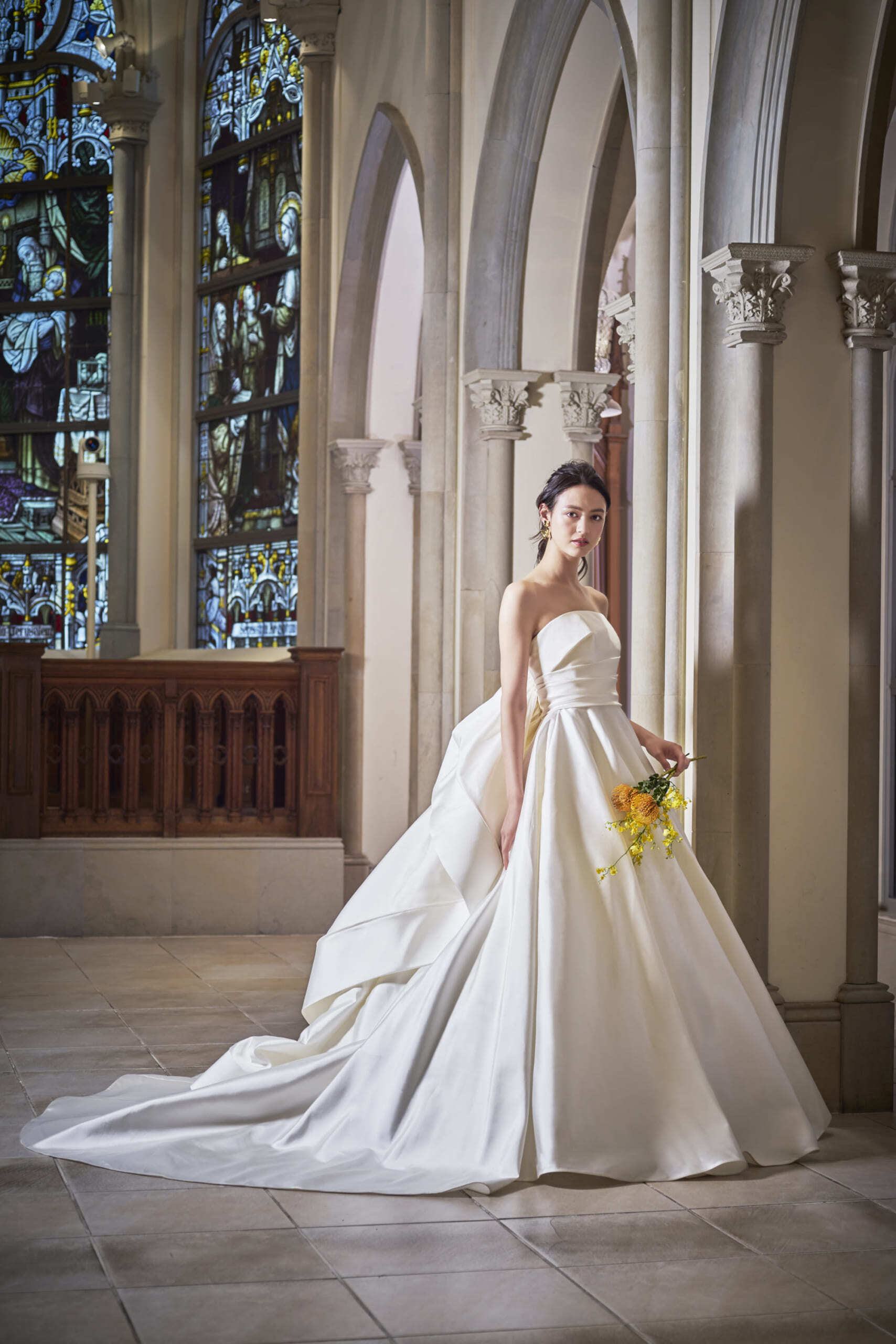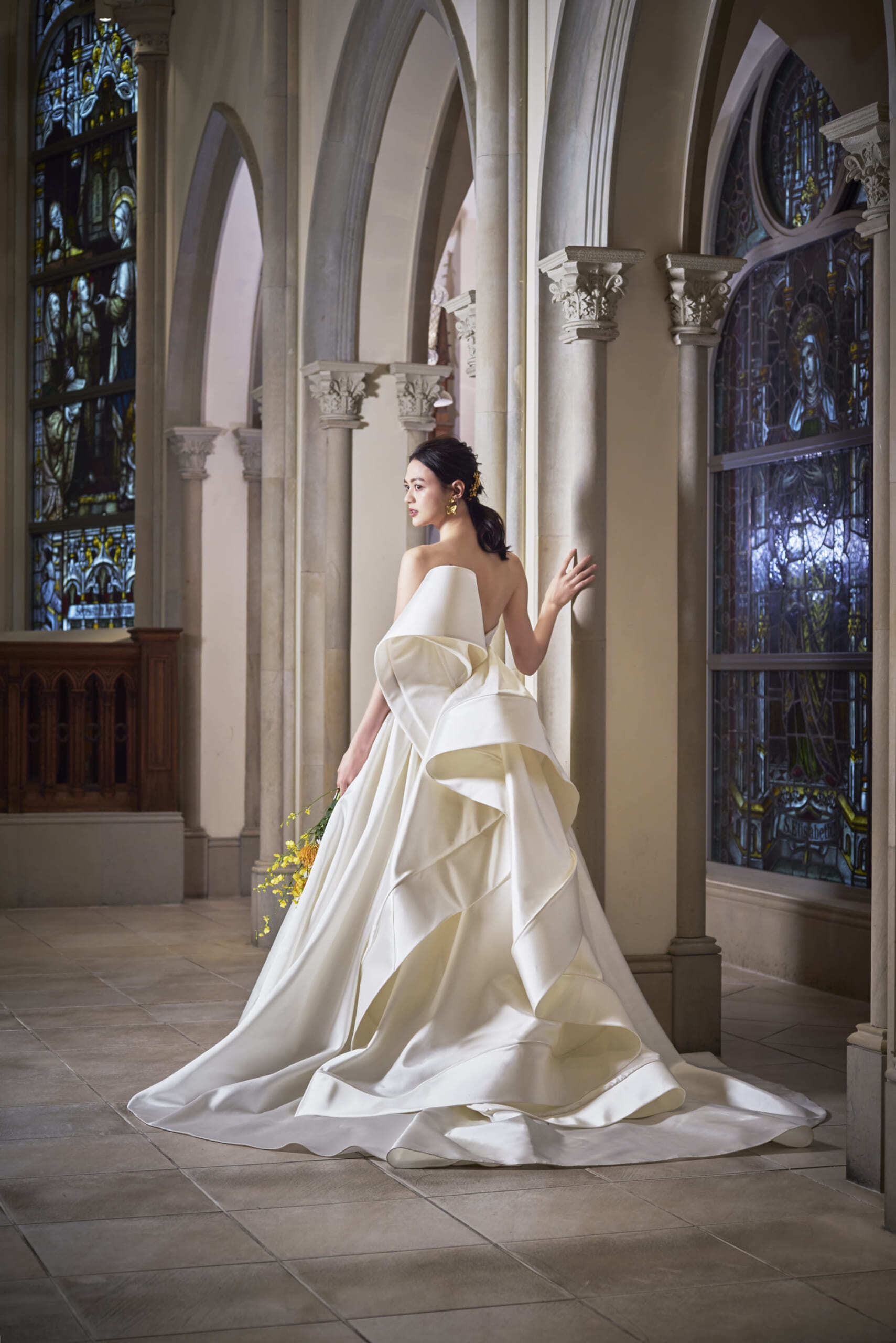 送料無料!ウエディングドレス ベアトップ ふっくら柔らかなバックリボン 高級サテン 華やかなトレーン オーダードレス ハンドメイド 花嫁 結婚式/前撮り/二次会 セレモニー イブニングドレス 合コン パーティドレス ミディアムドレス | David1021k Dress(ダヴィドレス)
