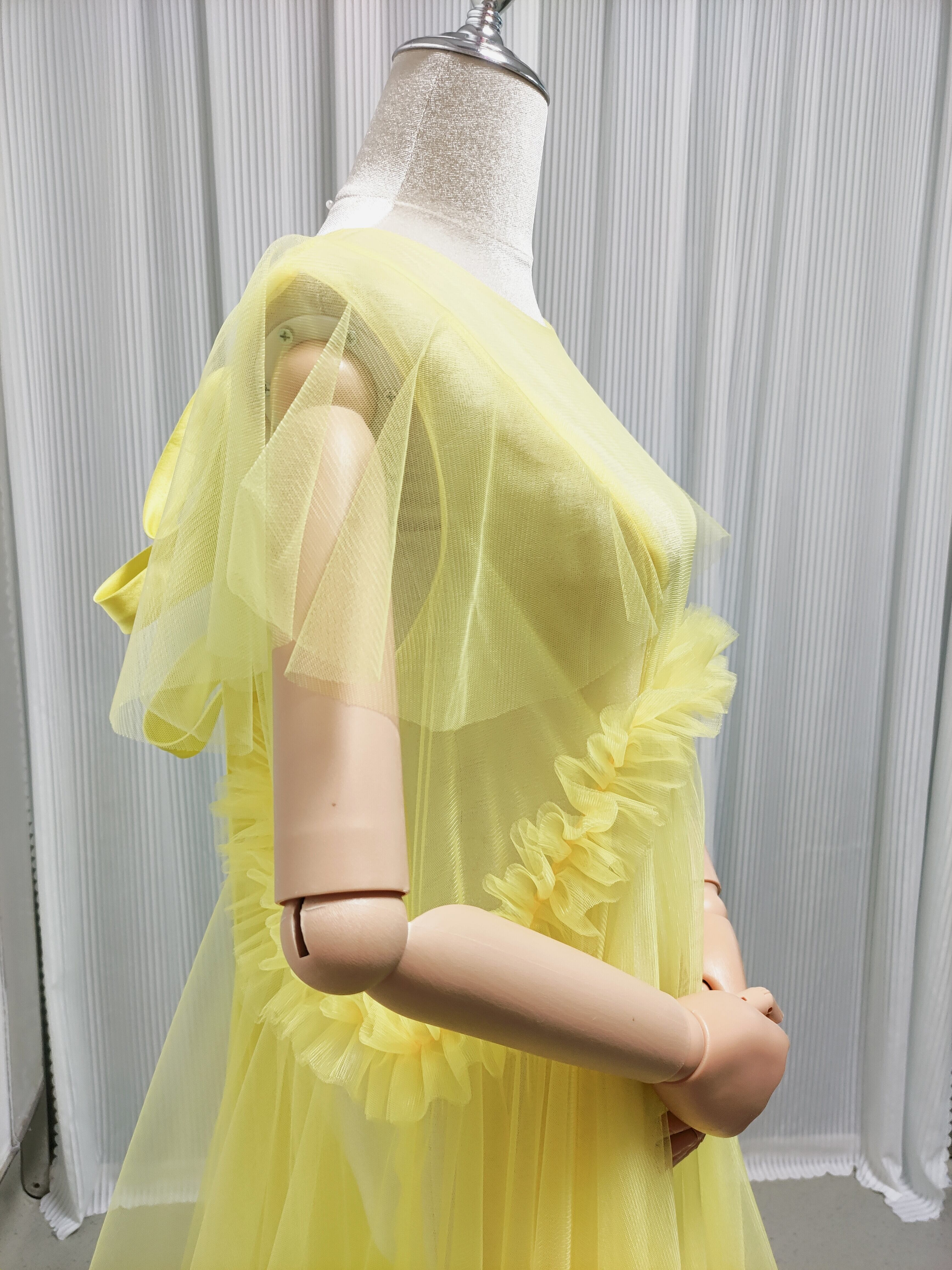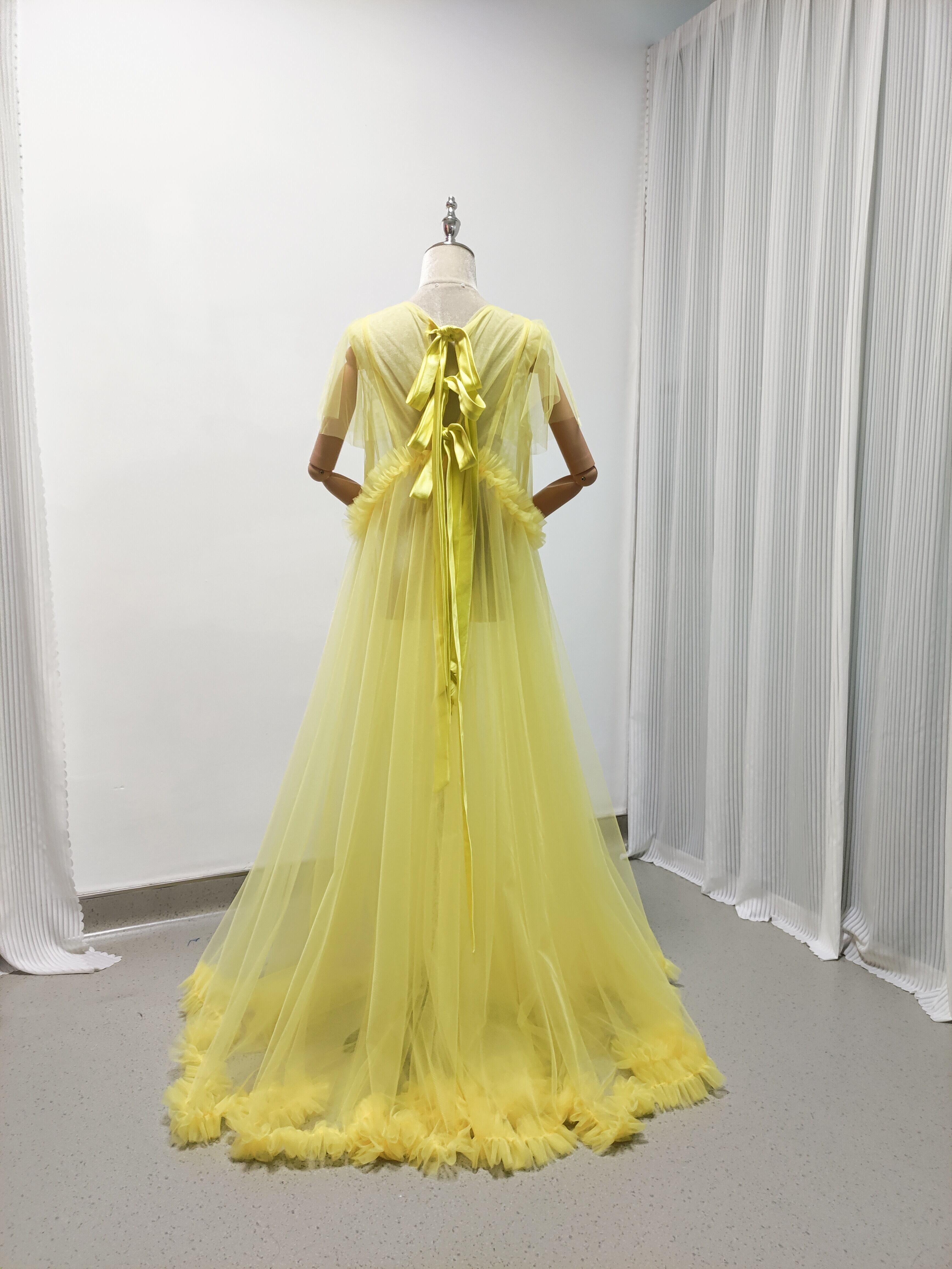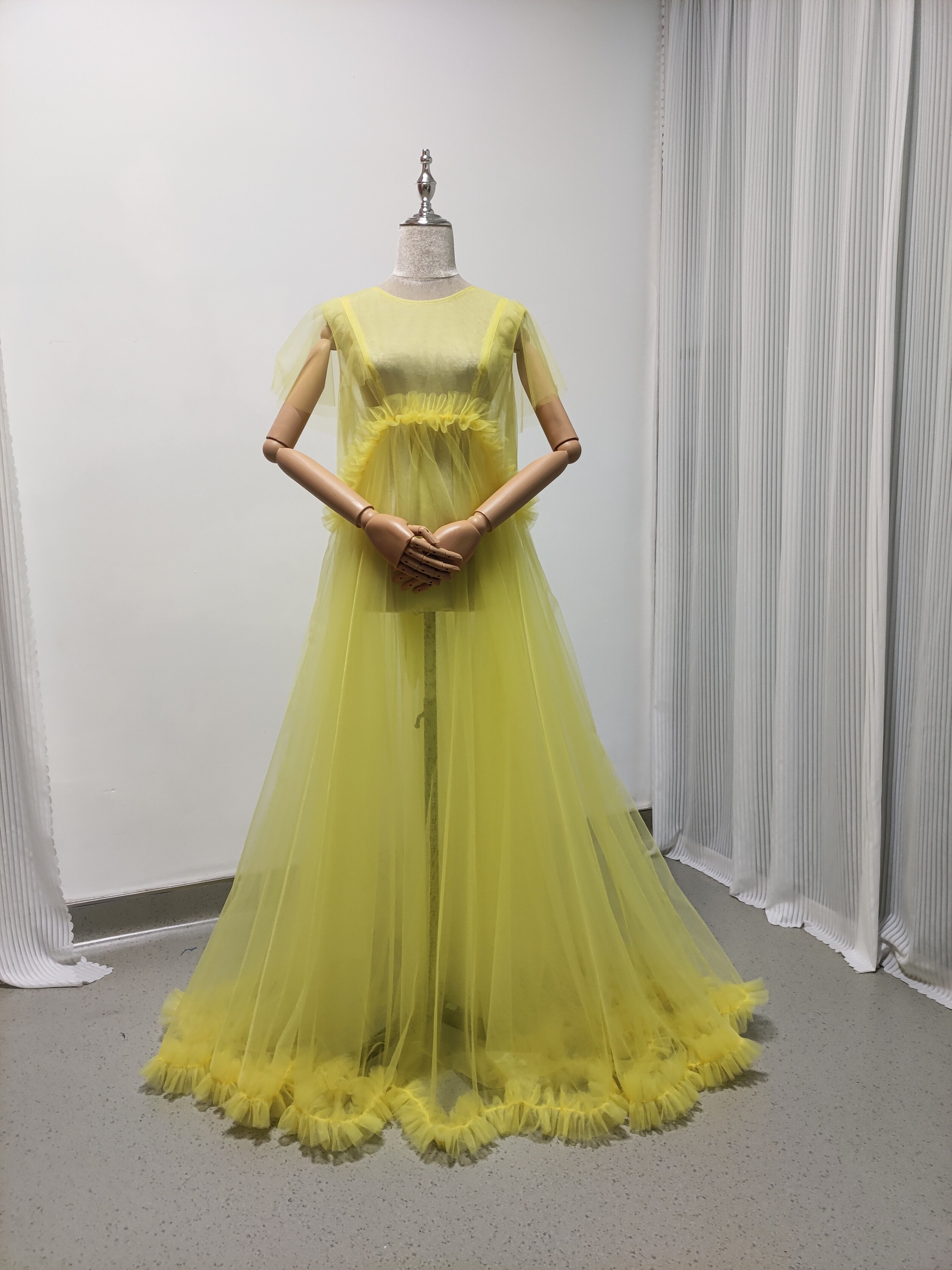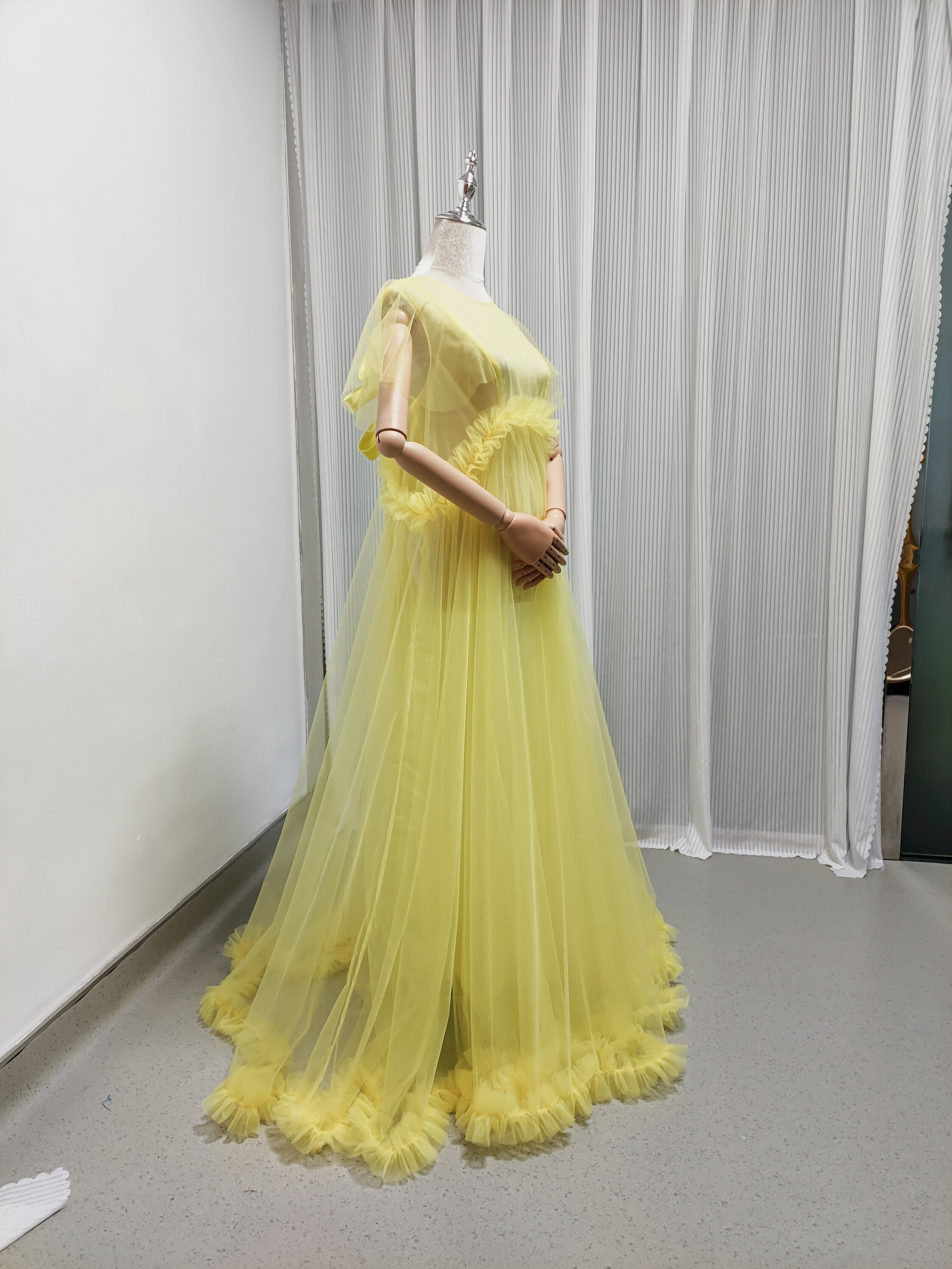 高品質! パステルイエロー 妊婦ドレス マタニティ 写真撮影 シースルー ワンピース ソフトチュール オーダーメイド
