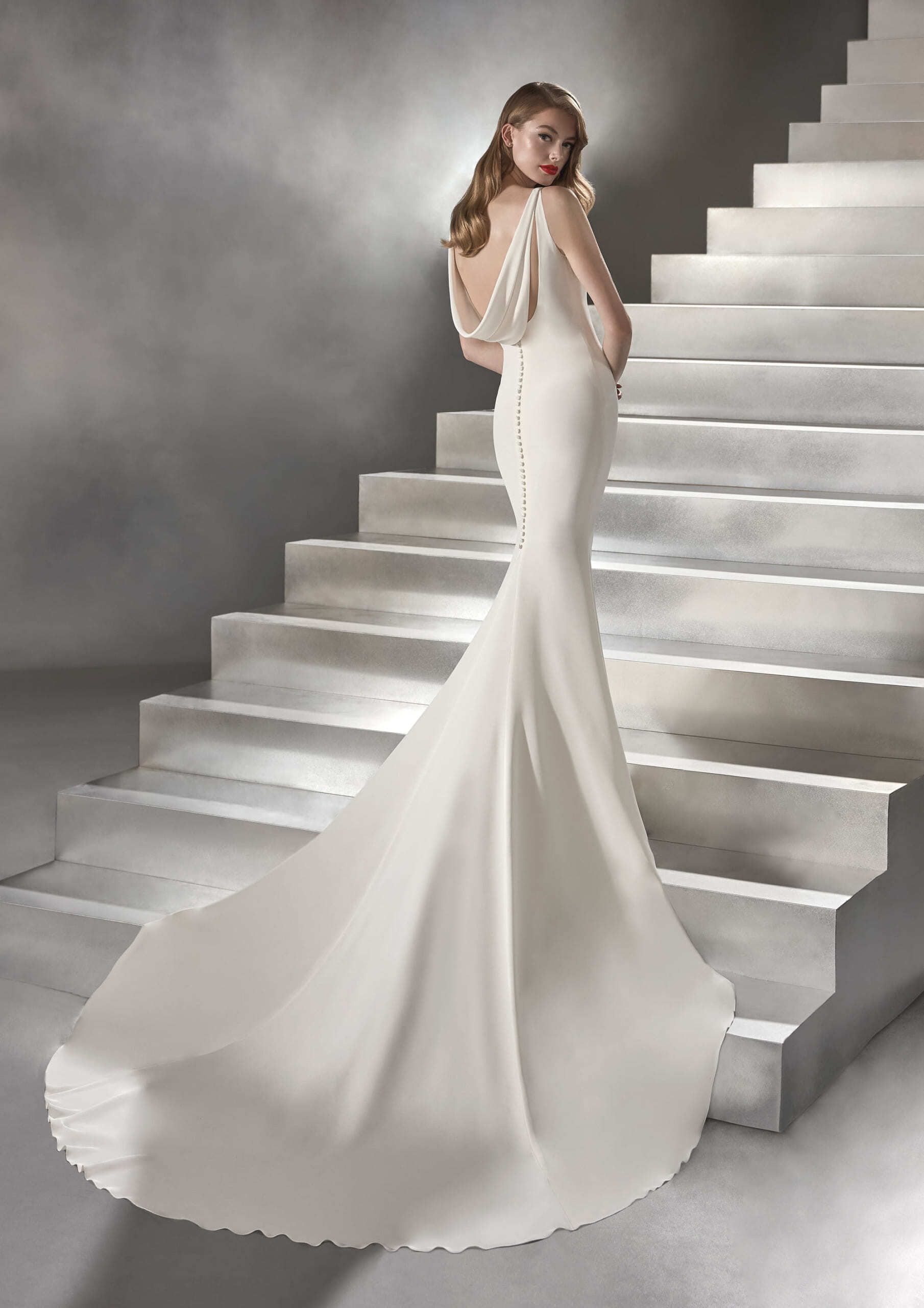 送料無料!ウエディングドレス マーメイドライン キャミソール 背中見せ/バックレス Vネック かわいい トレーン エレガント 優雅 シンプルなデザイン オーダードレス ハンドメイド 花嫁 結婚式/前撮り/二次会 セレモニー イブニングドレス 合コン パーティドレス ミディアムドレス | David1021k Dress(ダヴィドレス)
