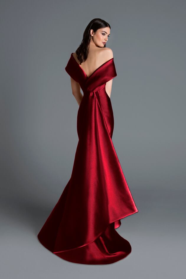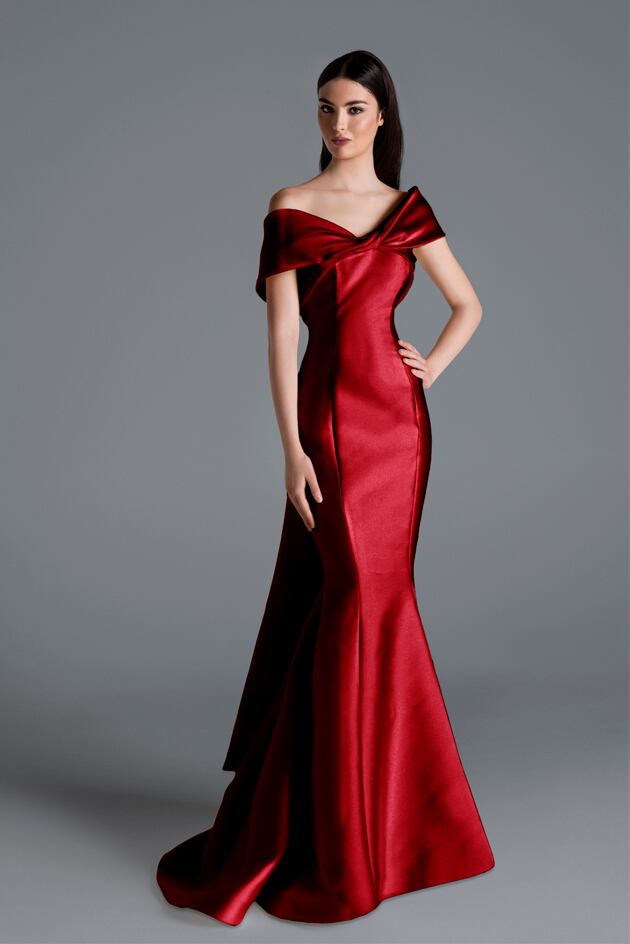送料無料!カラードレス マーメイドライン 赤/レッド オフショルダー 高級サテン バックリボン セクシー かわいい トレーン エレガント 優雅 シンプルなデザイン オーダードレス ハンドメイド 花嫁 結婚式/前撮り/二次会 セレモニー イブニングドレス 合コン パーティドレス ミディアムドレス | David1021k Dress(ダヴィドレス)
