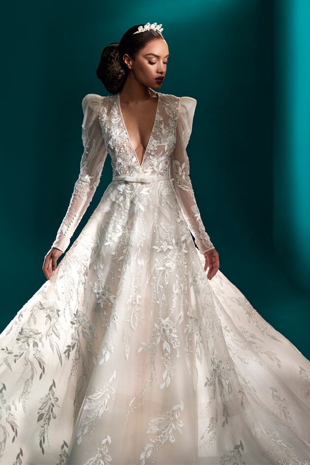 送料無料!ウエディングドレス 総レース 長袖 Aライン 上品レース Vネック 花柄のモチーフ刺繍が美しく かわいい 華やかなトレーン ソフトチュール エレガント 優雅 オーダードレス ハンドメイド 花嫁 結婚式/前撮り/二次会 セレモニー イブニングドレス 合コン パーティドレス ミディアムドレス | David1021k Dress(ダヴィドレス)