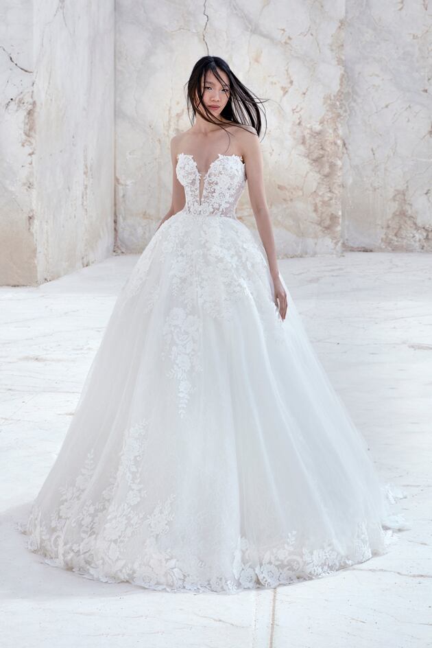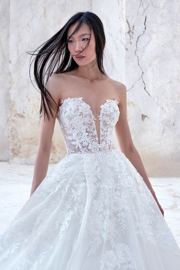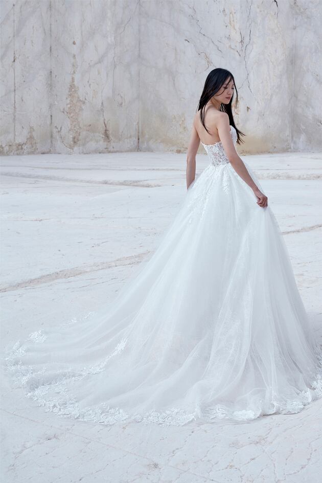 送料無料!ウエディングドレス 上品レース ベアトップ Vネック ビスチェドレス 花柄のモチーフ刺繍が美しく かわいい 華やかなトレーン プリンセスライン オーダードレス ハンドメイド ソフトチュール エレガント 優雅 花嫁 結婚式/前撮り/二次会 セレモニー イブニングドレス 合コン パーティドレス ミディアムドレス | David1021k Dress(ダヴィドレス)