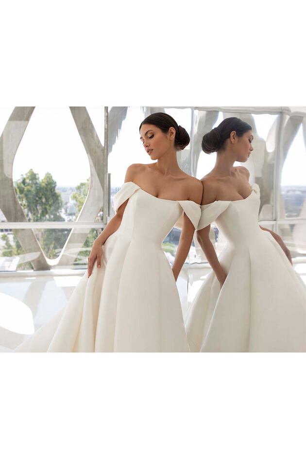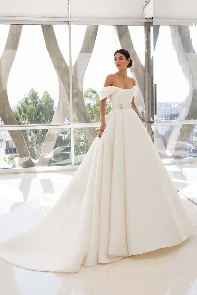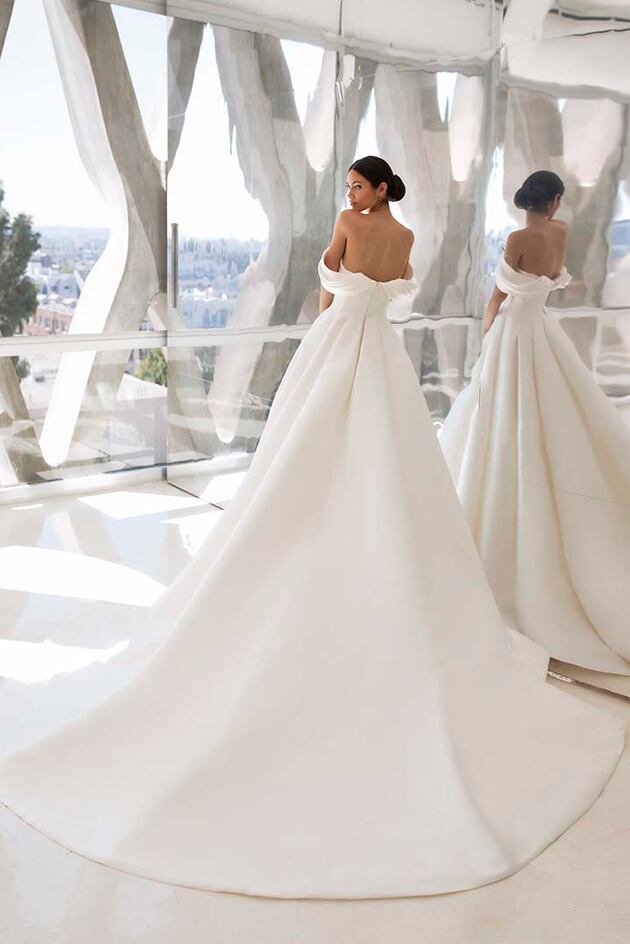 送料無料!ウエディングドレス オフショルダー ベアトップ かわいい トレーン エレガント 優雅 シンプルなデザイン オーダードレス ハンドメイド 花嫁 結婚式/前撮り/二次会 セレモニー イブニングドレス 合コン パーティドレス ミディアムドレス | David1021k Dress(ダヴィドレス)