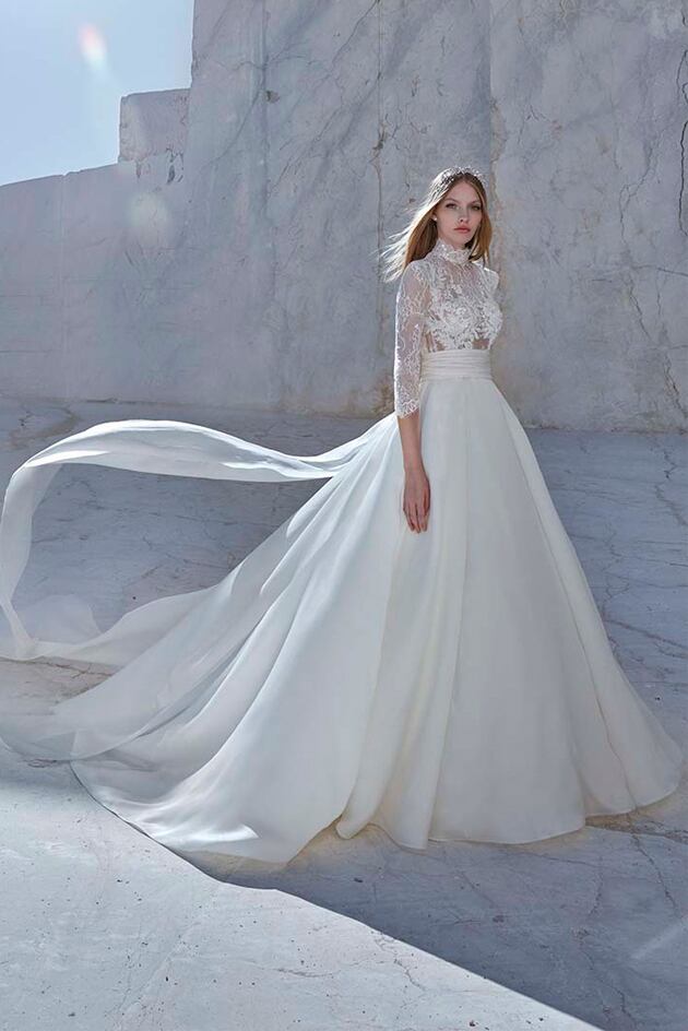 送料無料!ウエディングドレス 上品レース ハイネック かわいい バックリボン 華やかなトレーン プリンセスライン オーダードレス ハンドメイド ソフトチュール エレガント 優雅 花嫁 結婚式/前撮り/二次会 セレモニー イブニングドレス 合コン パーティドレス ミディアムドレス | David1021k Dress(ダヴィドレス)
