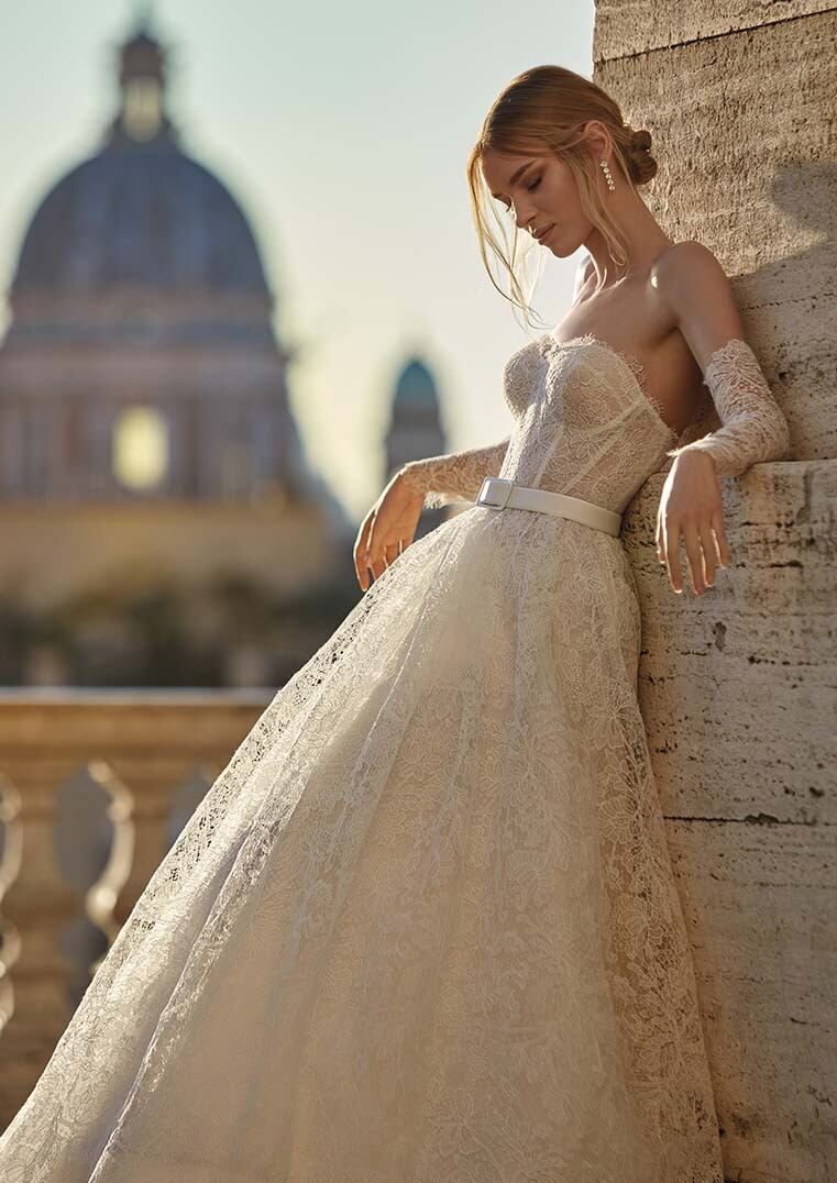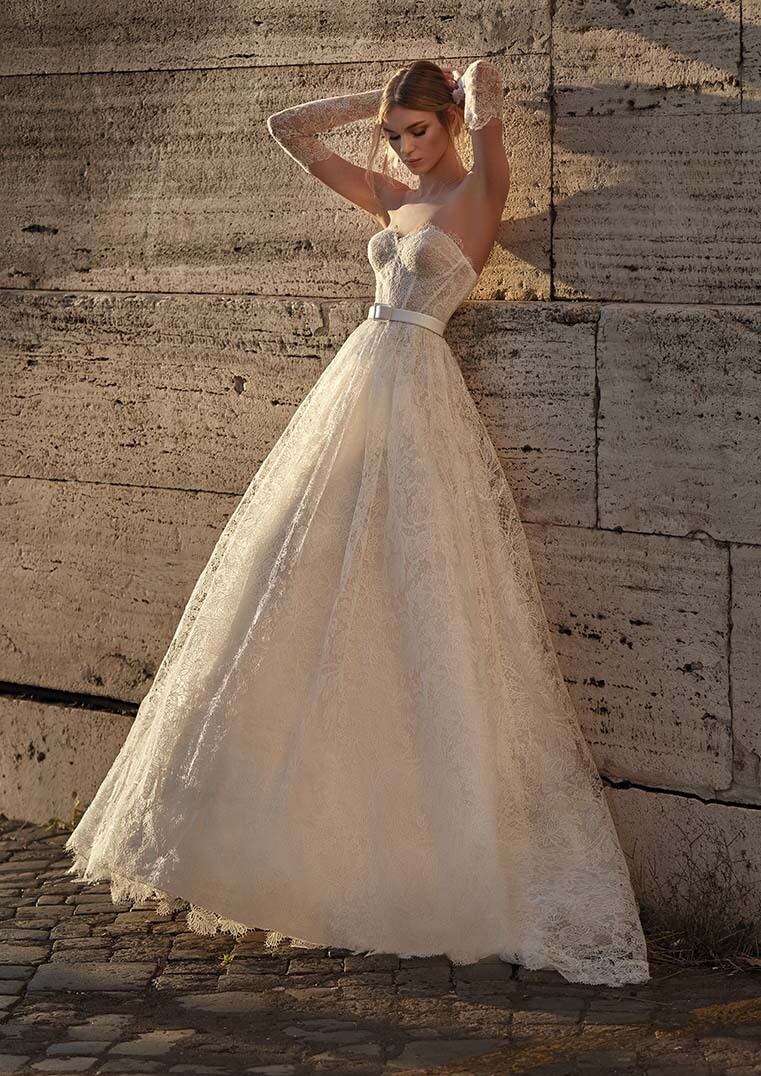 送料無料!ウエディングドレス 総レース 上品レース ハートカット ベアトップ ビスチェドレス グローブ かわいい 華やかなトレーン プリンセスライン オーダードレス ハンドメイド ソフトチュール エレガント 優雅 花嫁 結婚式/前撮り/二次会 セレモニー イブニングドレス 合コン パーティドレス ミディアムドレス | David1021k Dress(ダヴィドレス)