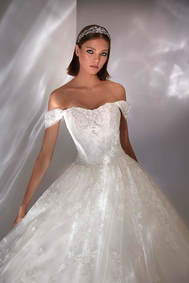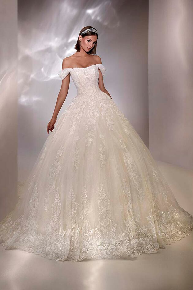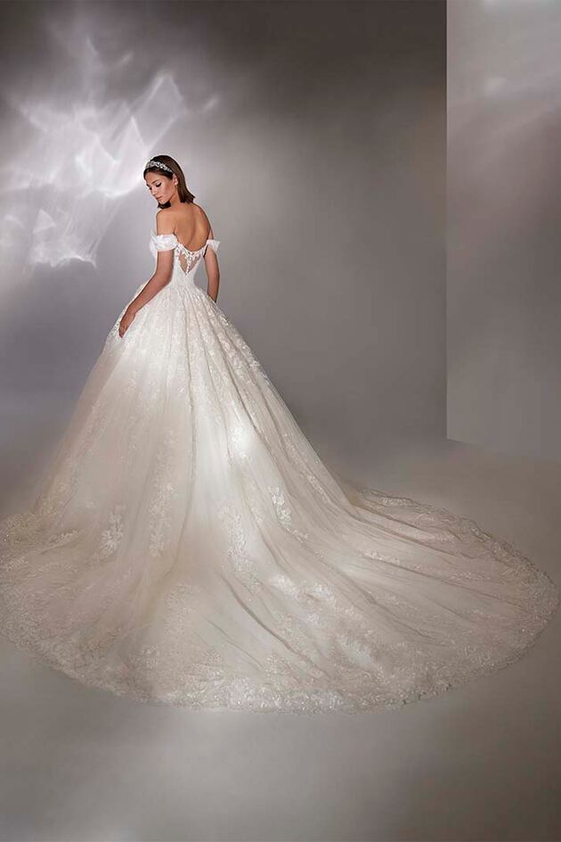 送料無料!ウエディングドレス オフショルダー 上品レース かわいい 華やかなトレーン プリンセスライン オーダードレス ハンドメイド エレガント 優雅 花嫁 結婚式/前撮り/二次会 セレモニー イブニングドレス 合コン パーティドレス ミディアムドレス | David1021k Dress(ダヴィドレス)