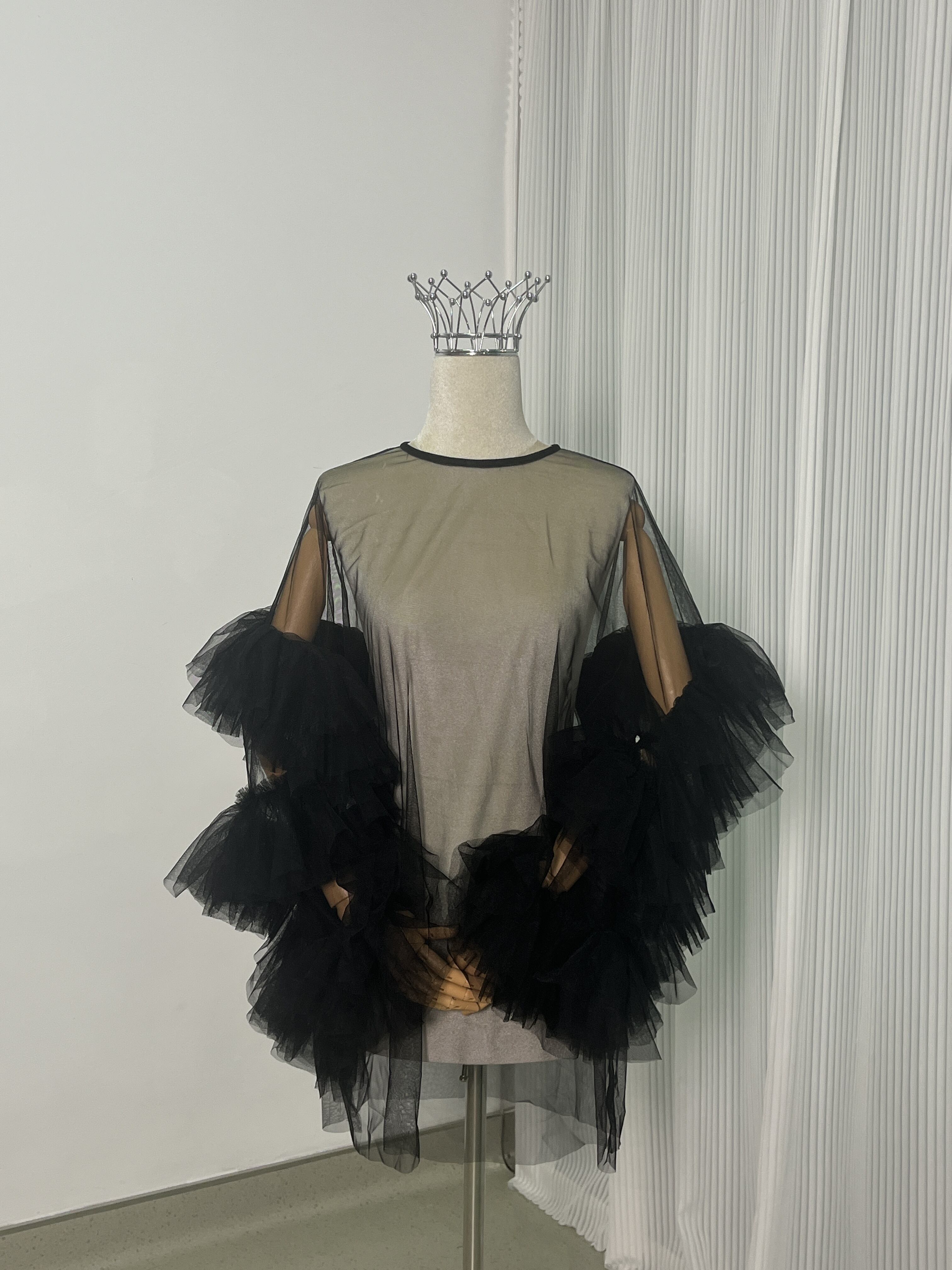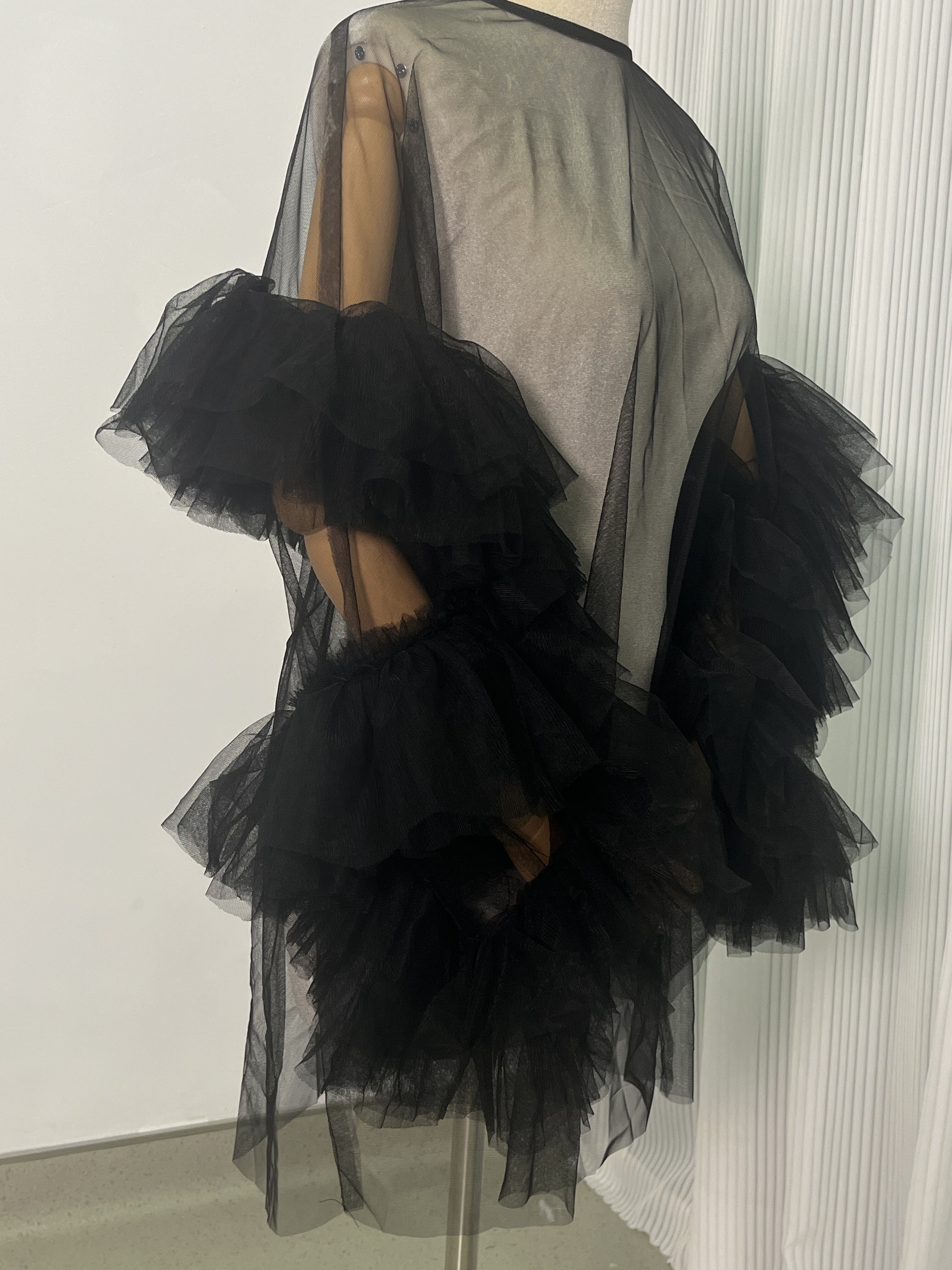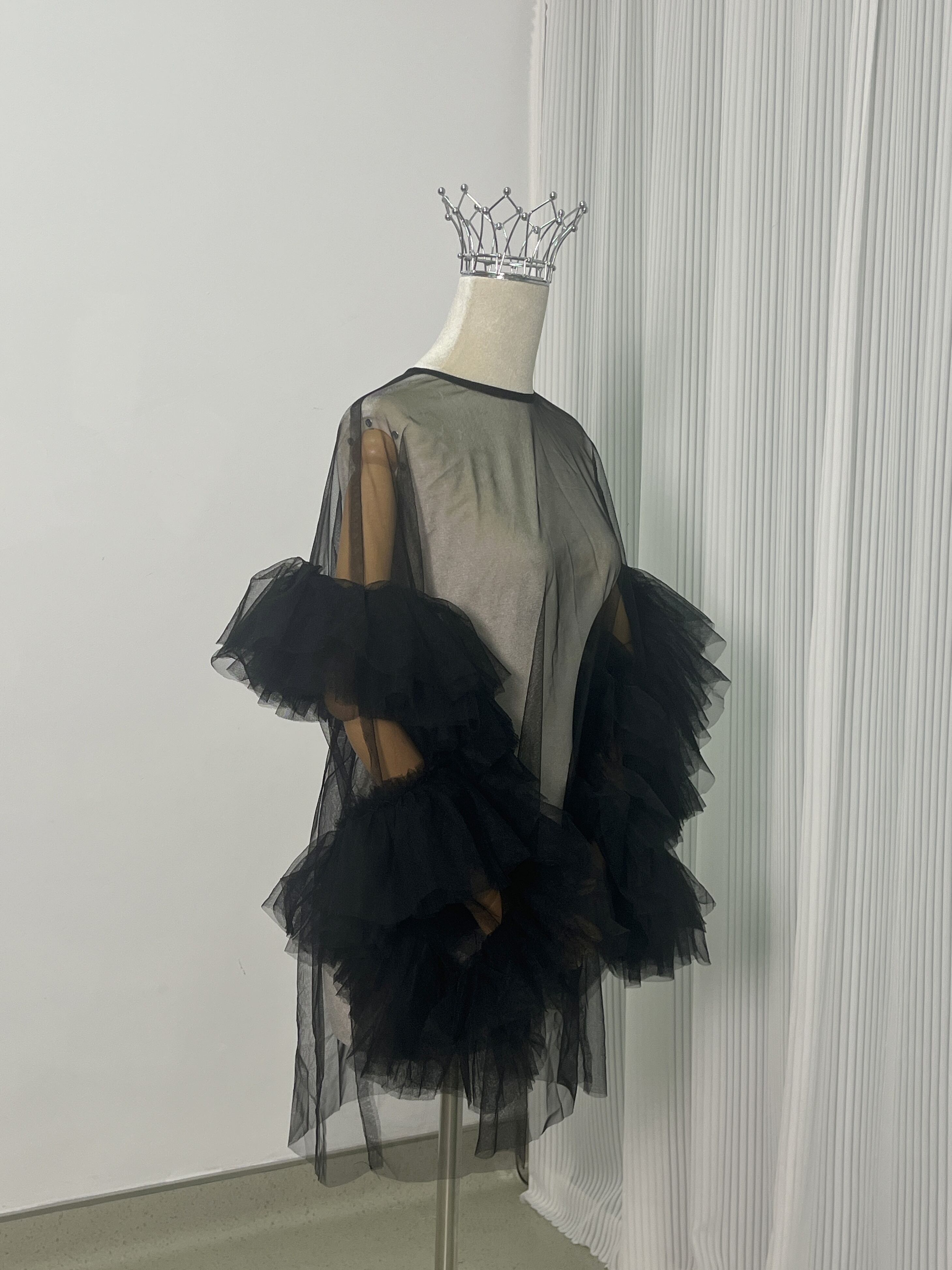 送料無料!黒 抜群のおしゃれ見えカーディガン(ボレロ) ソフトチュール ラッフルスリーブ 長袖 演奏会/音楽会