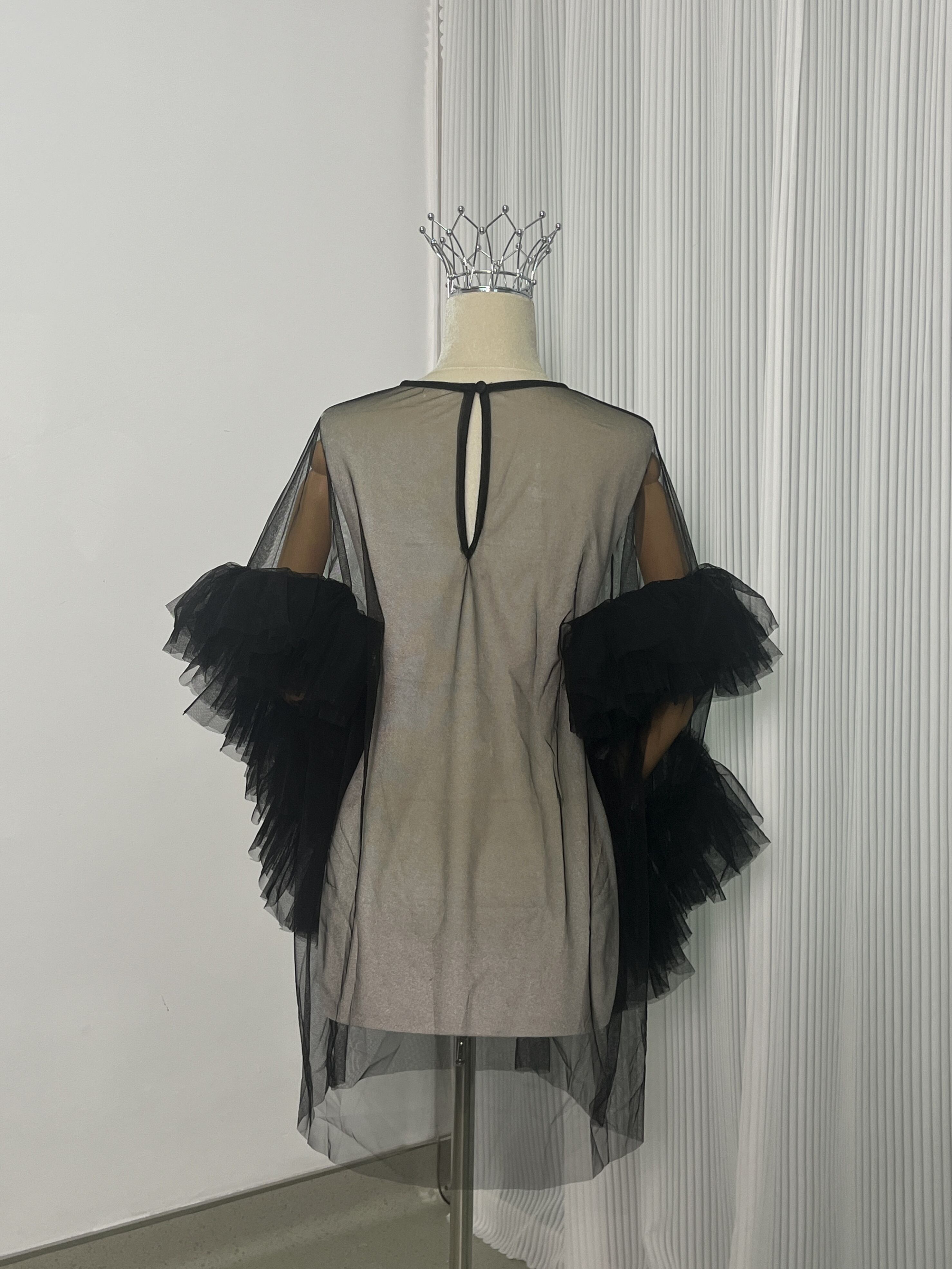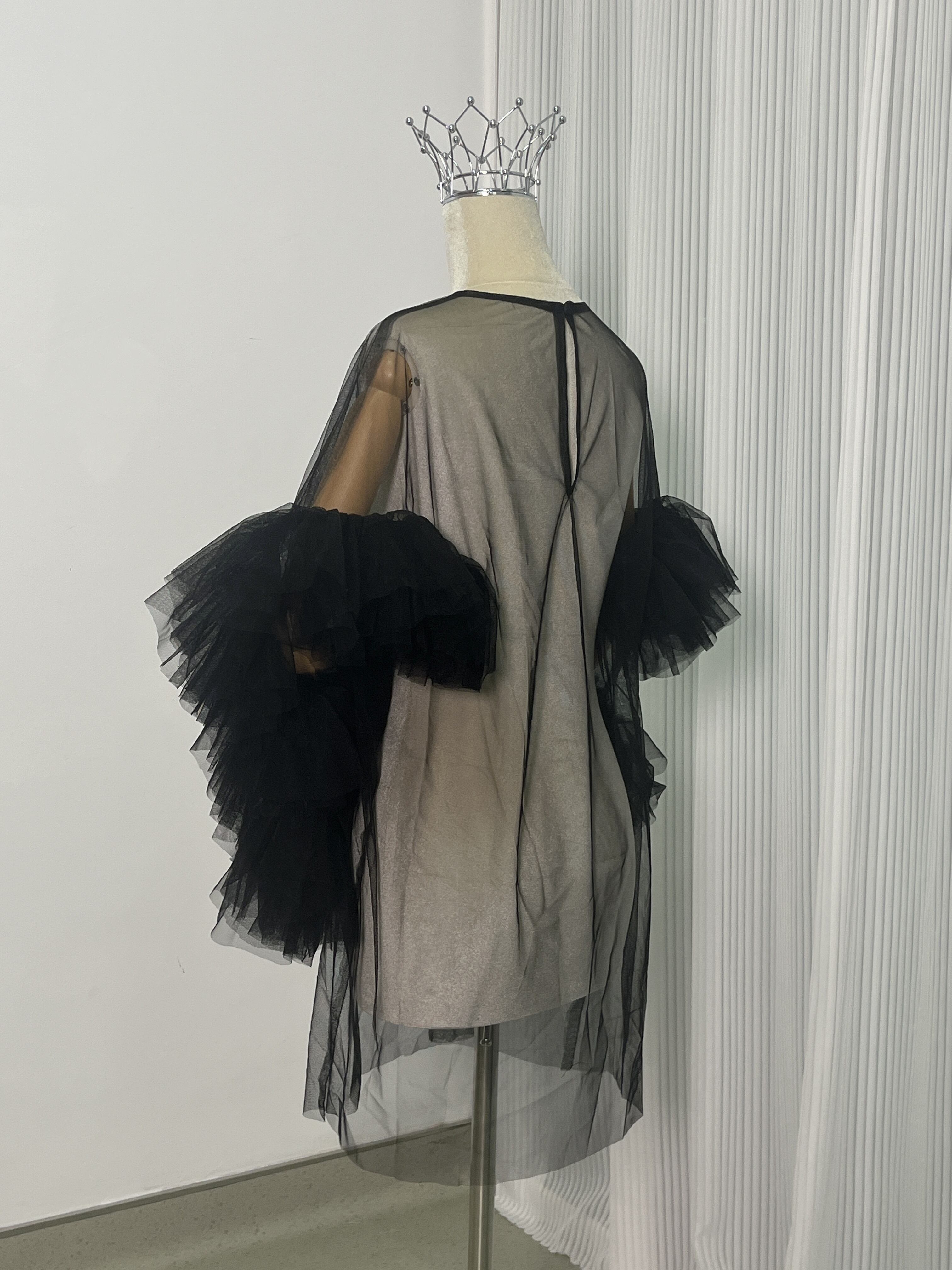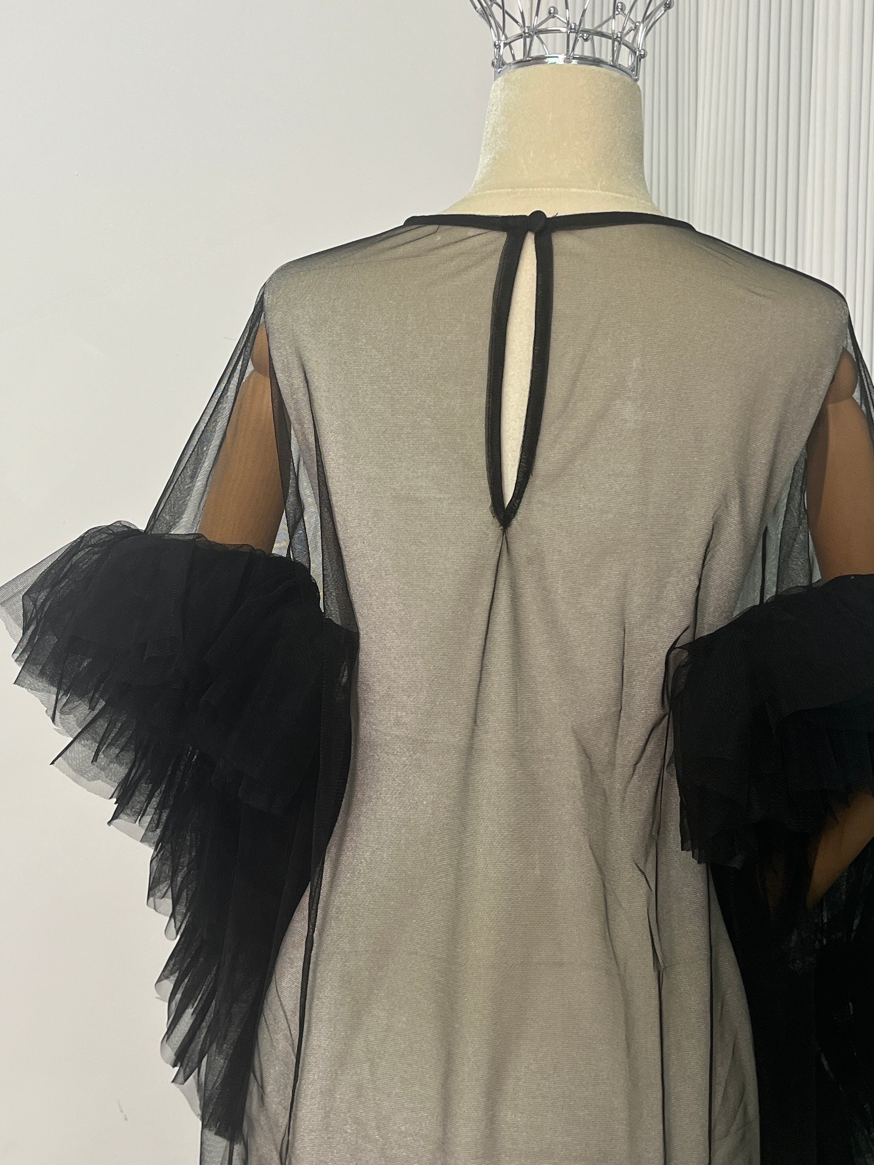 送料無料!黒 抜群のおしゃれ見えカーディガン(ボレロ) ソフトチュール ラッフルスリーブ 長袖 演奏会/音楽会