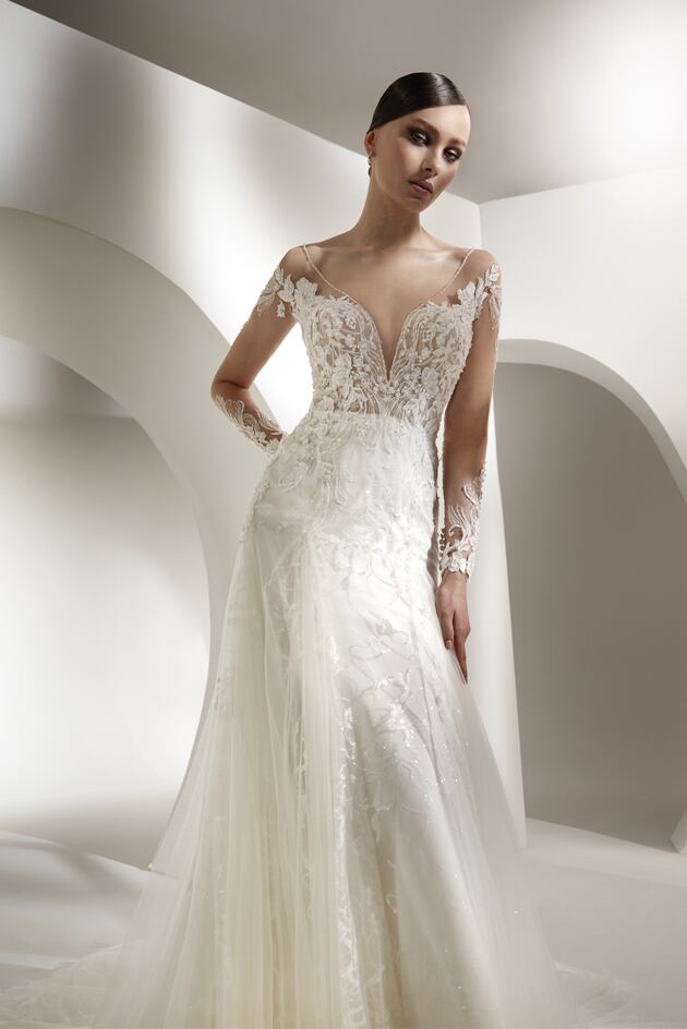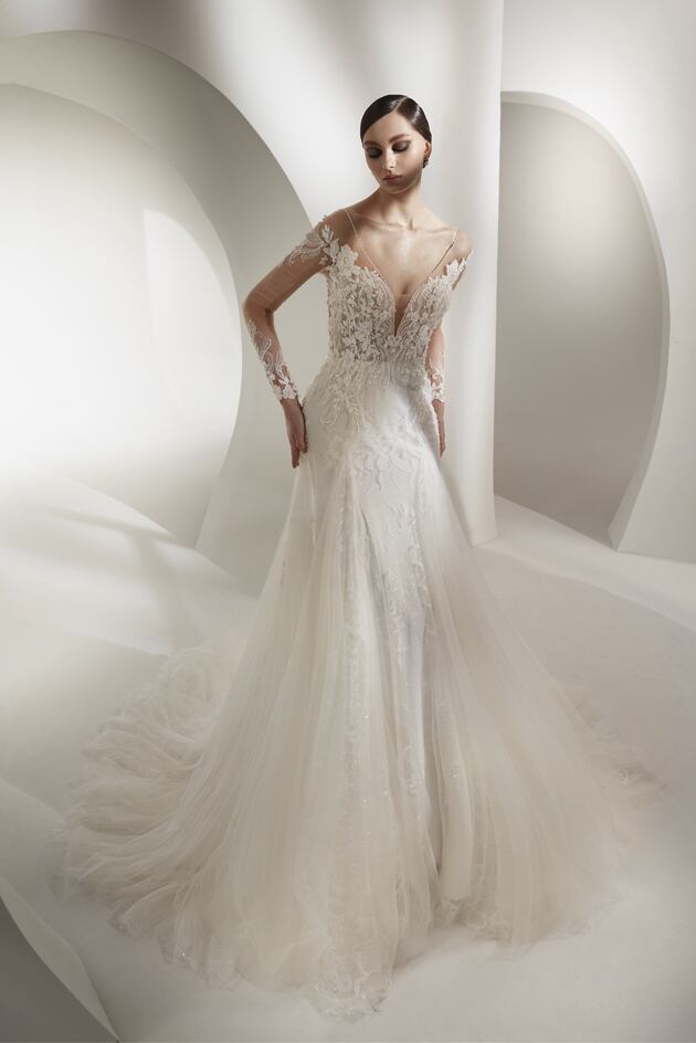 送料無料!ウエディングドレス 長袖 マーメイドライン かわいい 背中見せ/バックレス シースルー トレーン 花柄のモチーフ刺繍が美しく 贅沢な小花総レース 上品レース オーダードレス ソフトチュール ハートカット セクシー ハンドメイド エレガント 優雅なシルエット 花嫁 結婚式/前撮り/二次会 セレモニー イブニングドレス パーティードレス 合コン ミディアムドレス | David1021k Dress(ダヴィドレス)