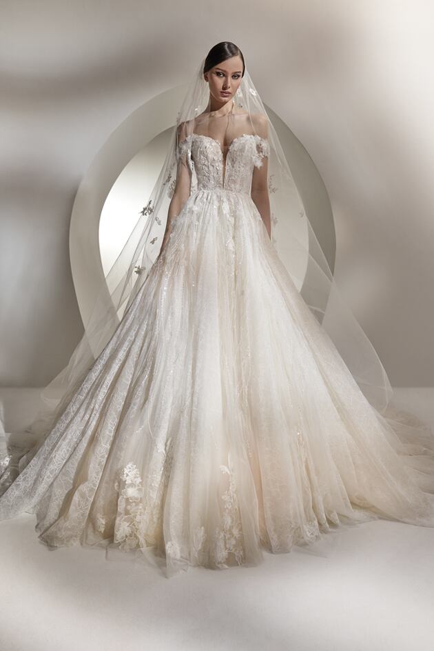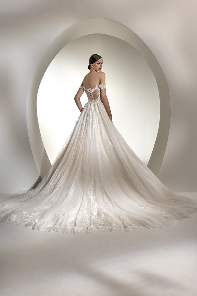 送料無料!ウエディングドレス オフショルダー 上品レース Aラインドレス かわいい ロングトレーン オーダードレス ハンドメイド エレガント 優雅なシルエット 花嫁 結婚式/前撮り/二次会 | David1021k Dress(ダヴィドレス)