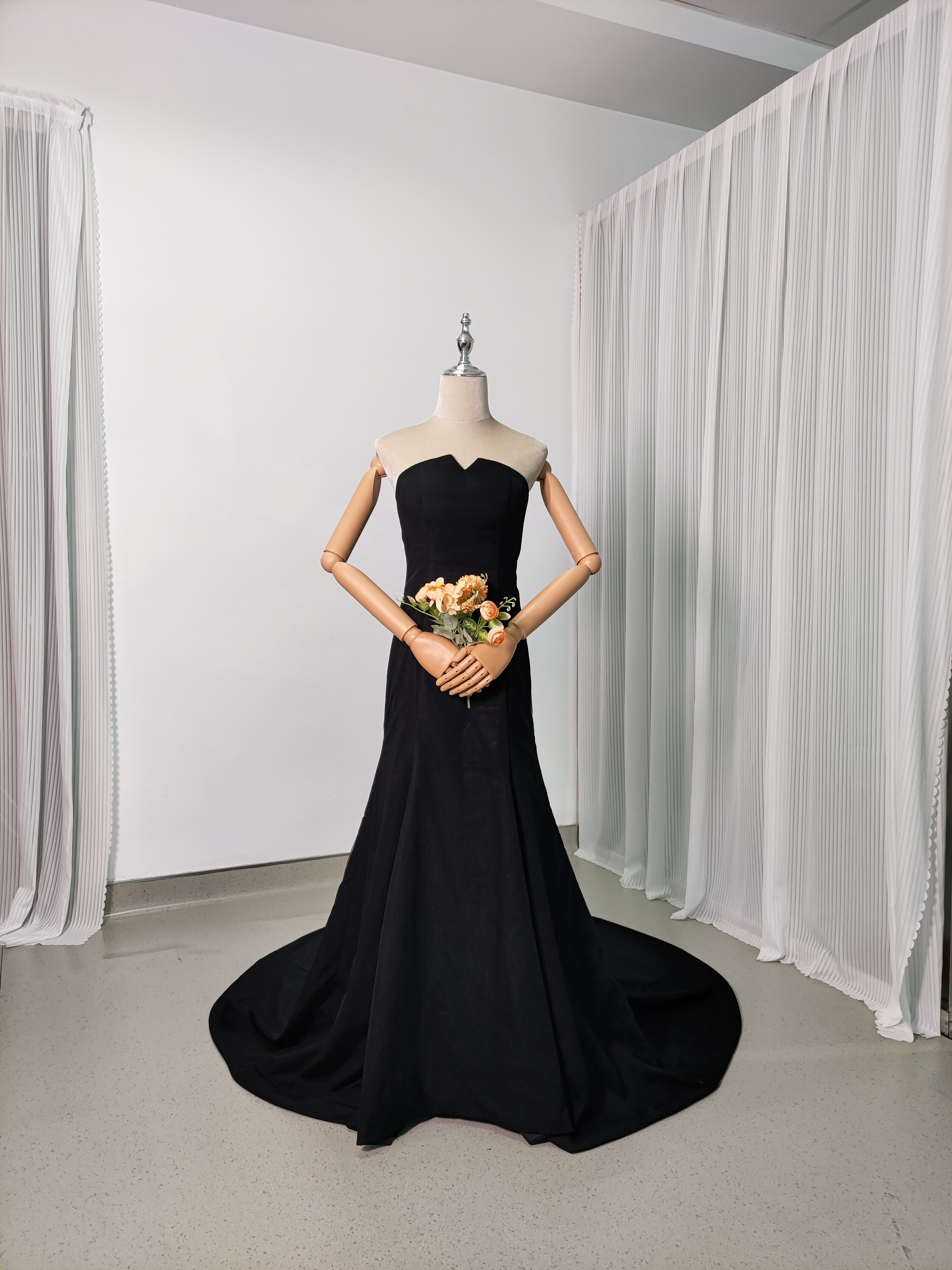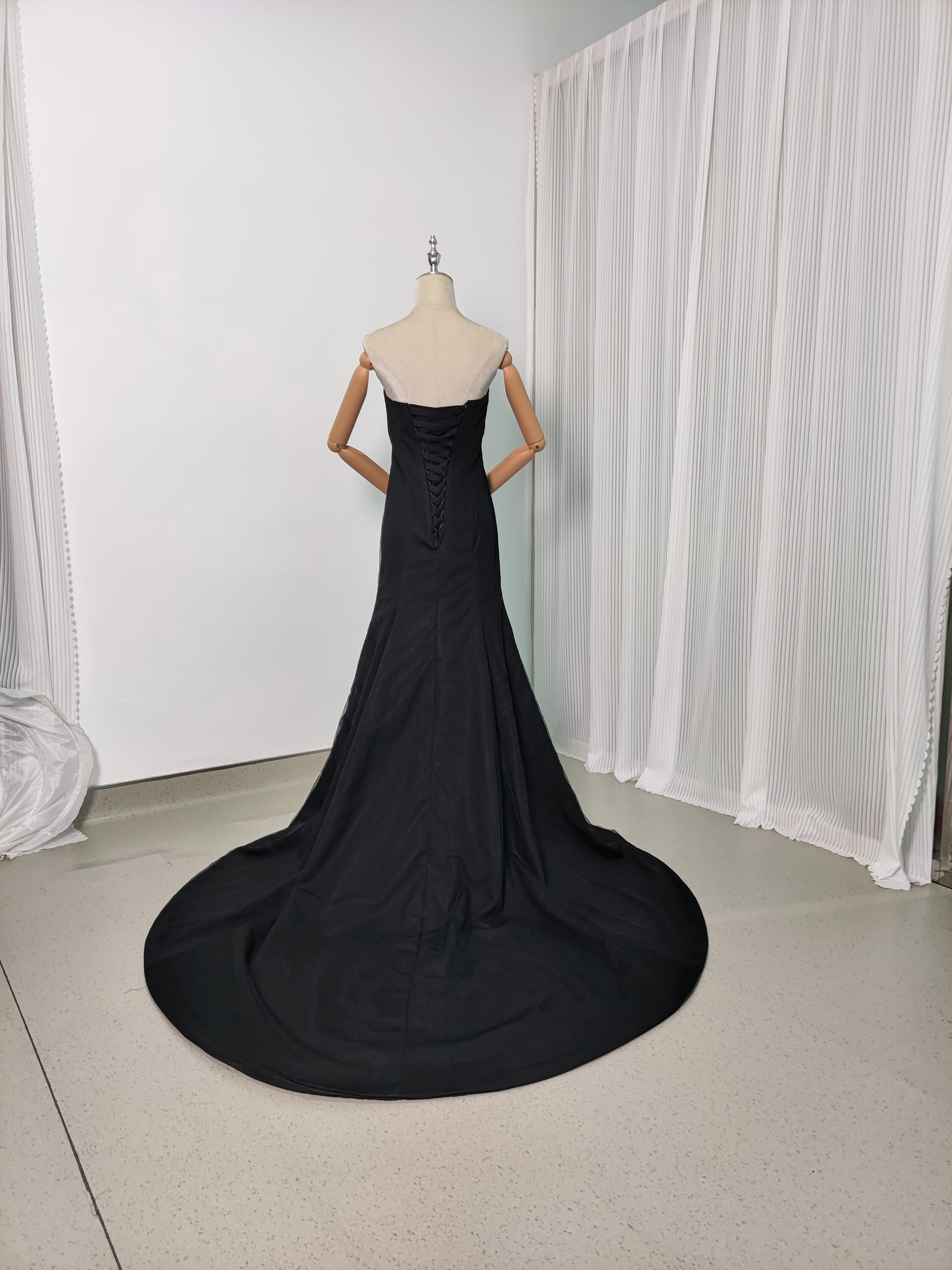 高品質!黒 パーティードレス 前撮り結婚式 2次会 カラードレス ソフトマーメイドライン