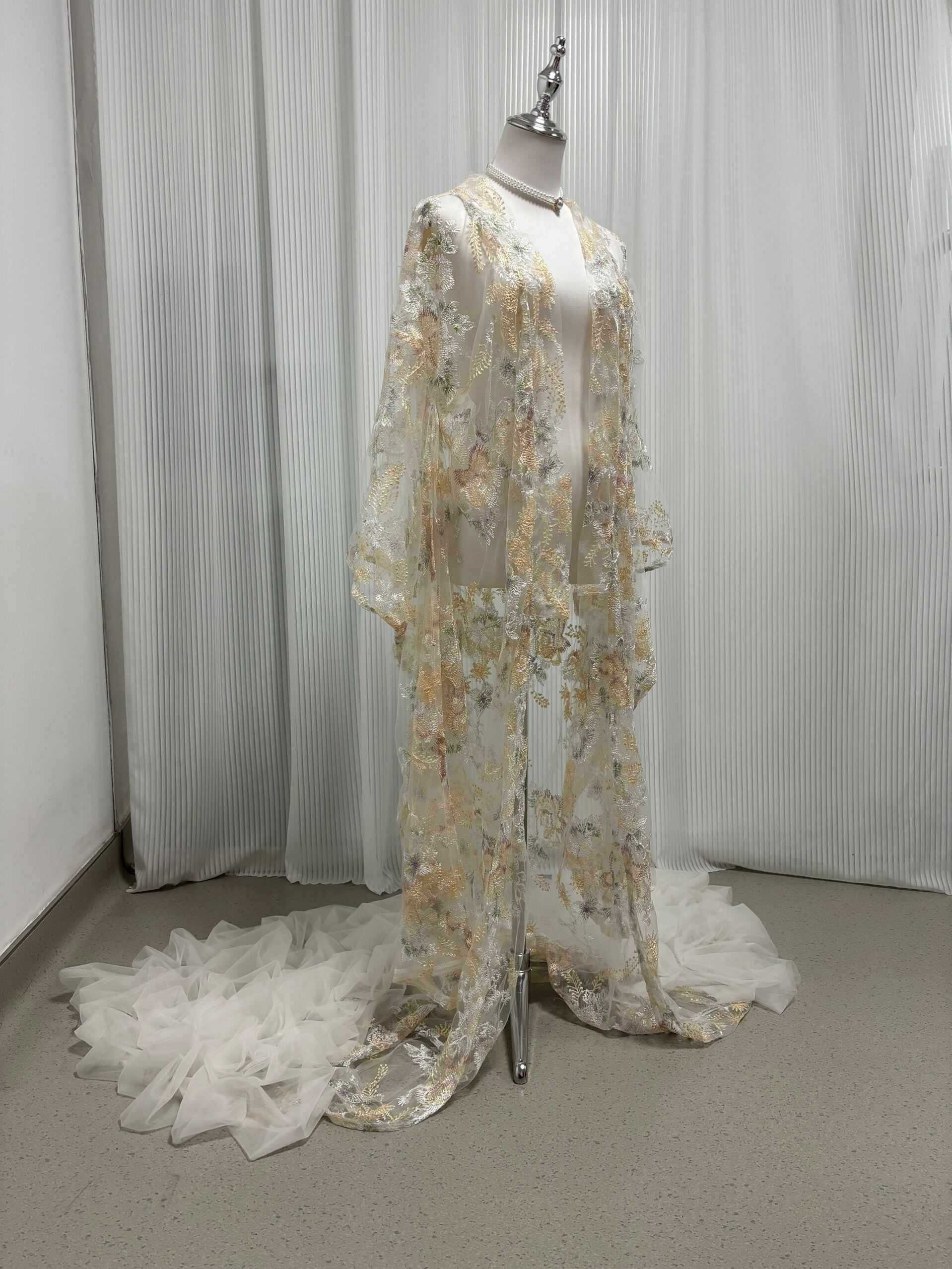 送料無料 !上品! 豪華!/刺繍打掛 カラードレス 花モチーフ 華やかなトレーン 結婚式/披露宴