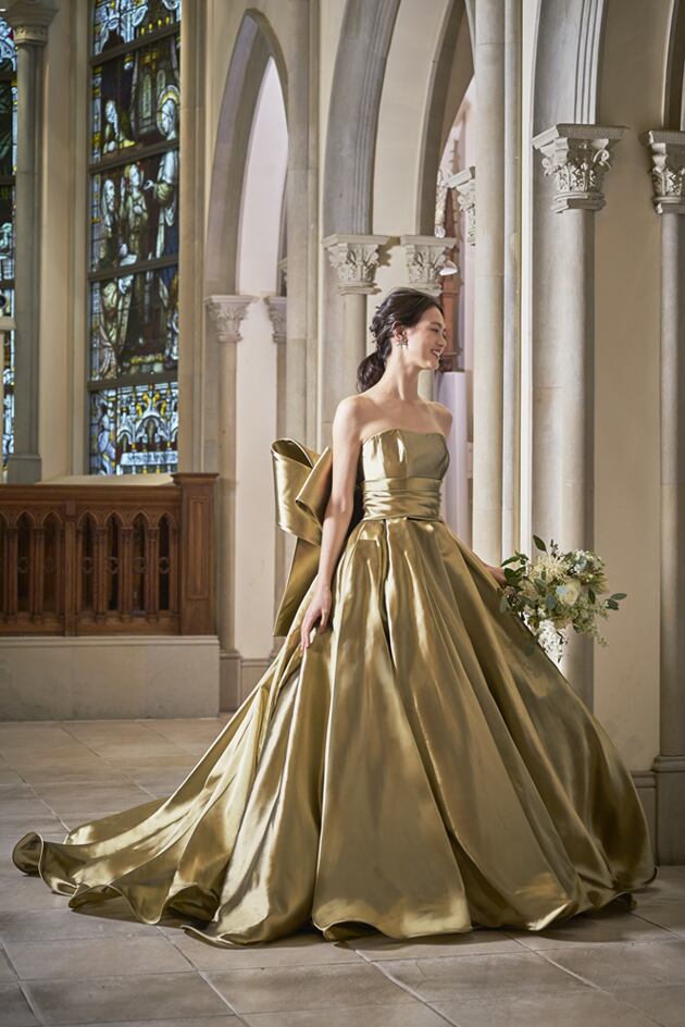 送料無料!カラードレス ベアトップ グリーン 背中見せ/バックレス 光沢感 ビスチェドレス バックリボン かわいい 高級サテン トレーン ハイネック オーダードレス ハンドメイド エレガント ウエディングドレス 優雅 花嫁 結婚式/前撮り/二次会 セレモニー イブニングドレス 合コン パーティードレス ミディアムドレス | David1021k Dress(ダヴィドレス)
