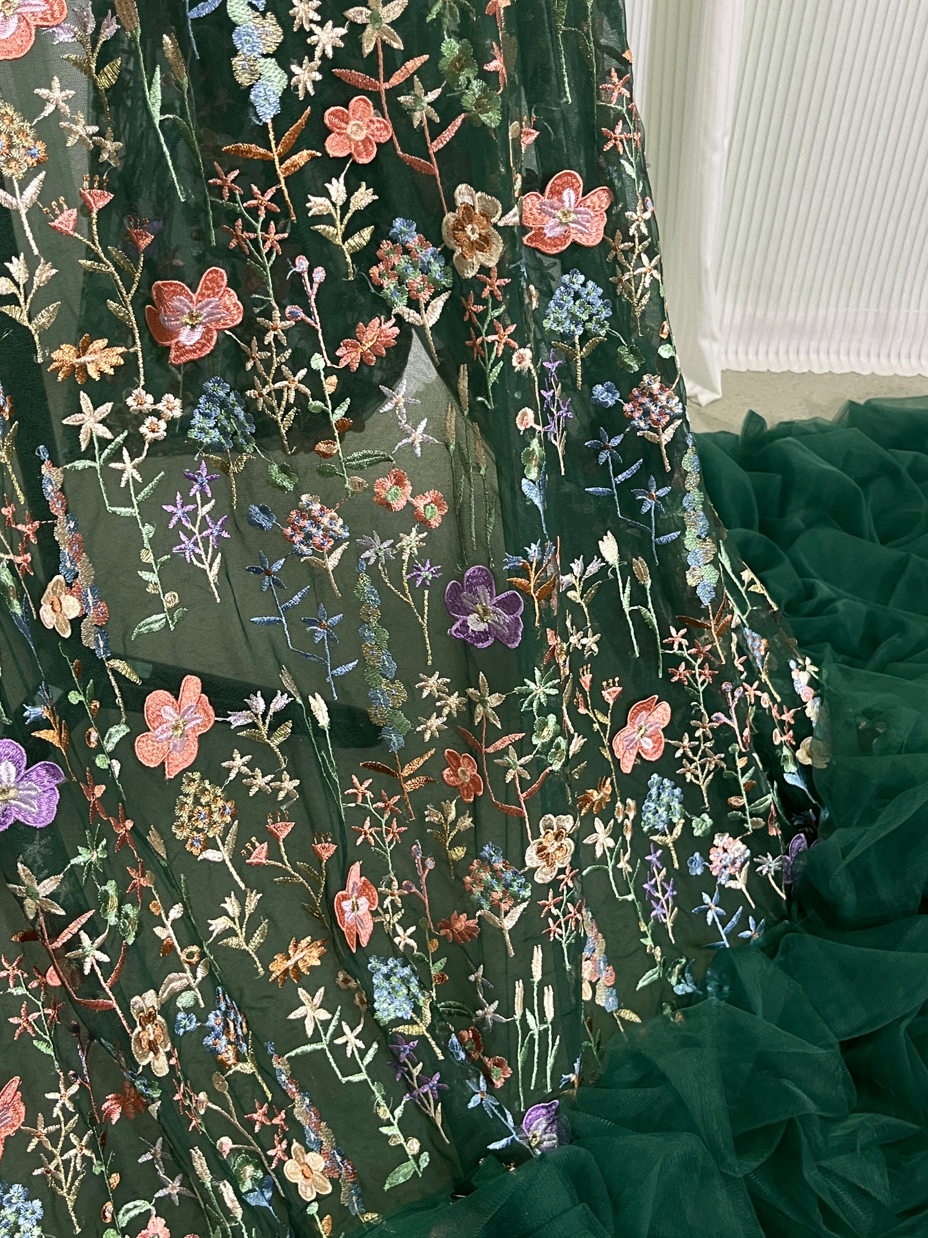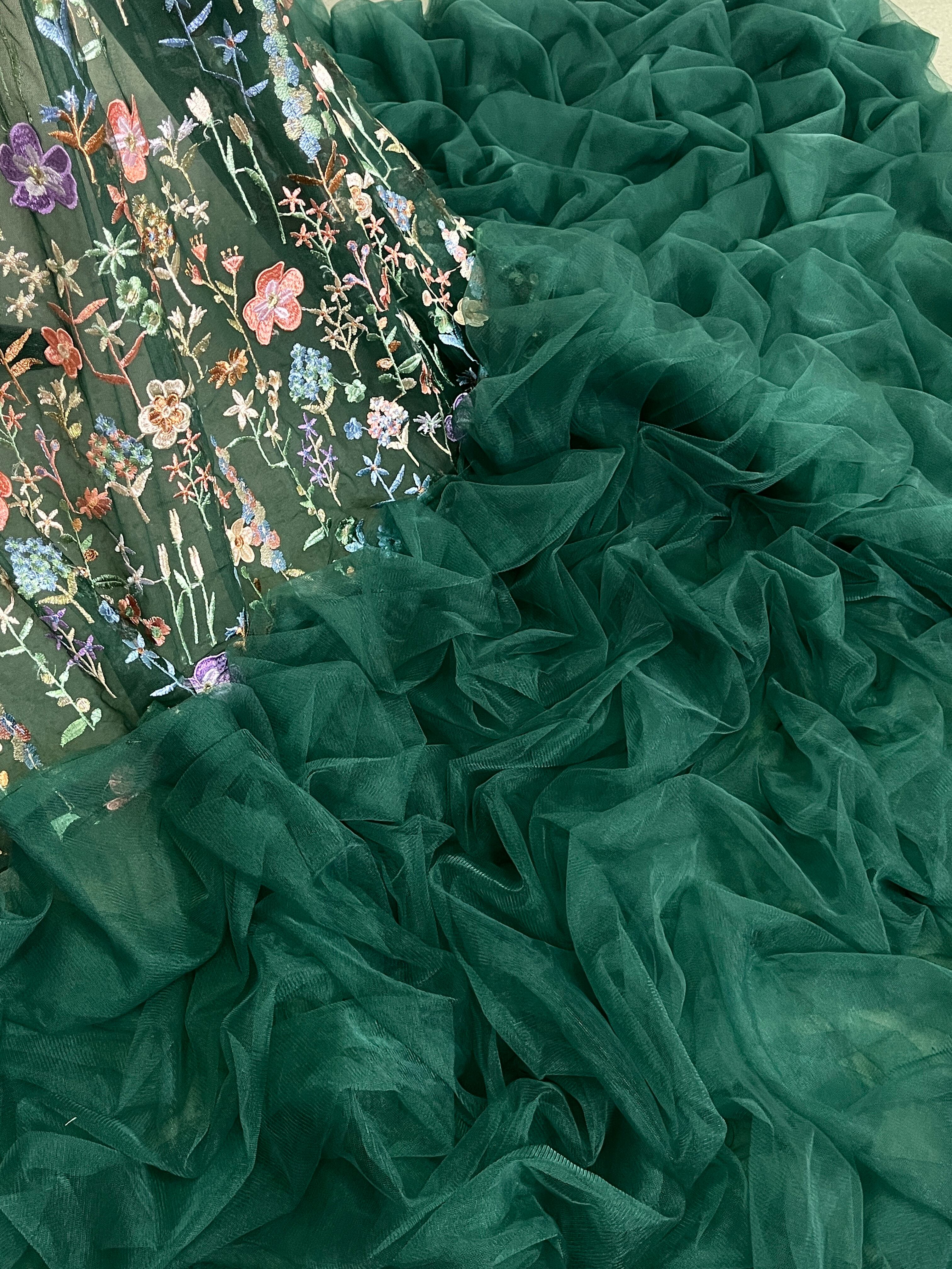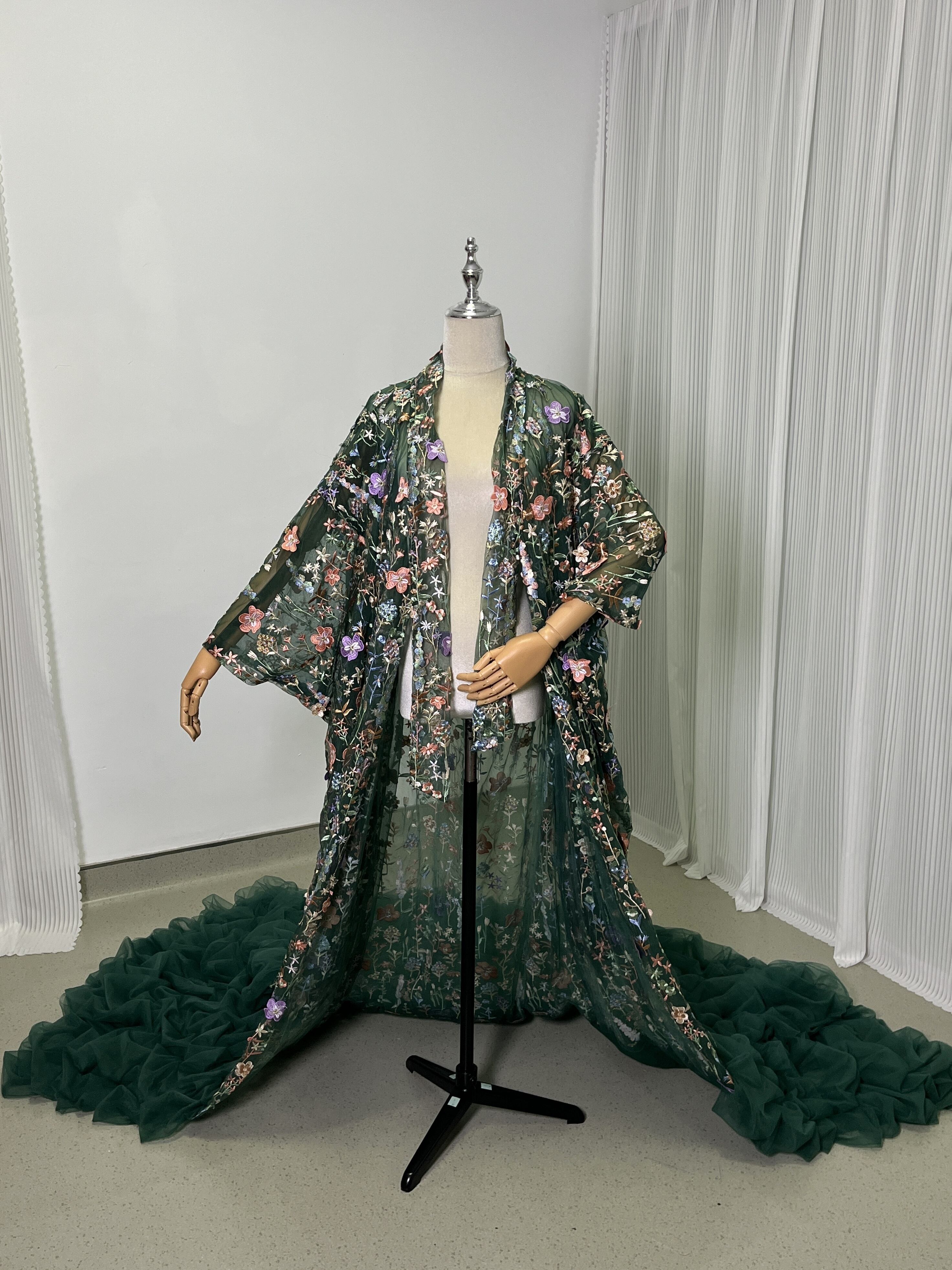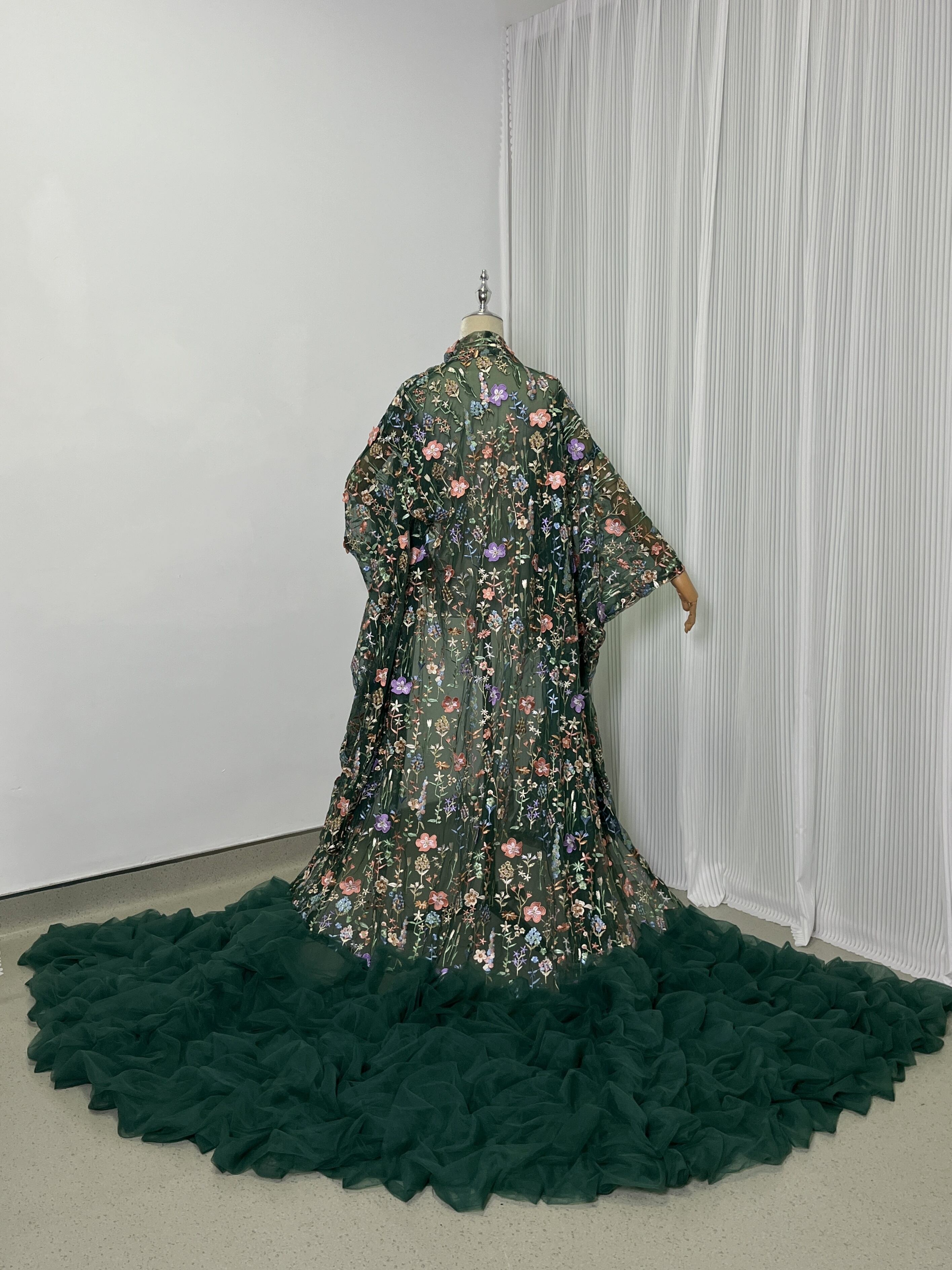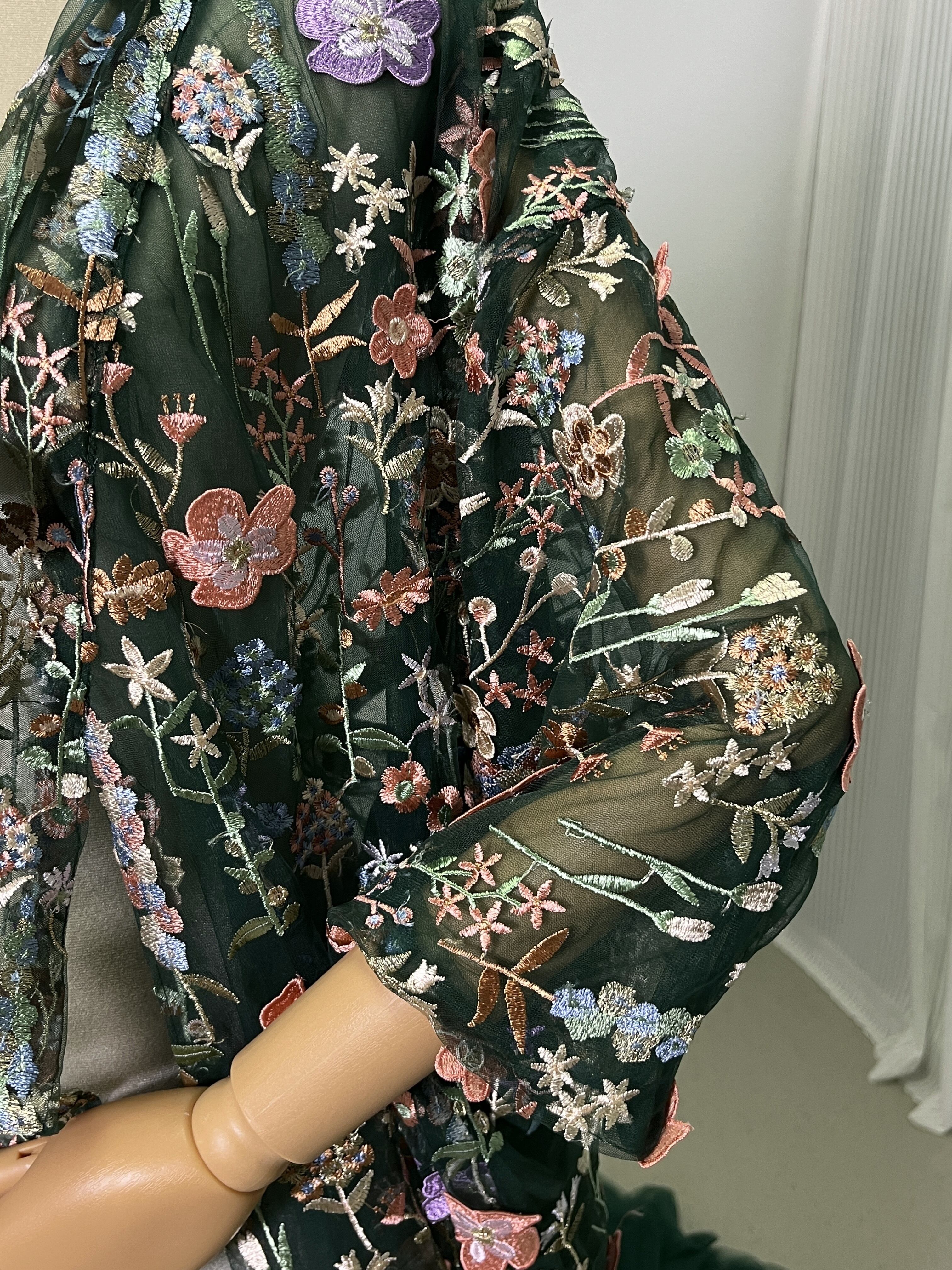 送料無料 !グリーン 上品! 豪華!/刺繍打掛 カラードレス 花モチーフ 華やかなトレーン 結婚式/披露宴